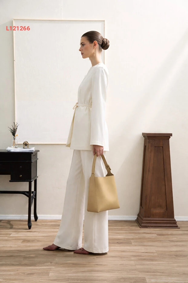 اكتشف أناقة الراحة مع طقم بنطلون مرشدي المميز! يتميز هذا الطقم بخصر منسدل ومزين بتفاصيل رائعة، مما يمنحك مظهرًا عصريًا وجذابًا. مع قماشه الناعم والمرن، يمكنك ارتداؤه طوال اليوم بثقة وراحة لا تضاهى!