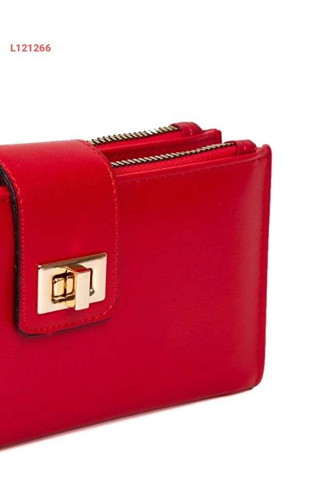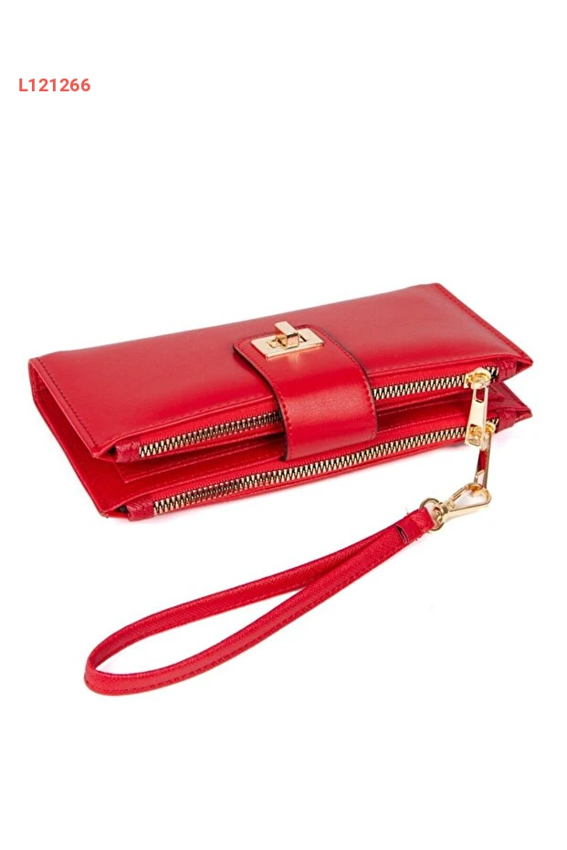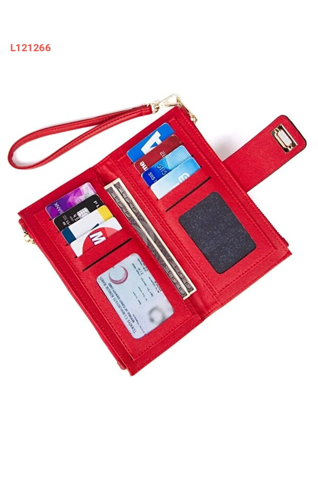 محفظة كارد بوك للمرأة باللون الأحمر مع حزام أكتاف وسحاب للتخزين الناعم