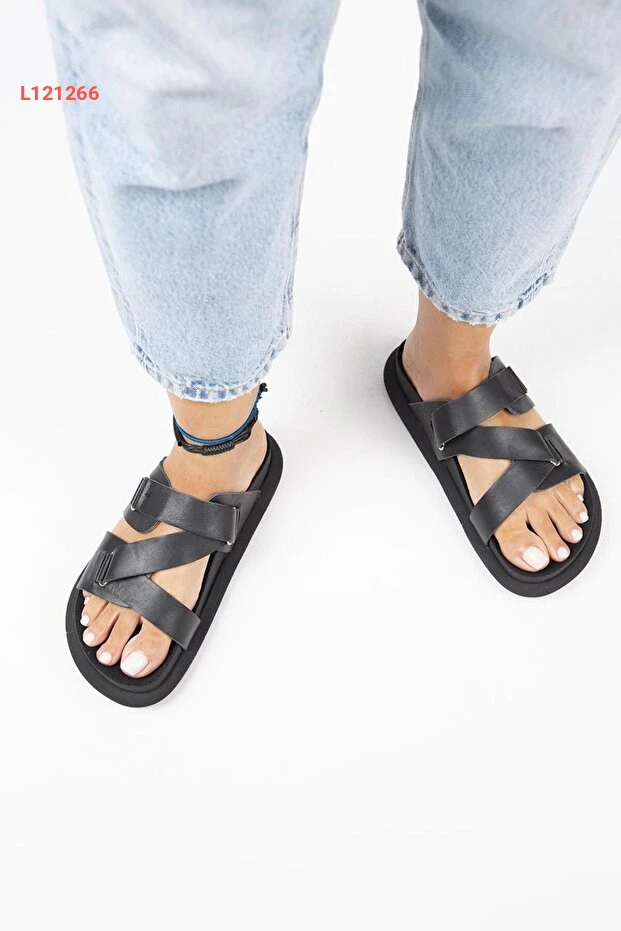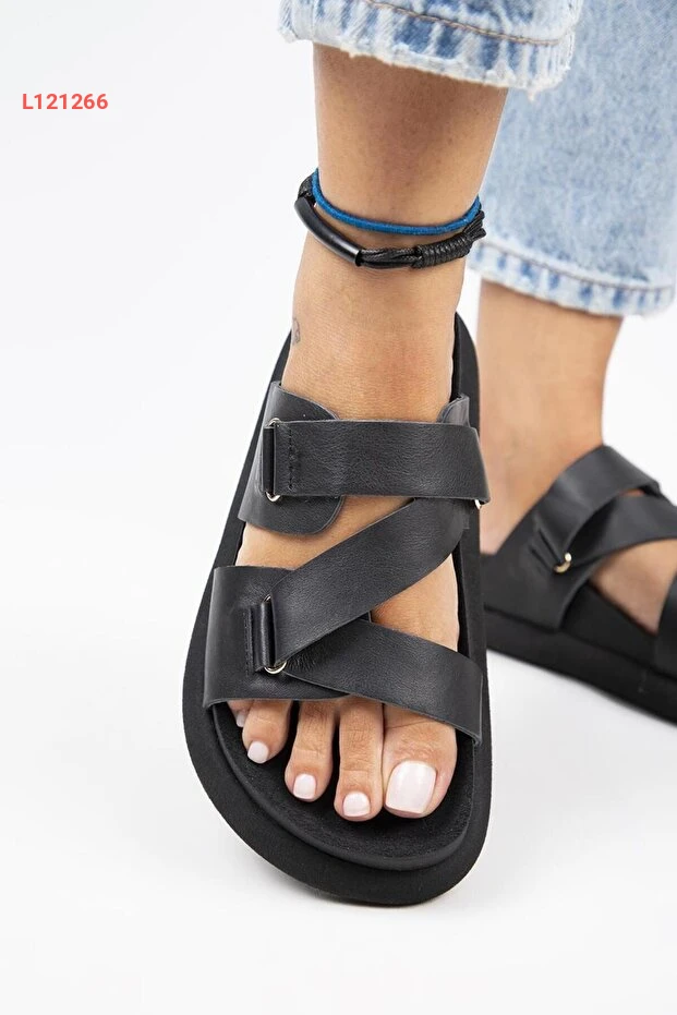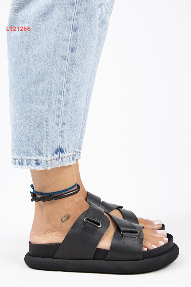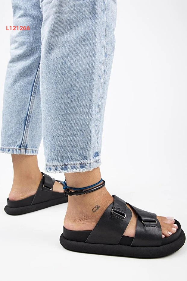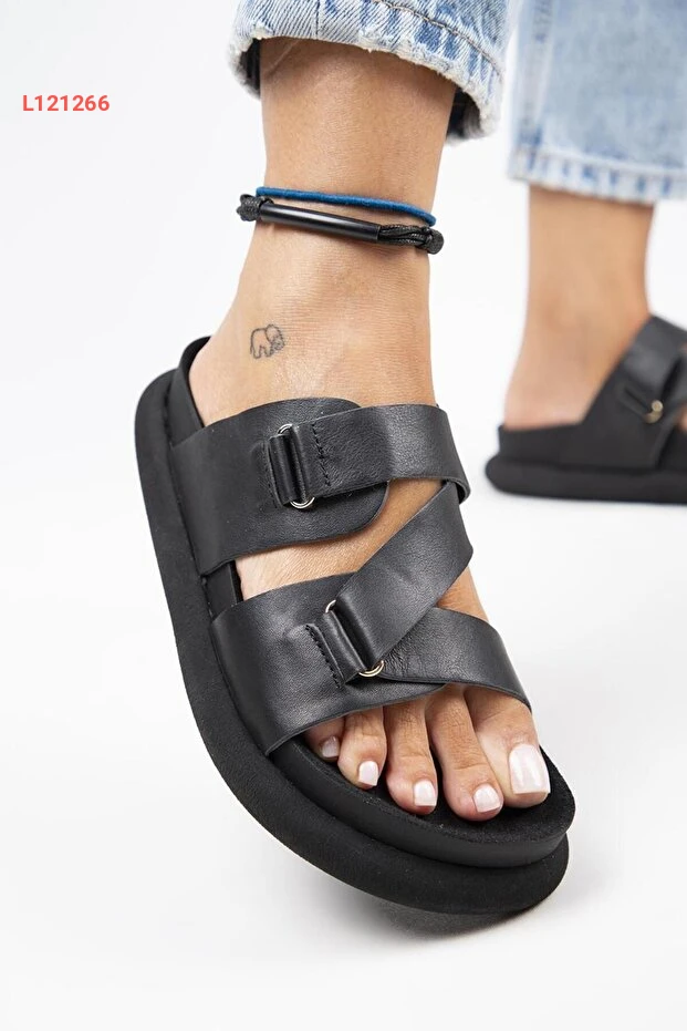 صندل نسائي جلد طبيعي أسود مزود بحبل من مانيجيرو توليبان