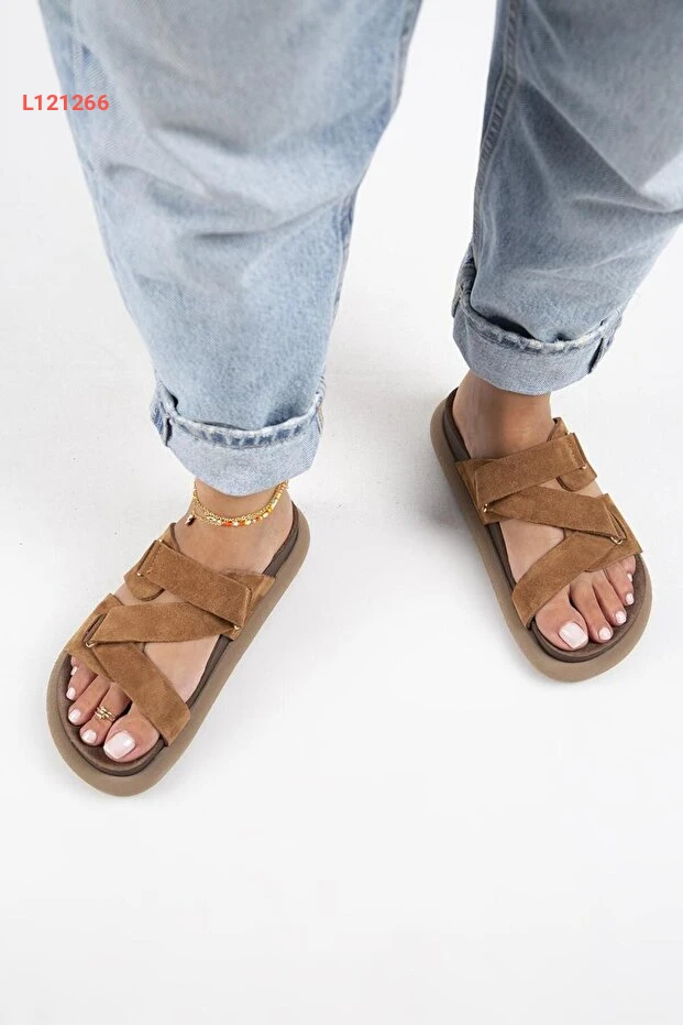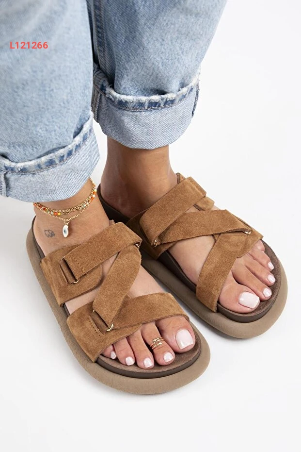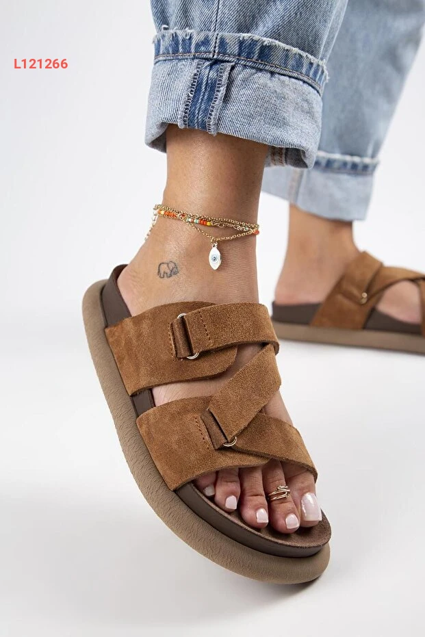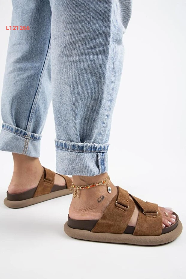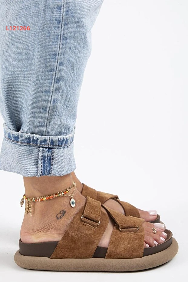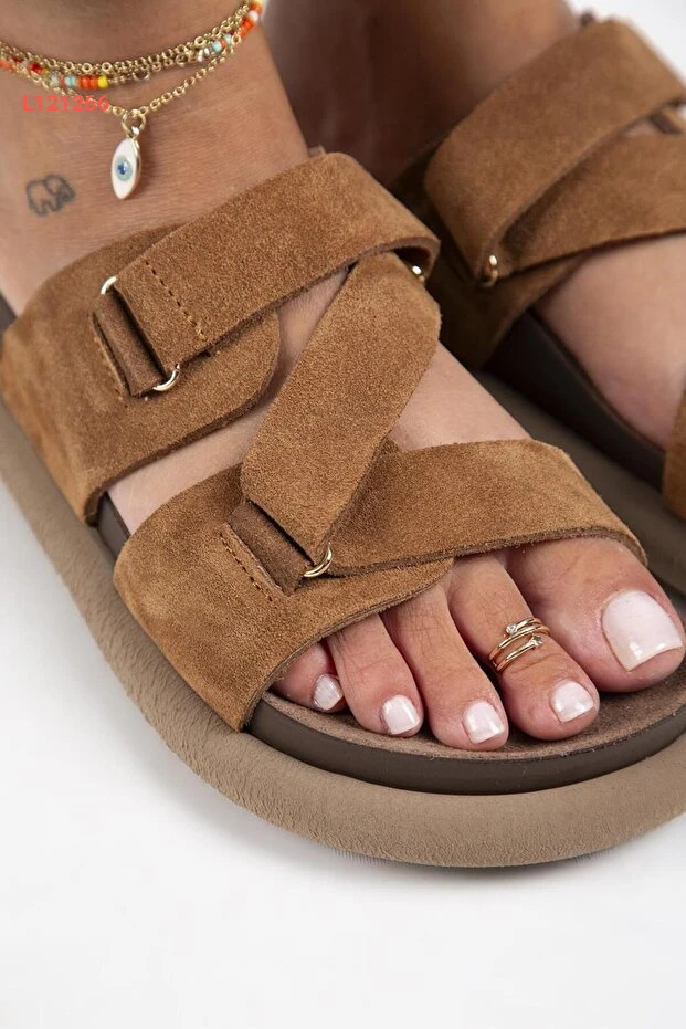 صندل توبليان النسائي من الجلد الطبيعي مع حزام بتصميم عصري باللون البني
