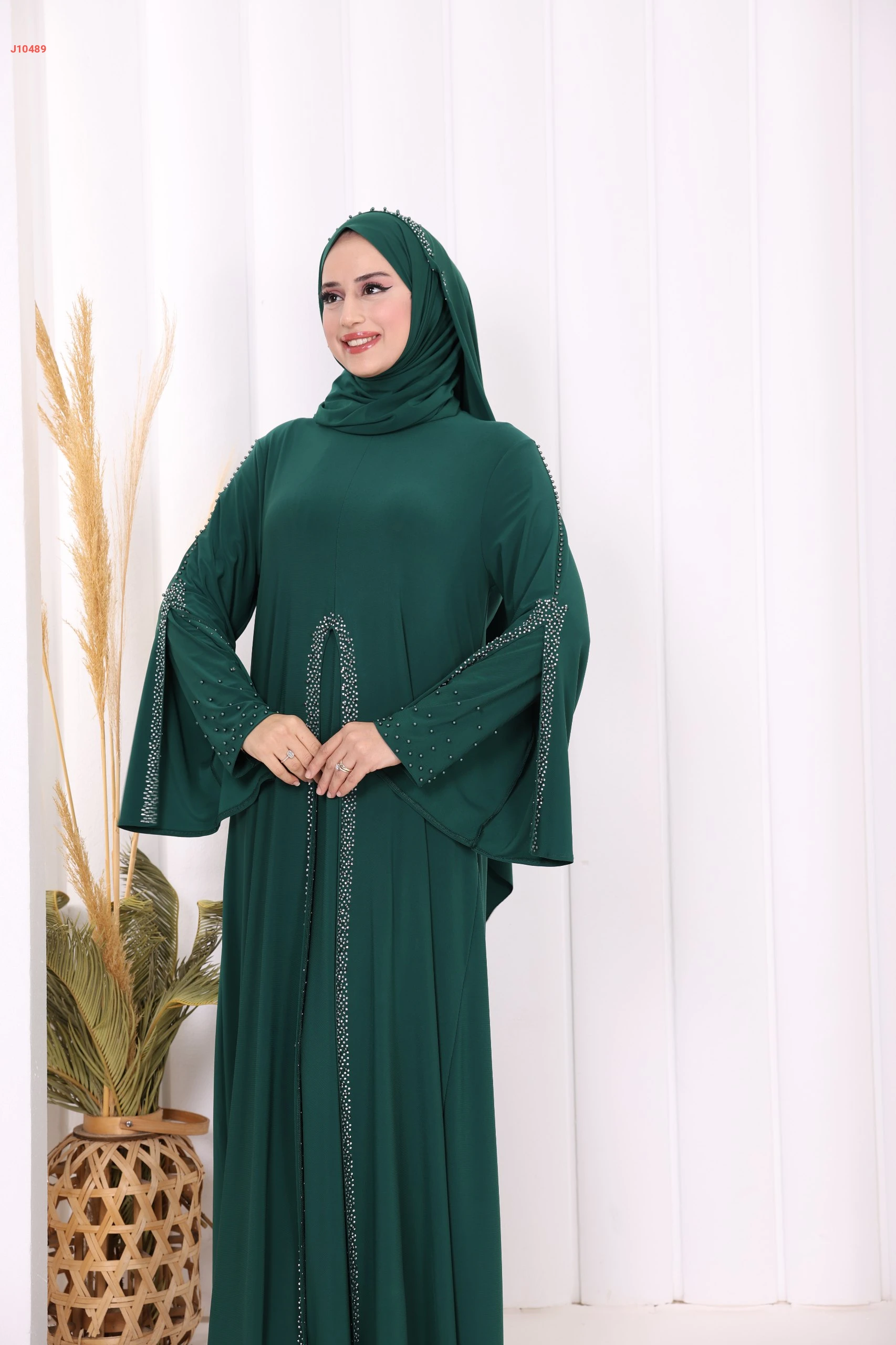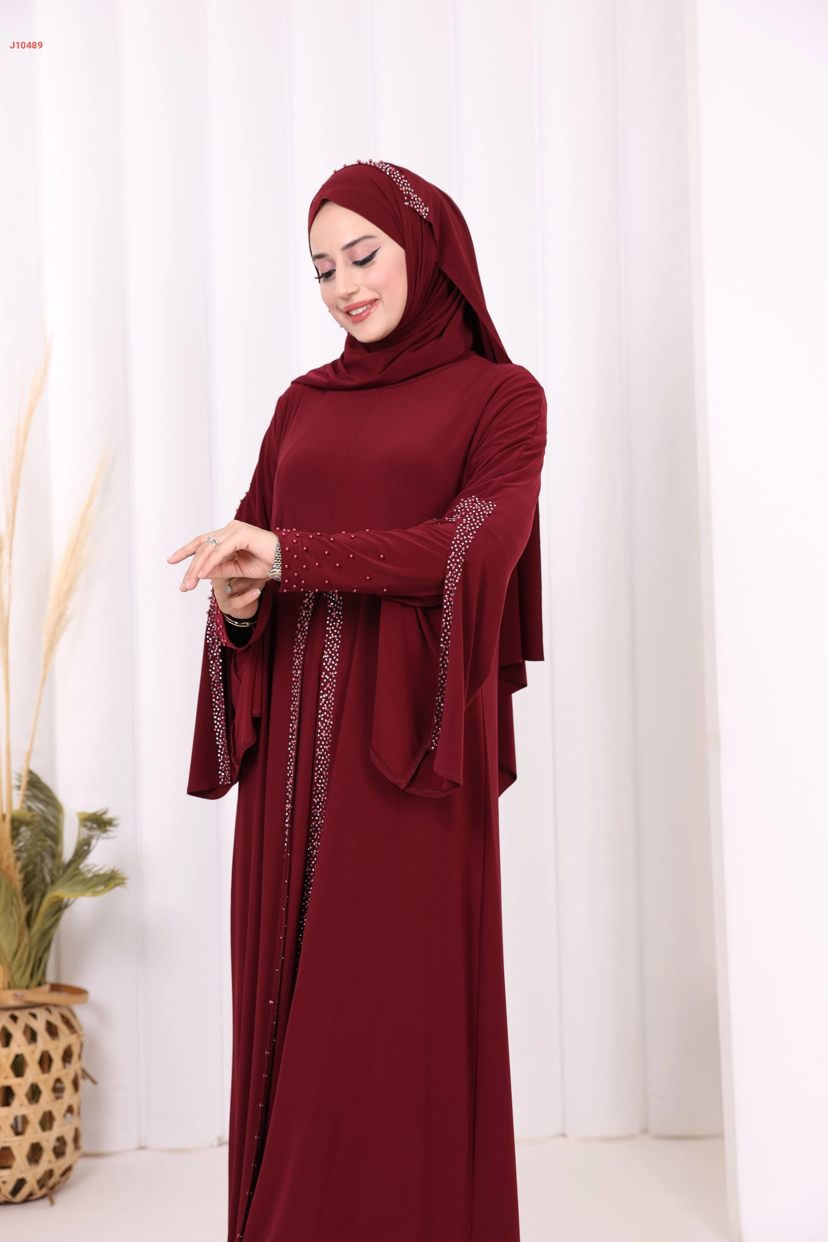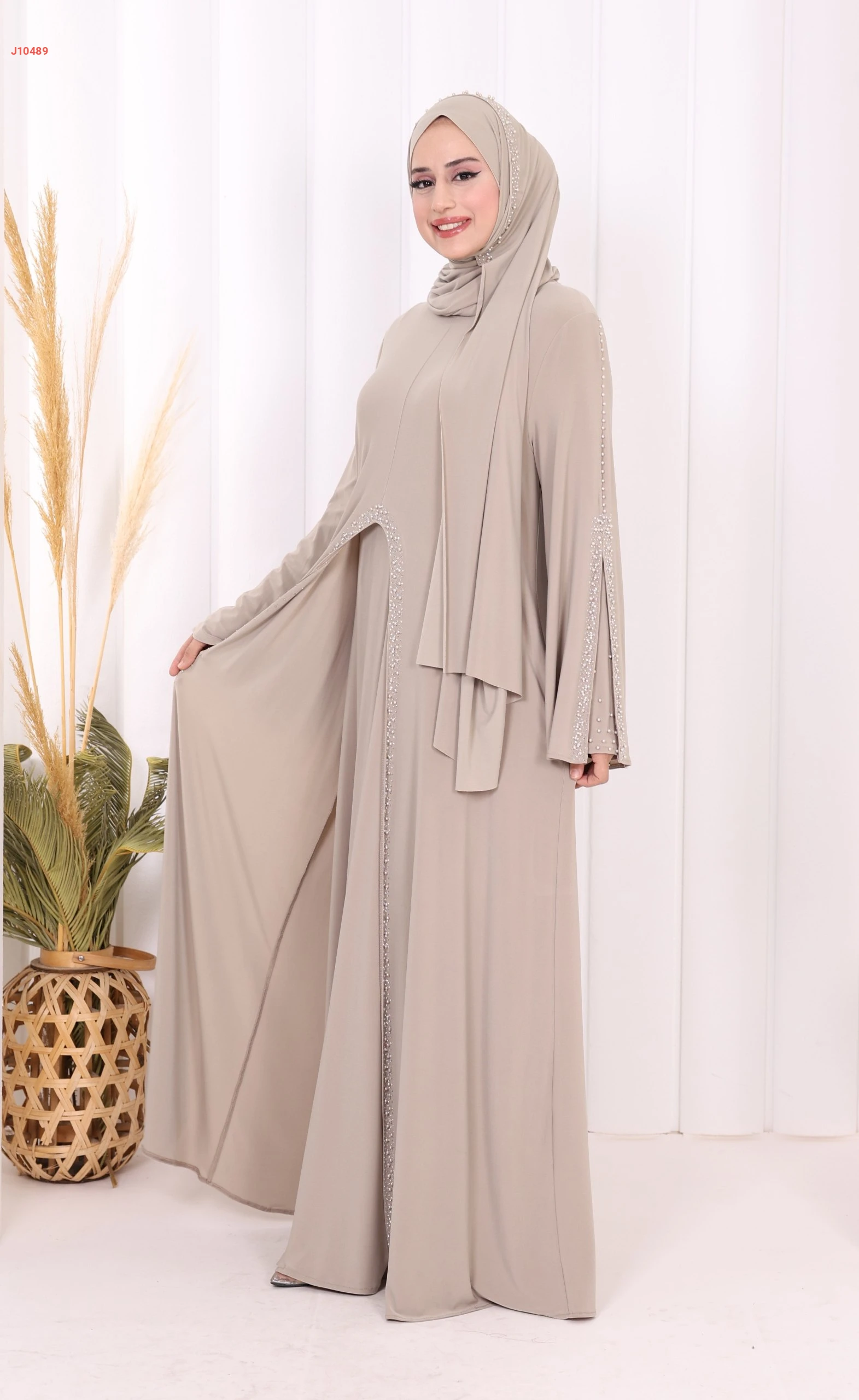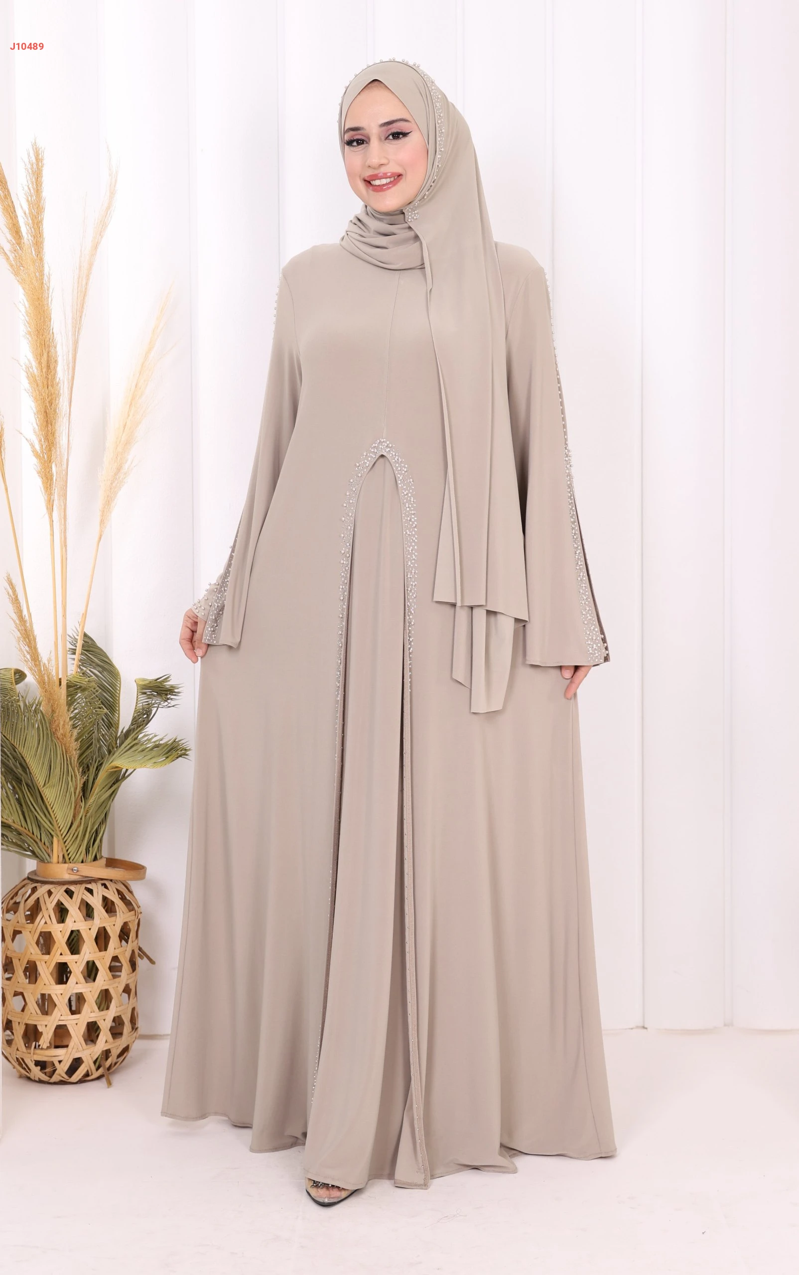عباية طبقتين مزينة بالستراس مع شال مزين بالستراس