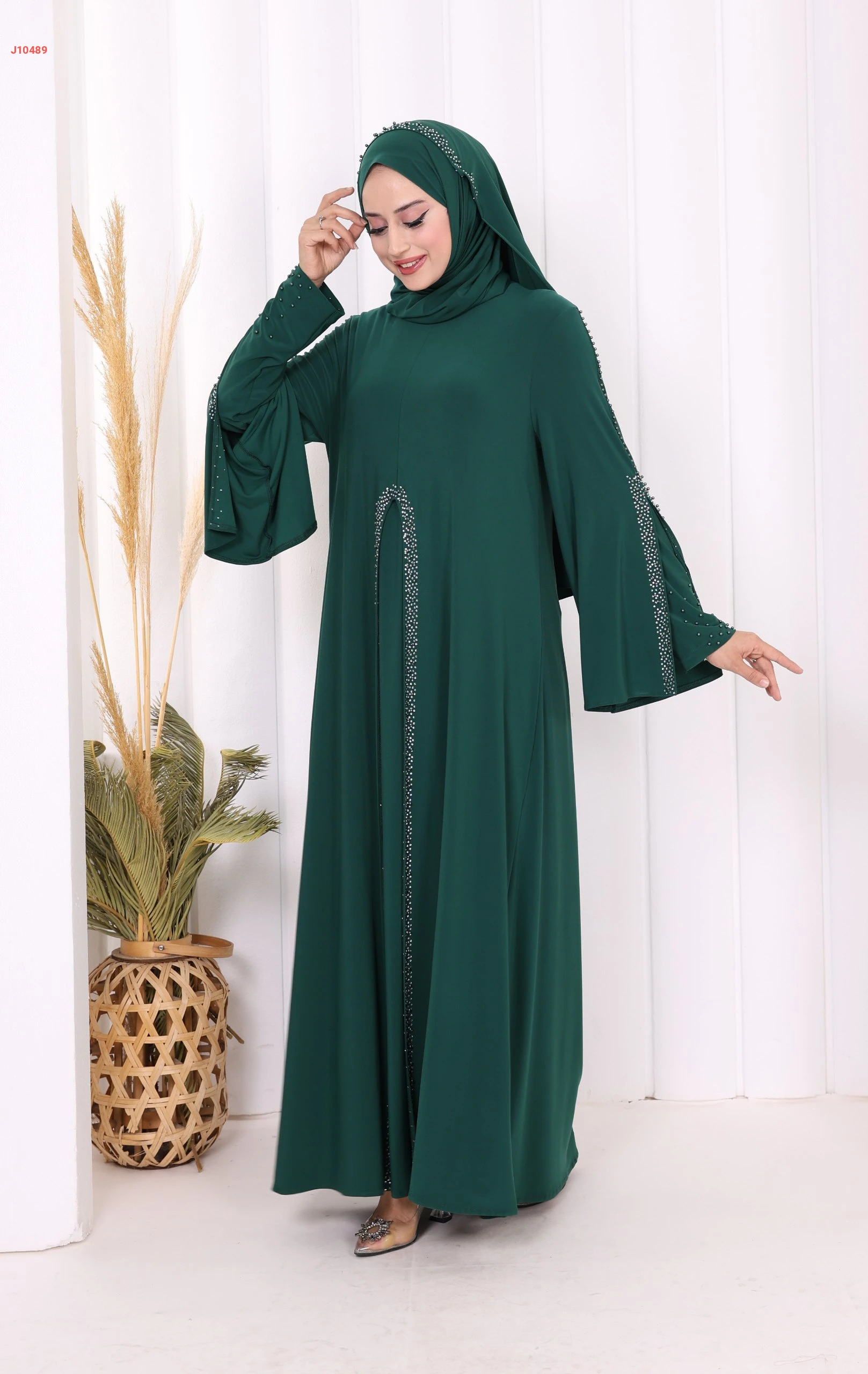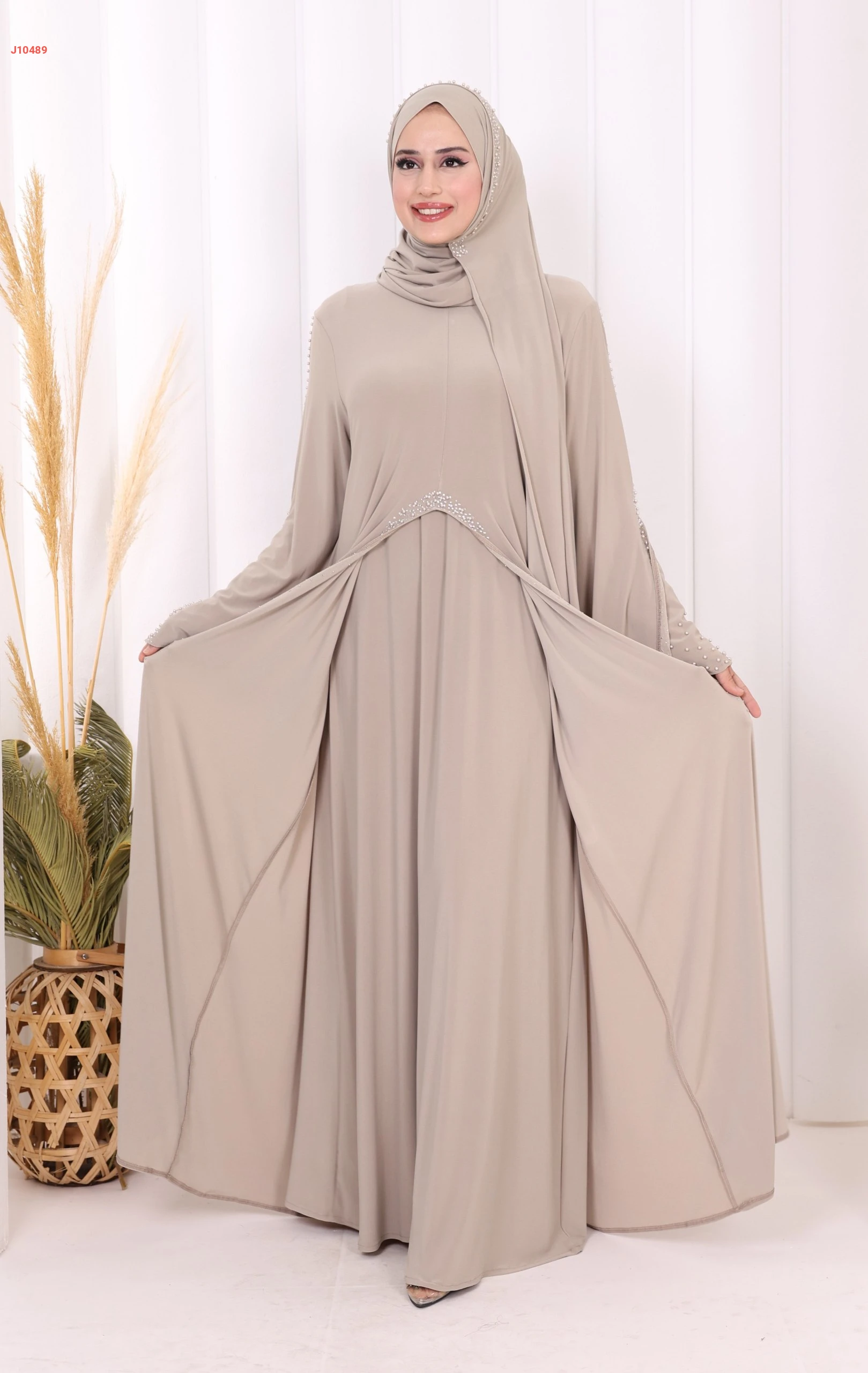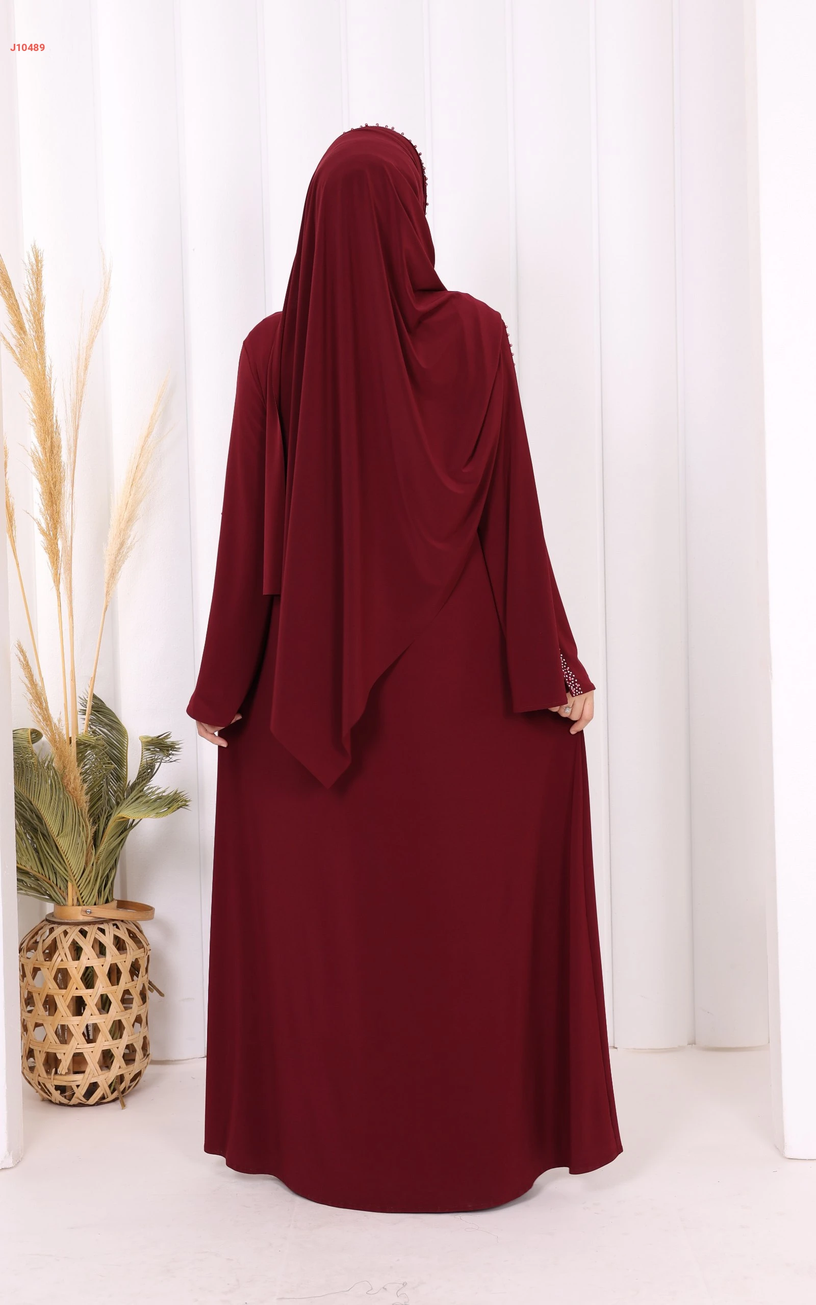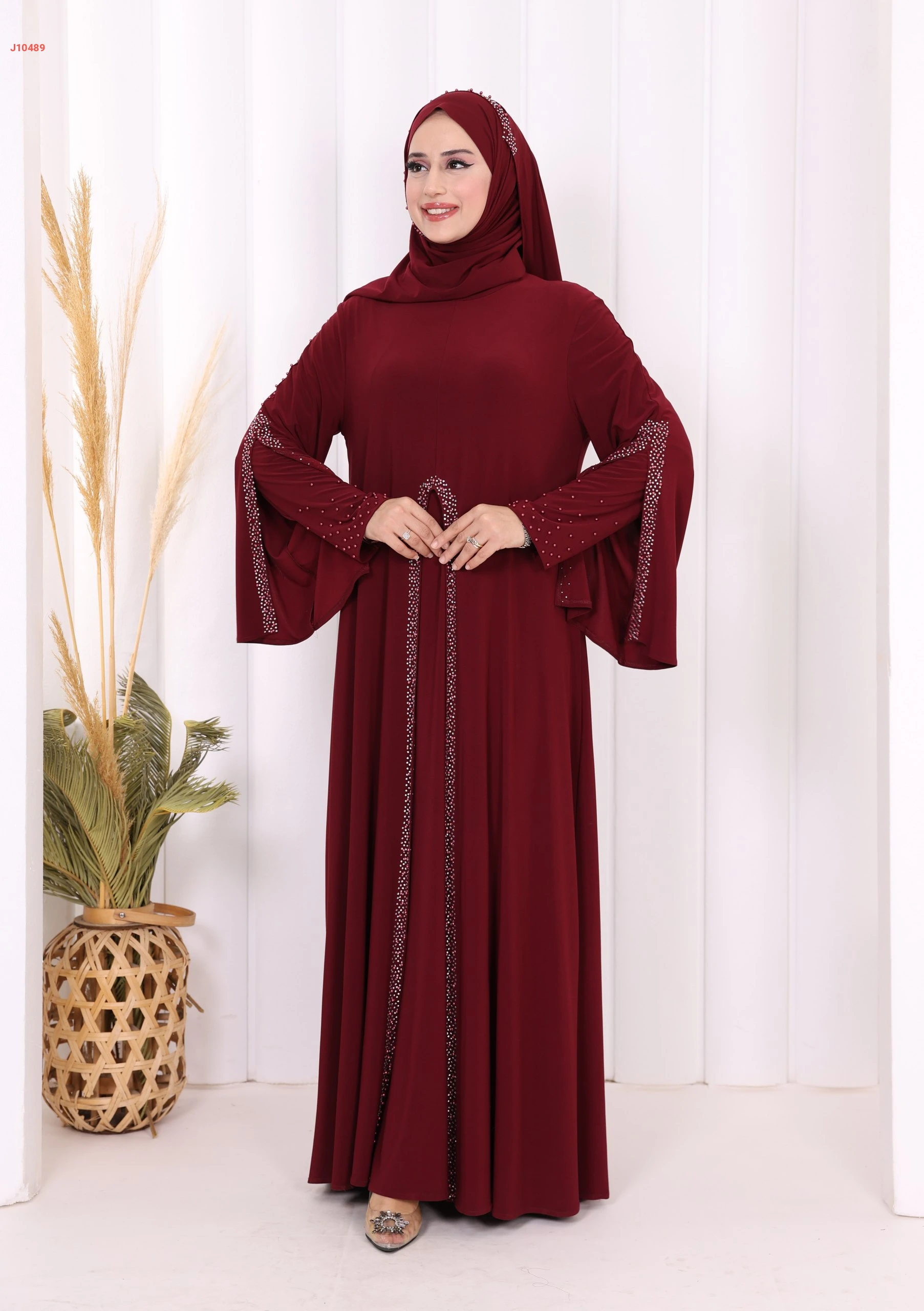 عباية طبقتين مزينة بالستراس مع شال مزين بالستراس