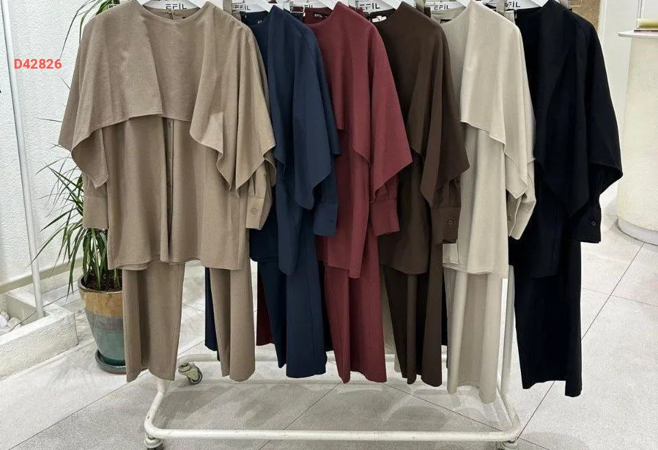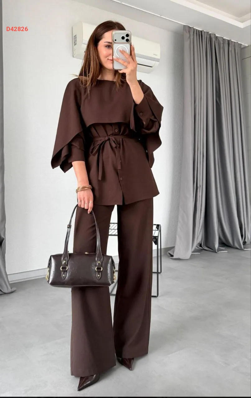 طقم قطعتين كاب ، قميص بأزرار وربطة خصر