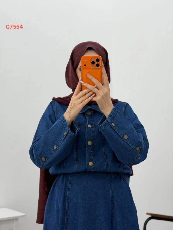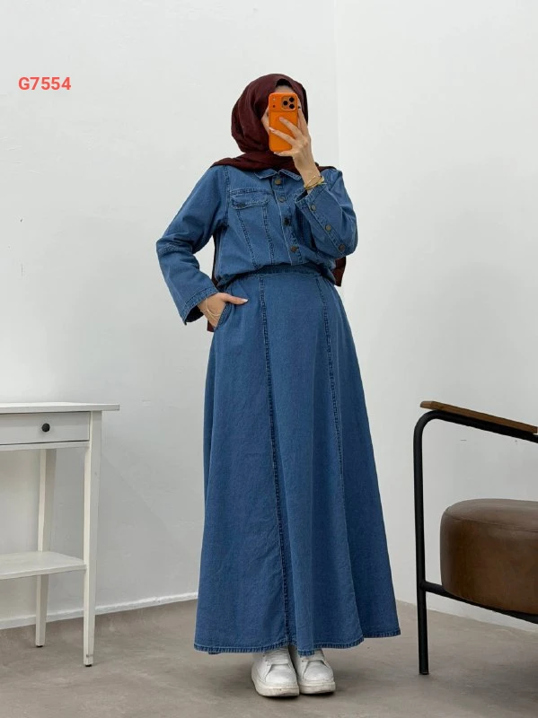 طقم تنورة جينز قطعتين بأزرار وجيب