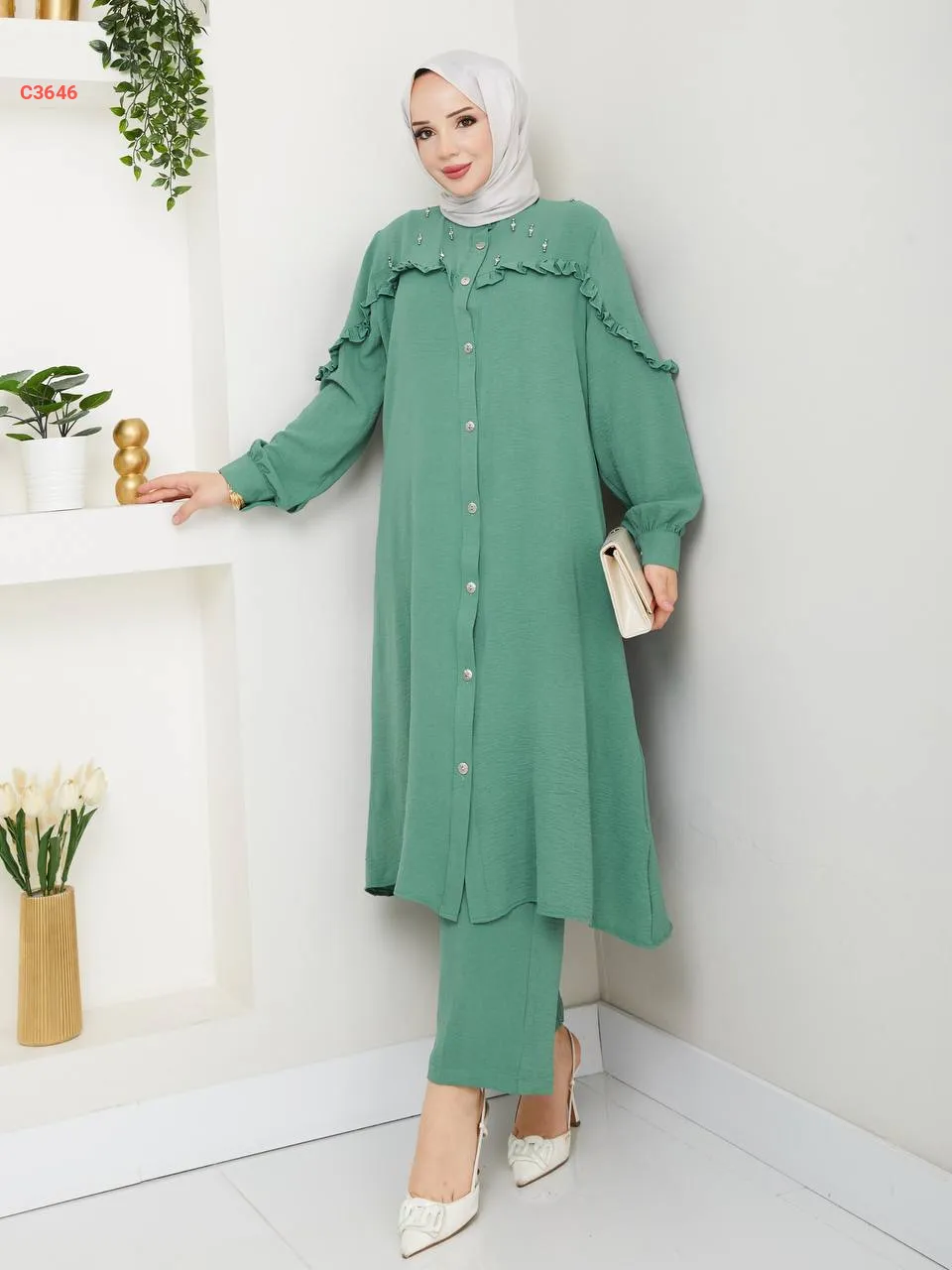 Bu ürün, konfor, dayanıklılık ve modern bir görünüm sağlamak için yüksek kaliteli malzemelerden özenle üretilmiştir. Güncel moda trendlerine uygun, kullanışlı ve şık bir tasarıma sahip olup, günlük kullanım ve özel günler için ideal, özenle yapılmış bir dikiş kalitesi sunar.
