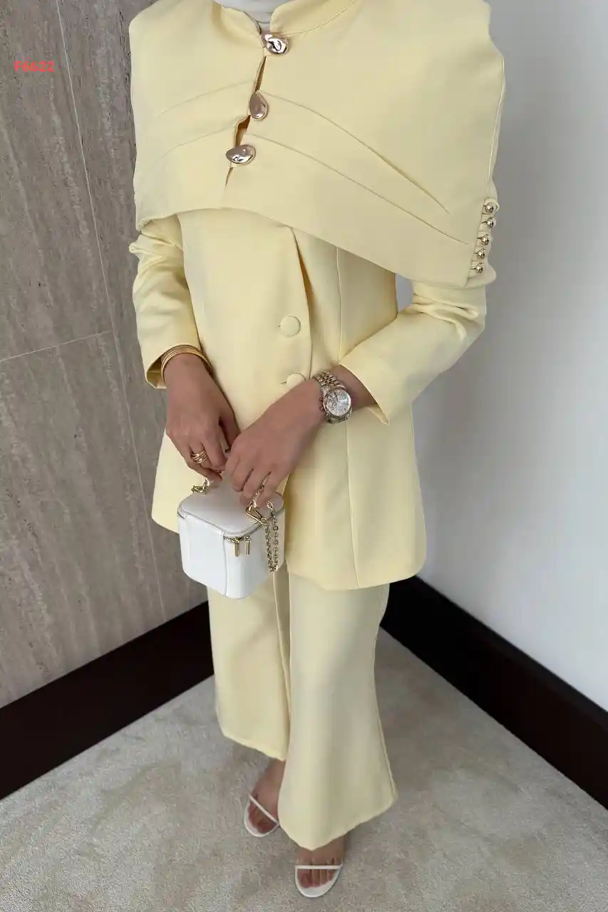 طقم بنطال قطعتين بأزرار بأكم...