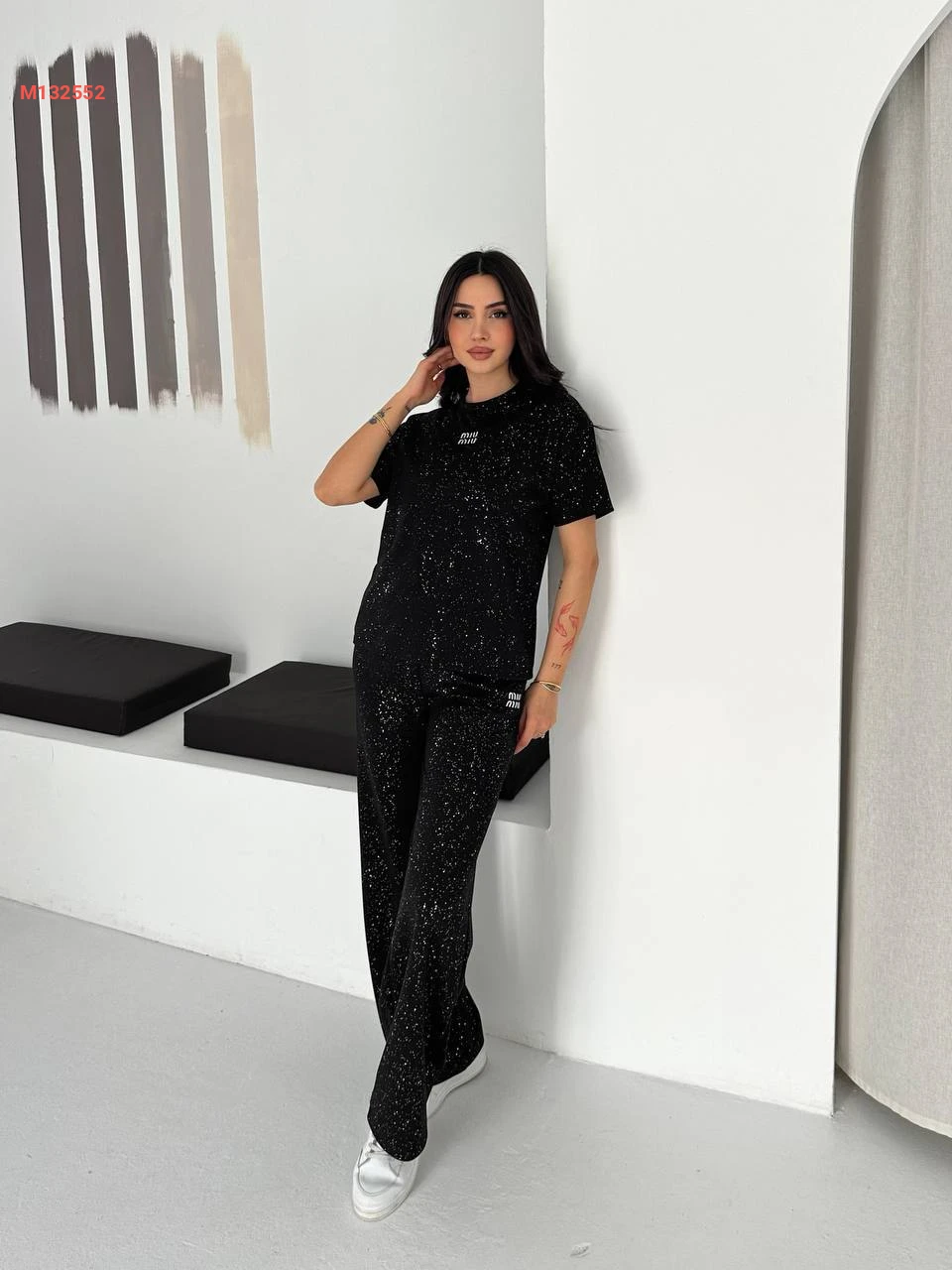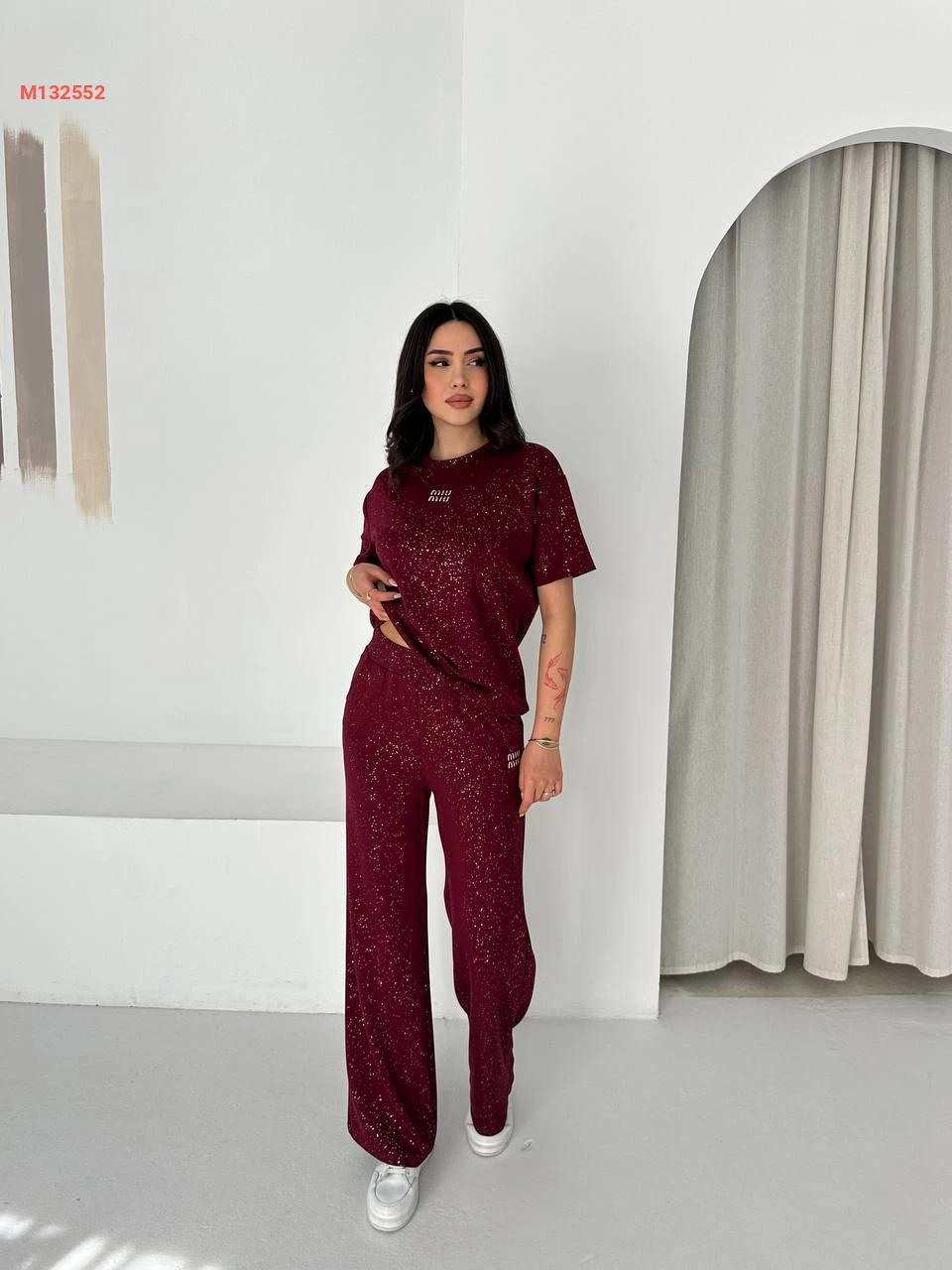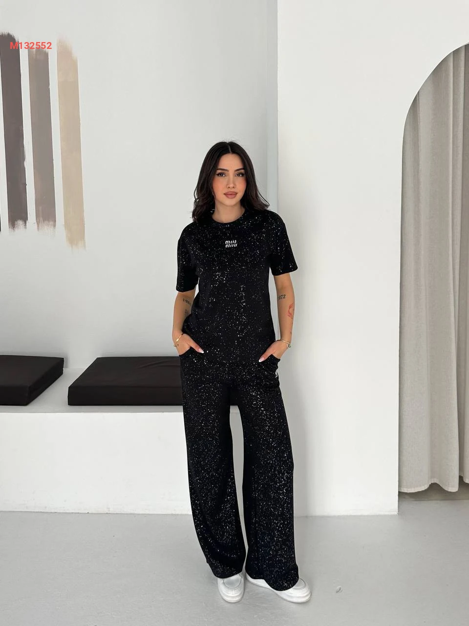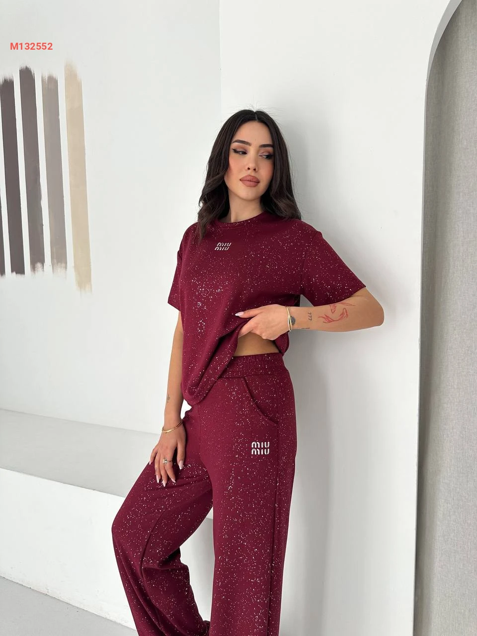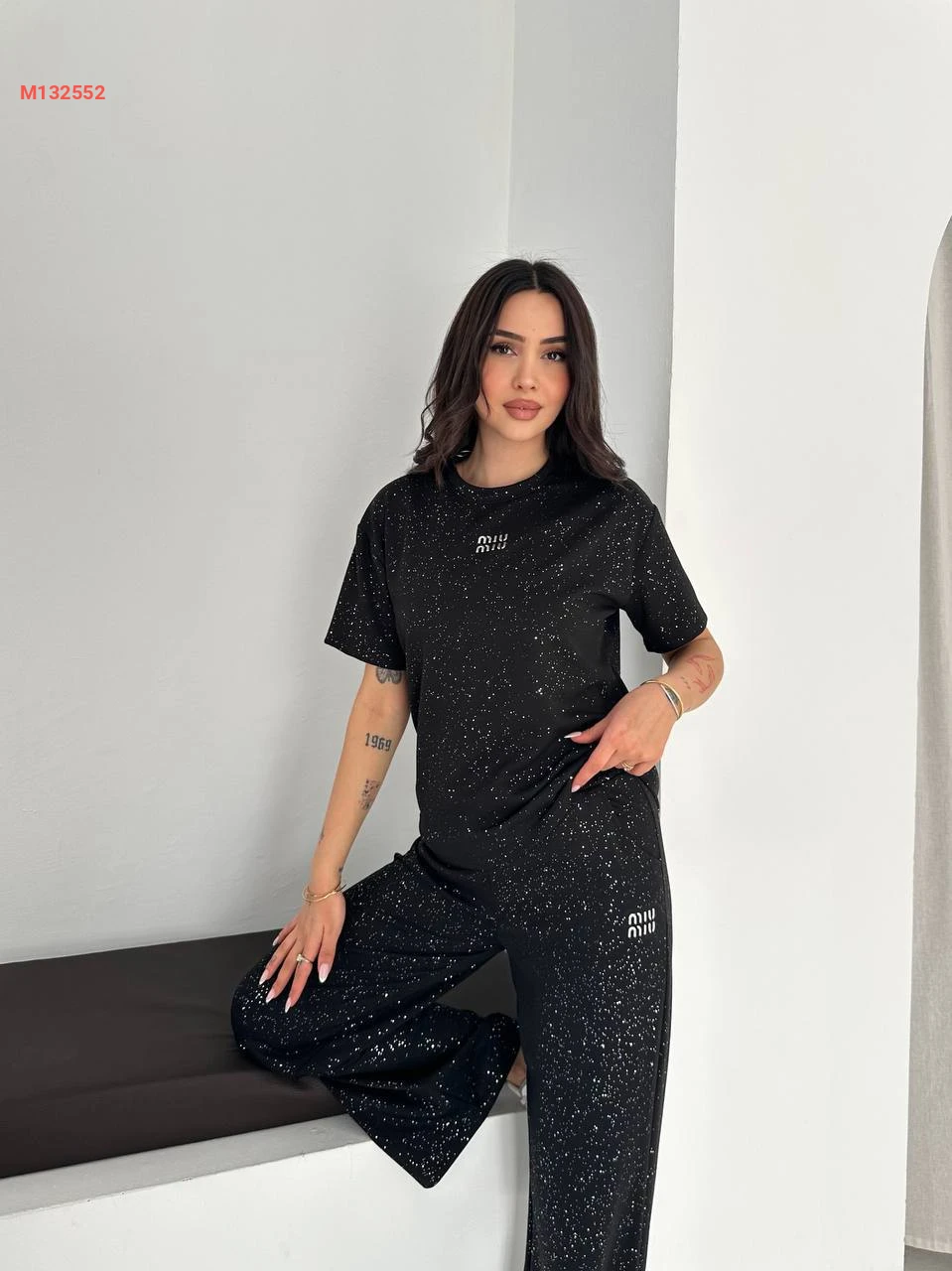 طقم بيجامة قطعتين مزينة بالستراس