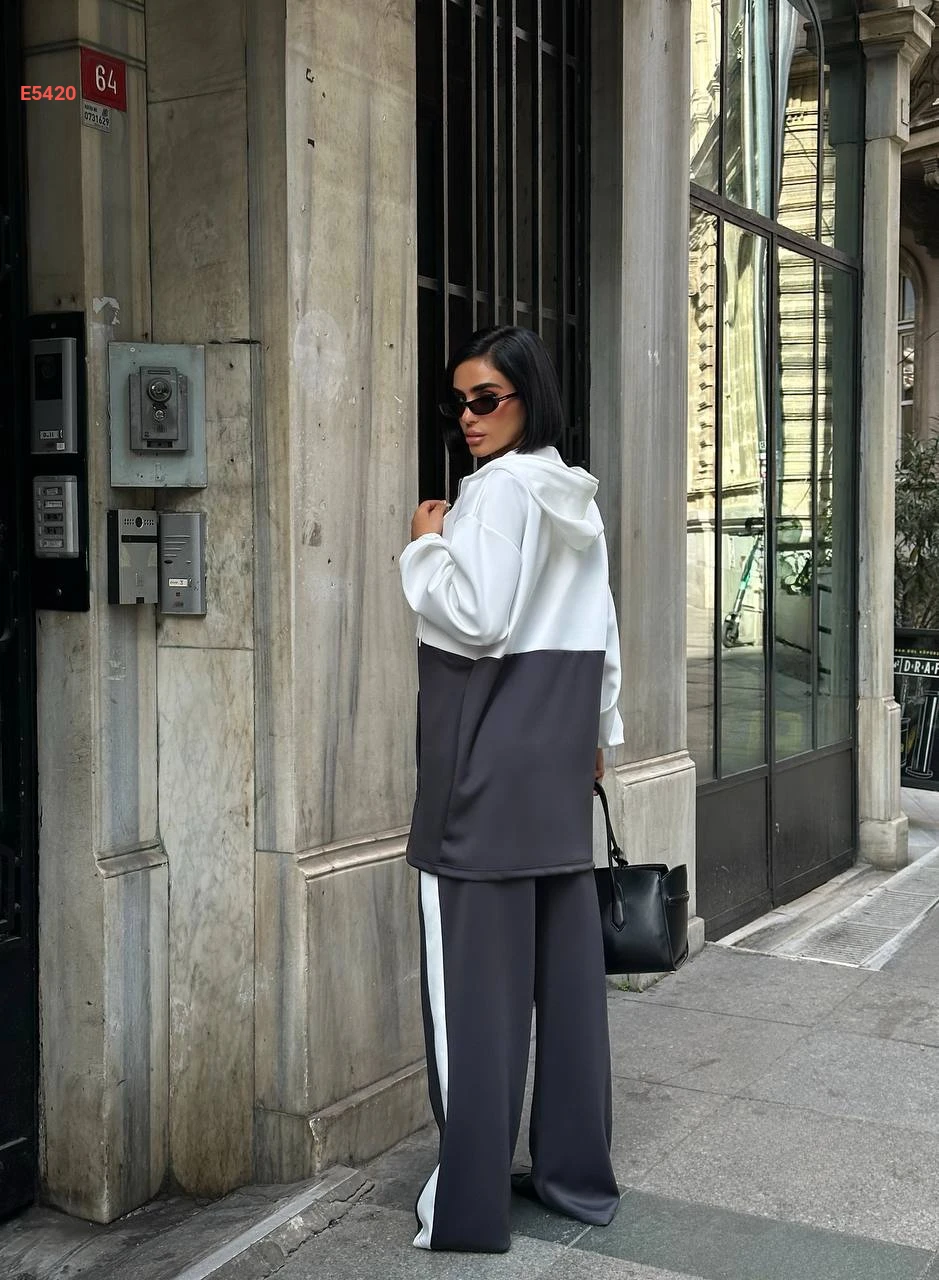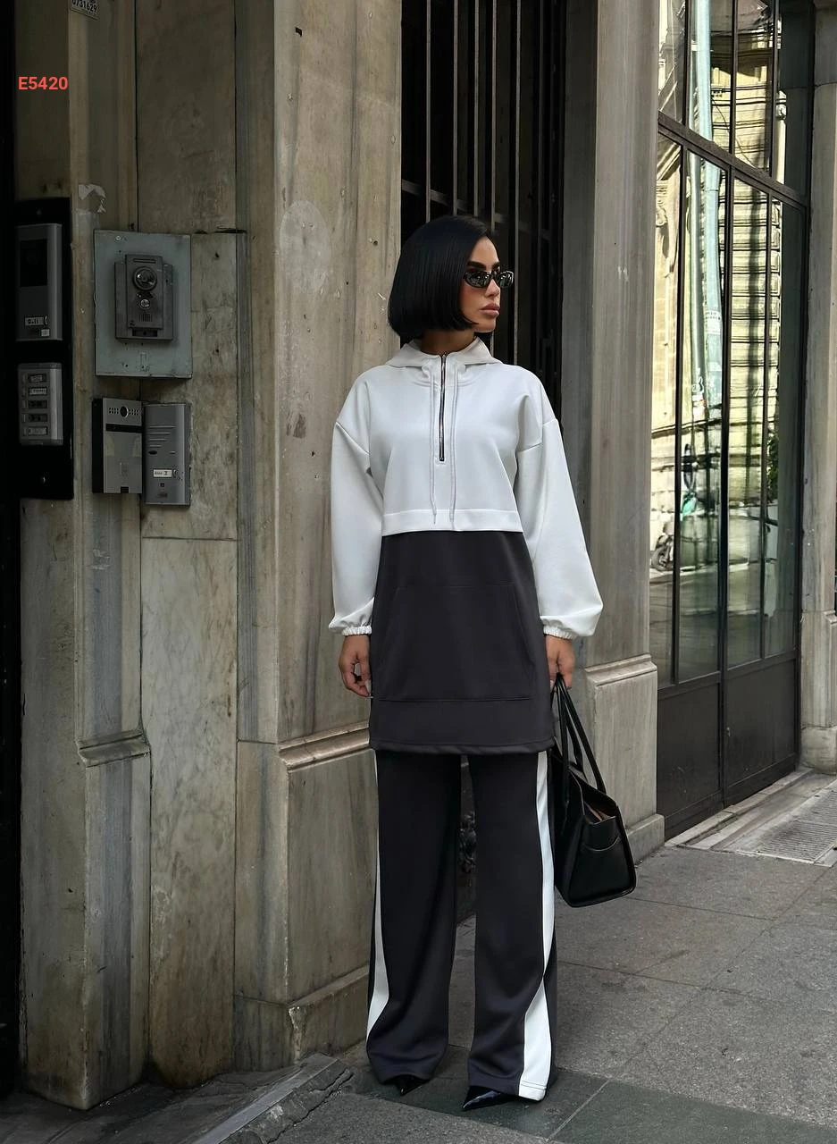 بيجامة قطعتين بياقة مرتفعة بسحاب مع غطاء رأس وجيب