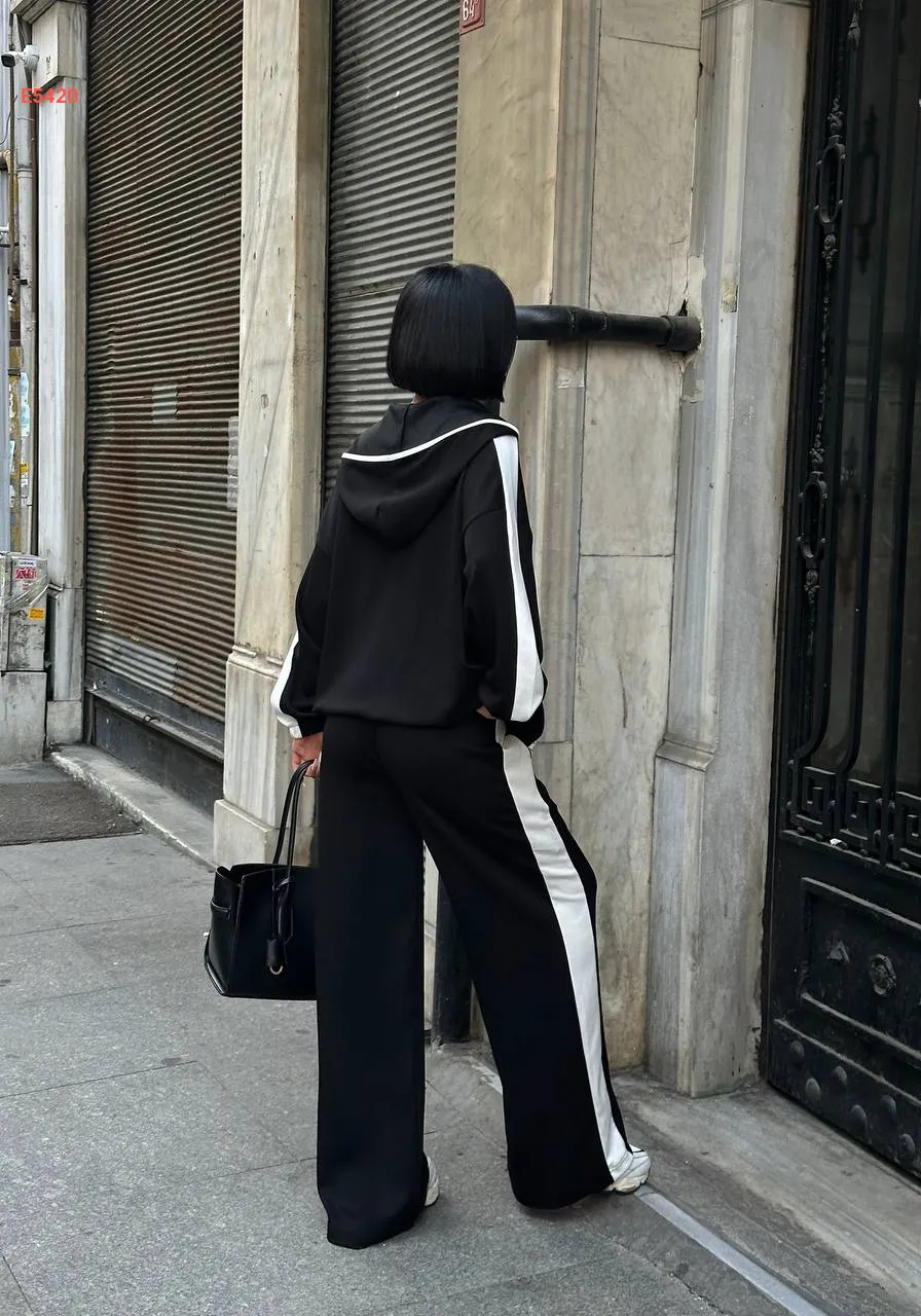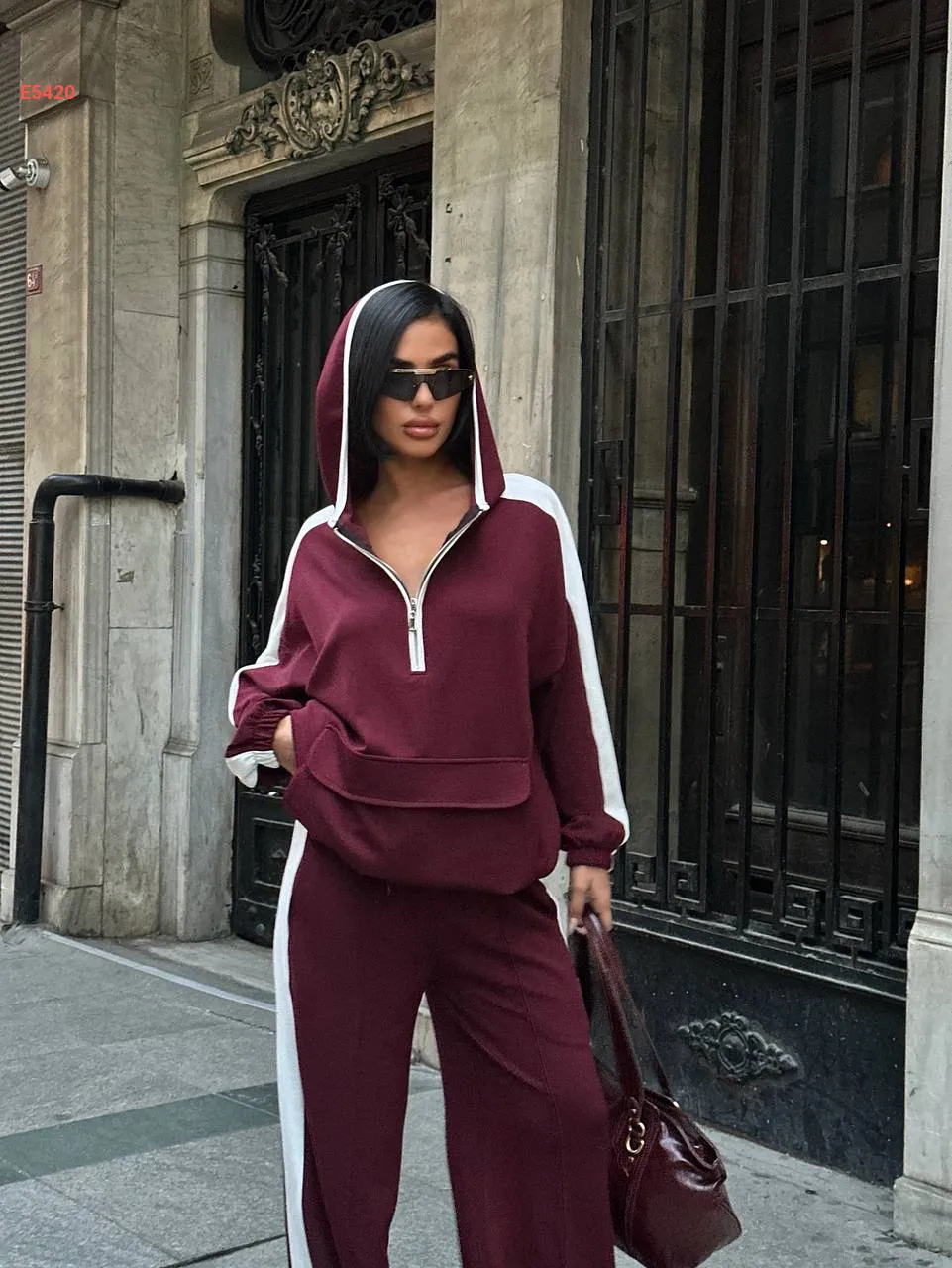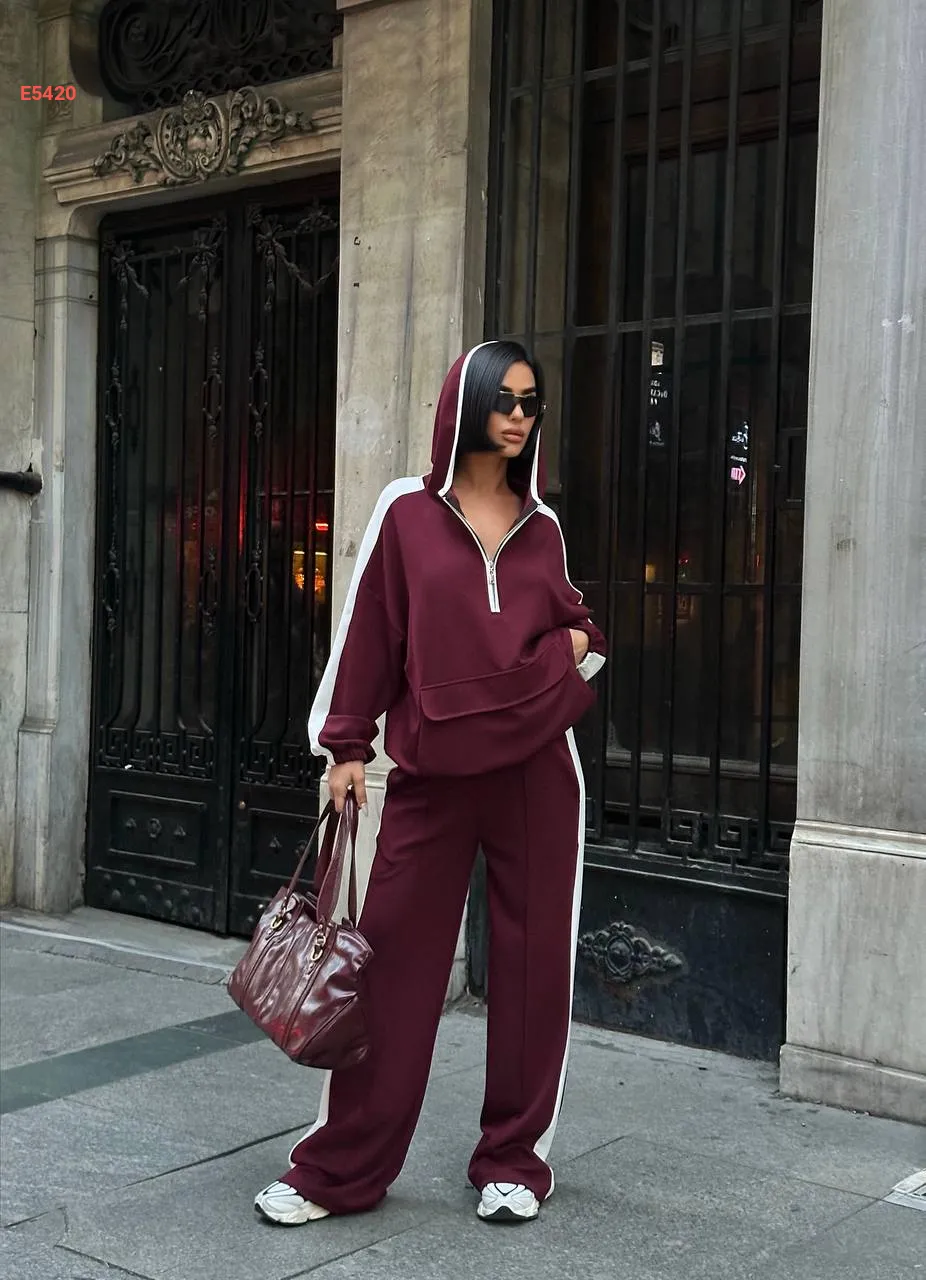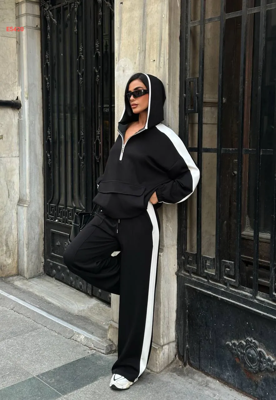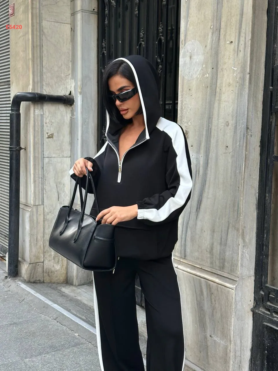 بيجامة قطعتين بغطاء رأس مع ياقة مرتفعة بسحاب