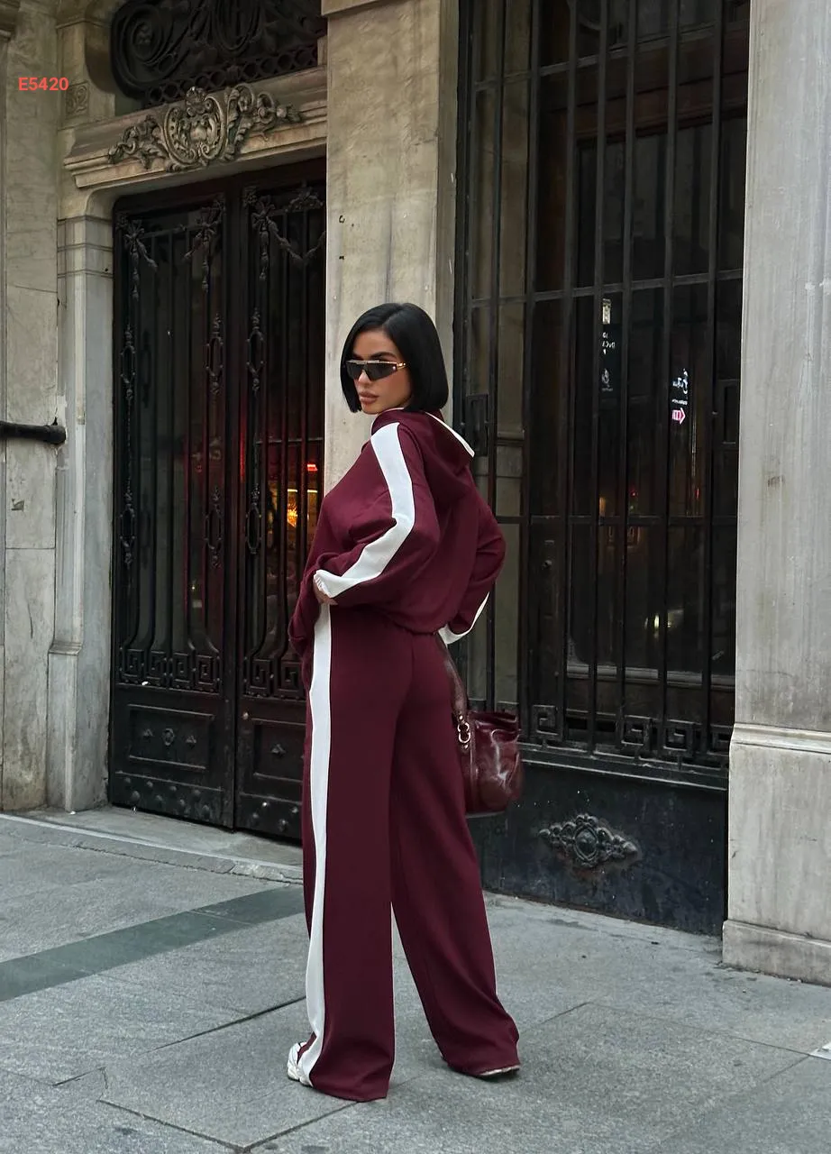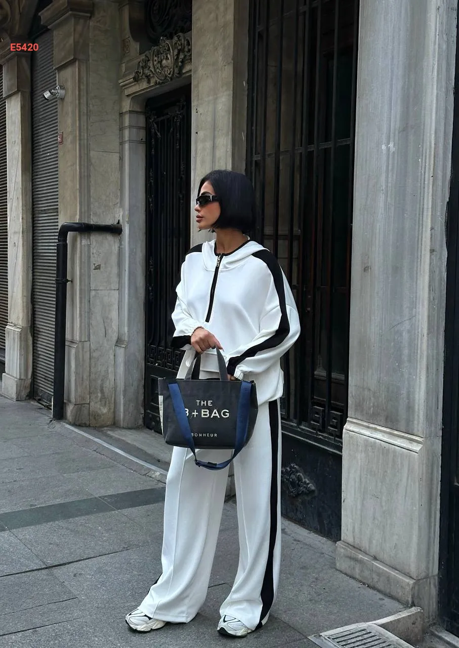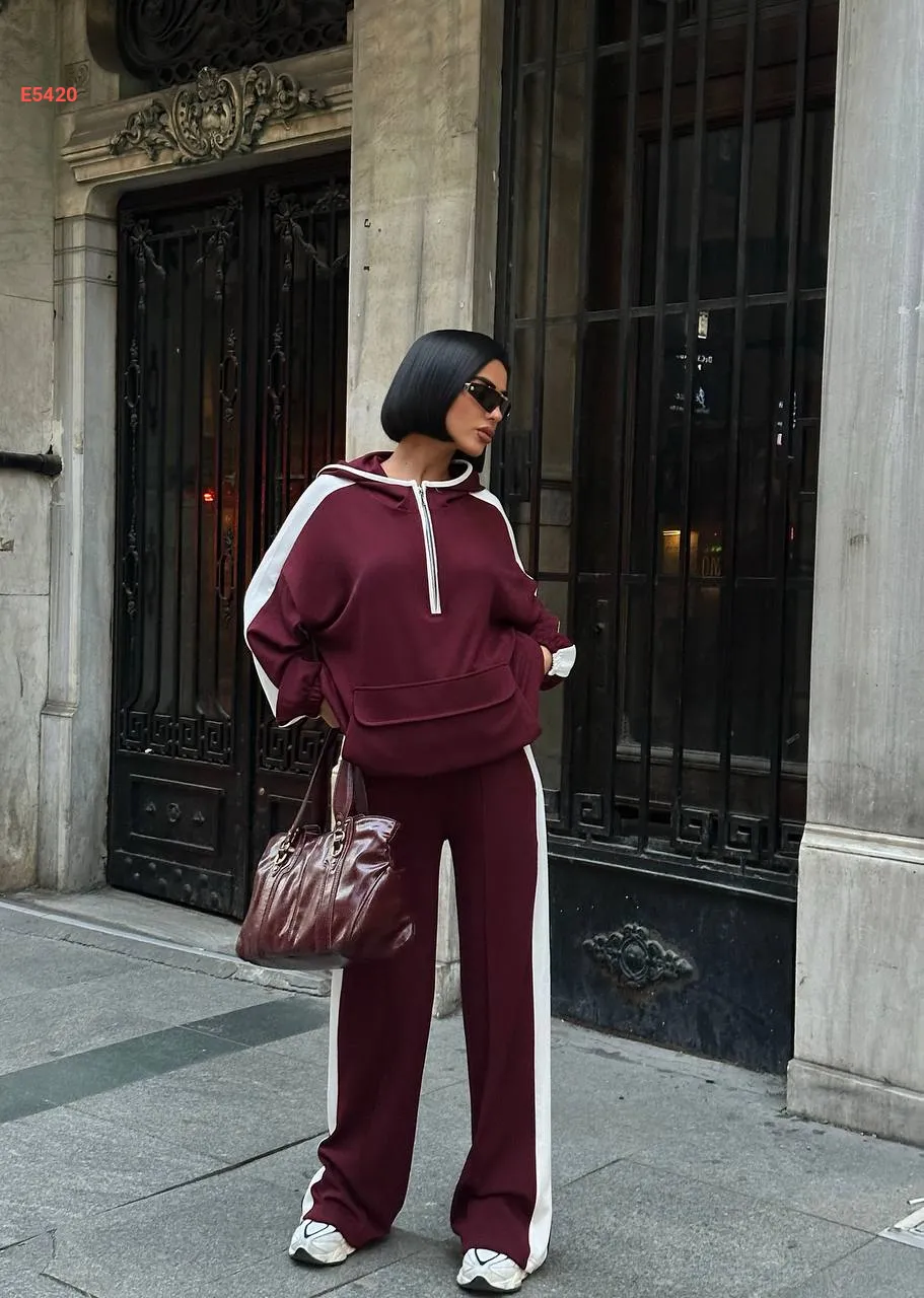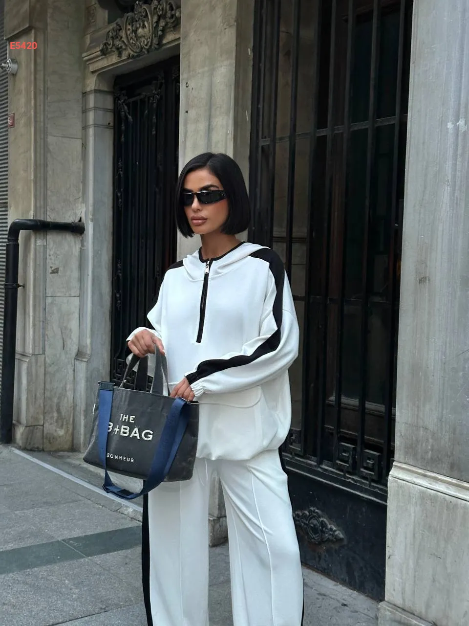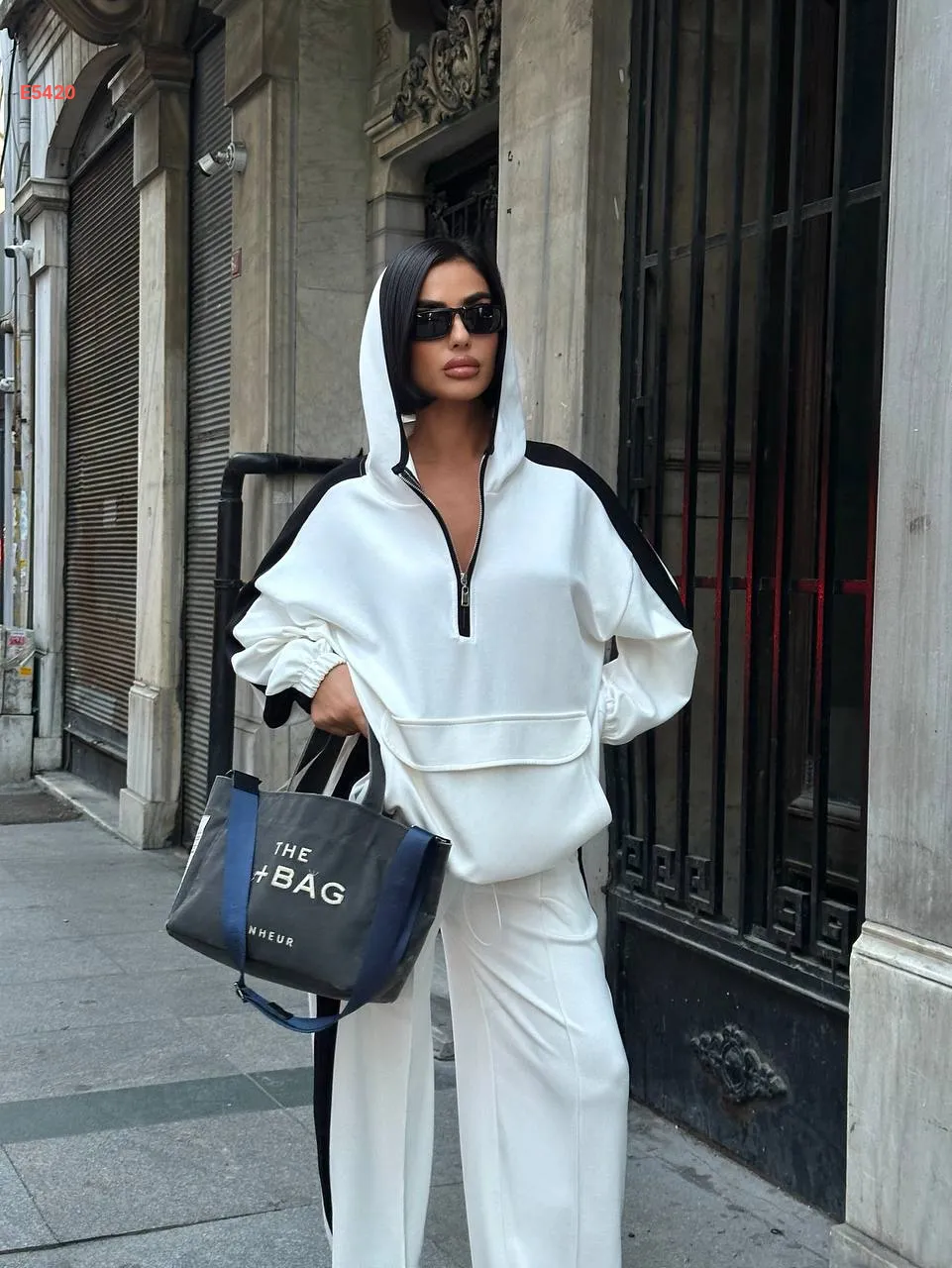 بيجامة قطعتين بغطاء رأس مع ياقة مرتفعة بسحاب