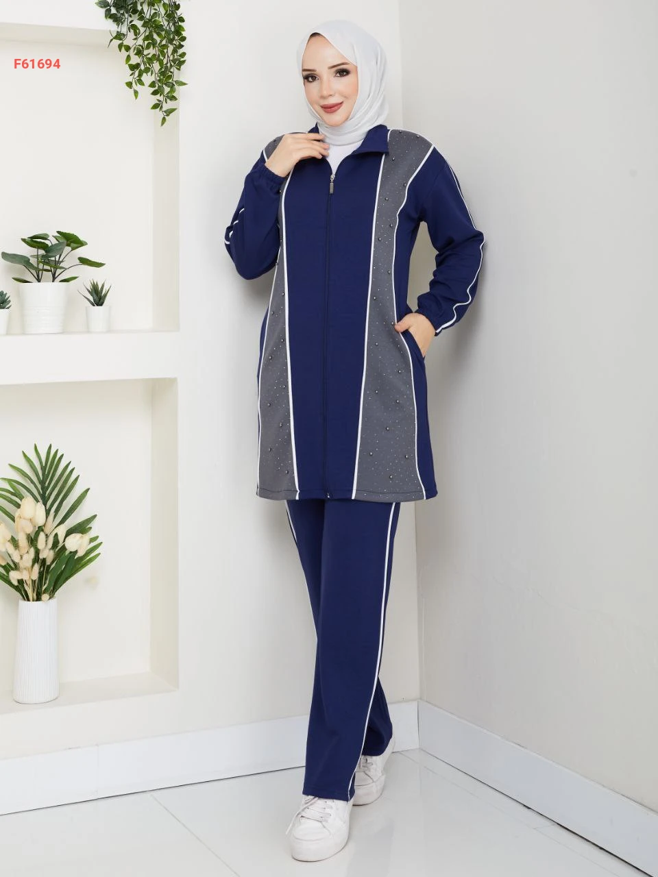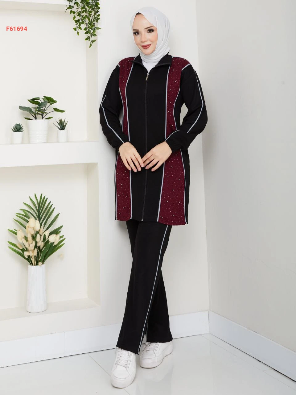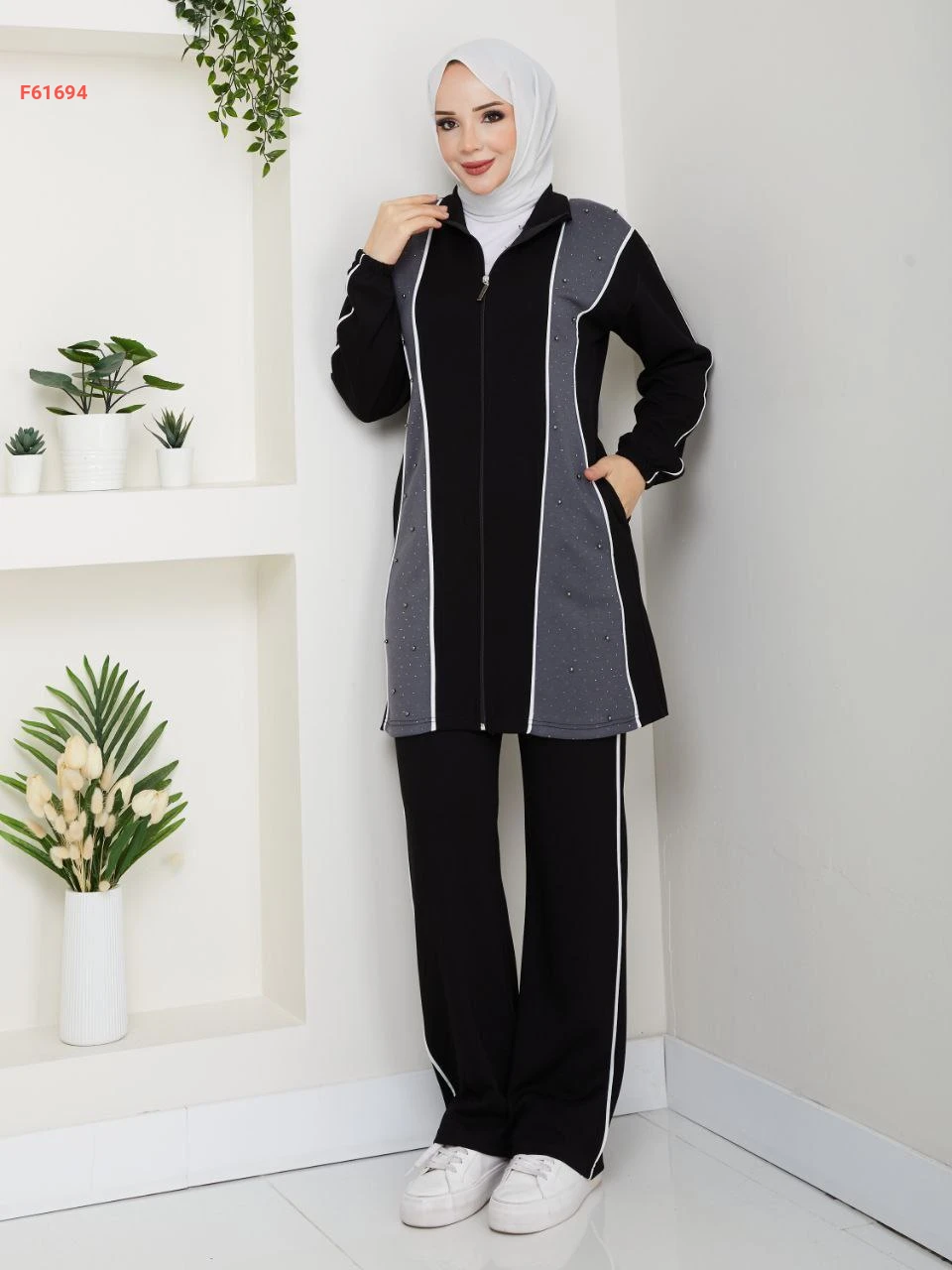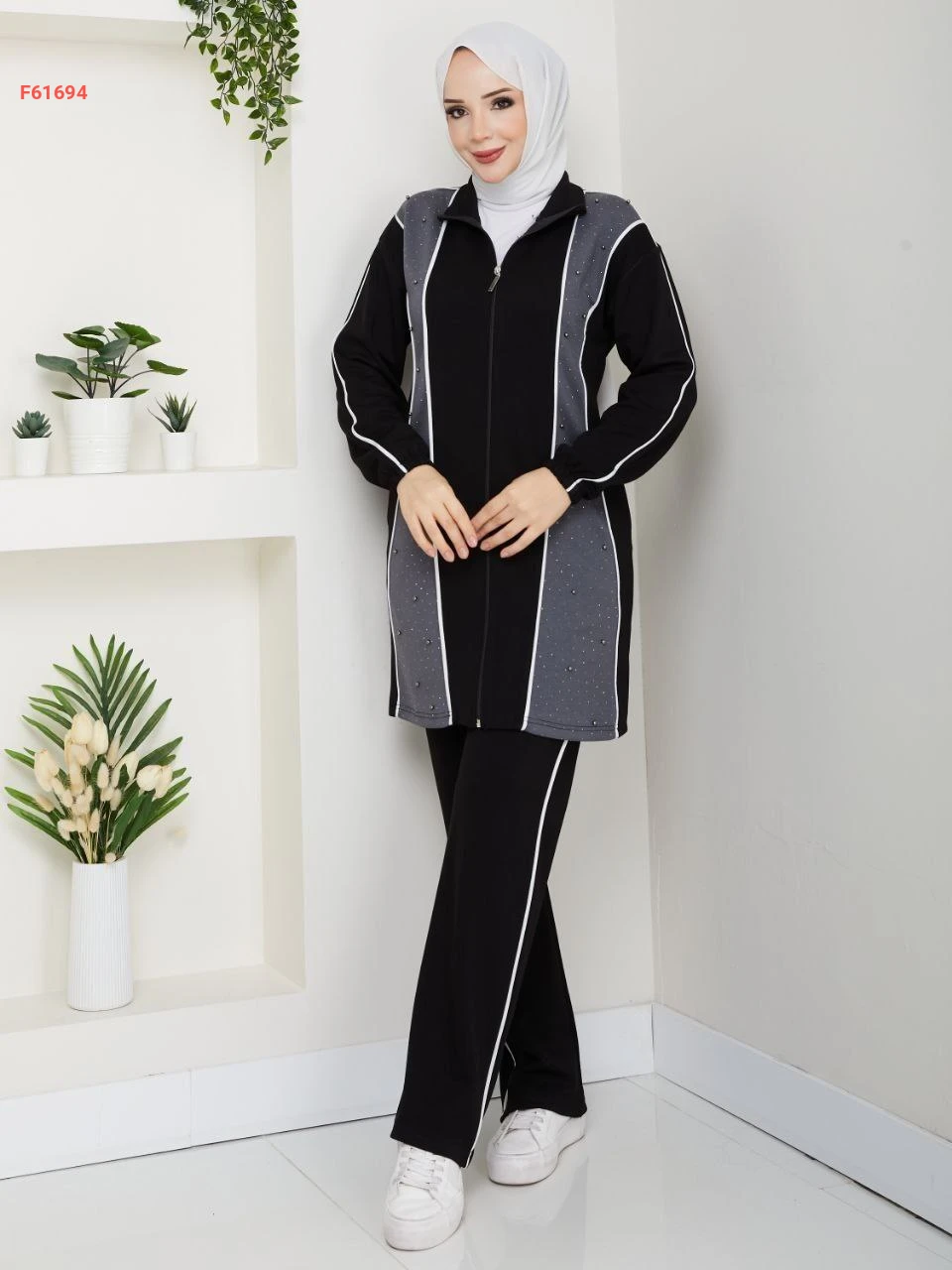 بيجامة قطعتين بسحاب مزينة بالستراس