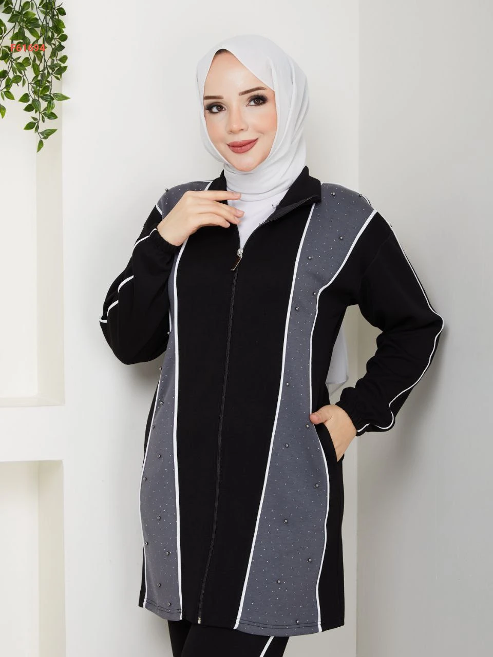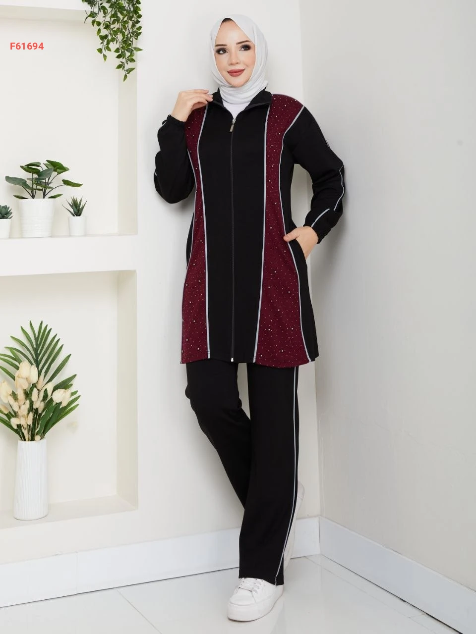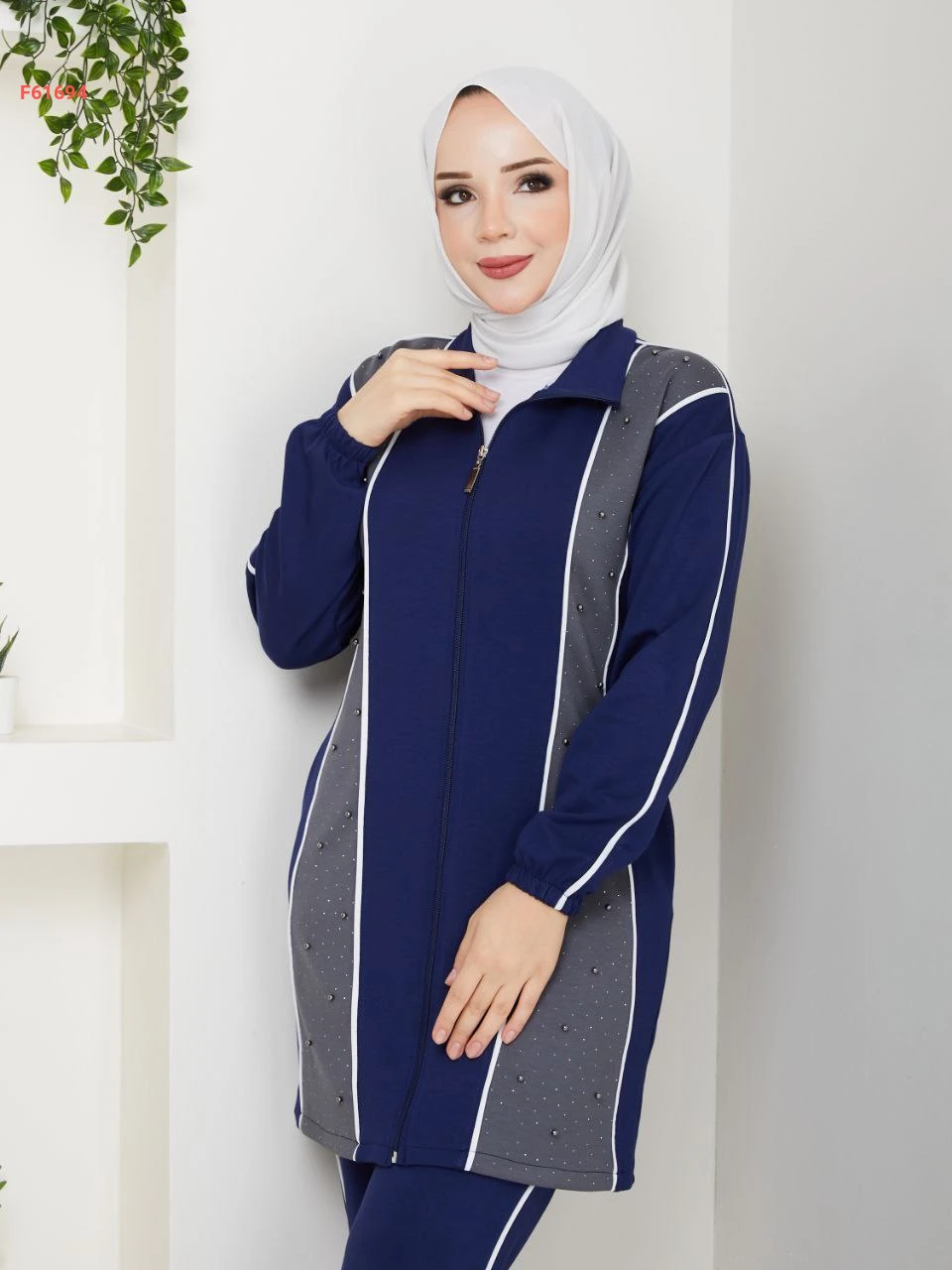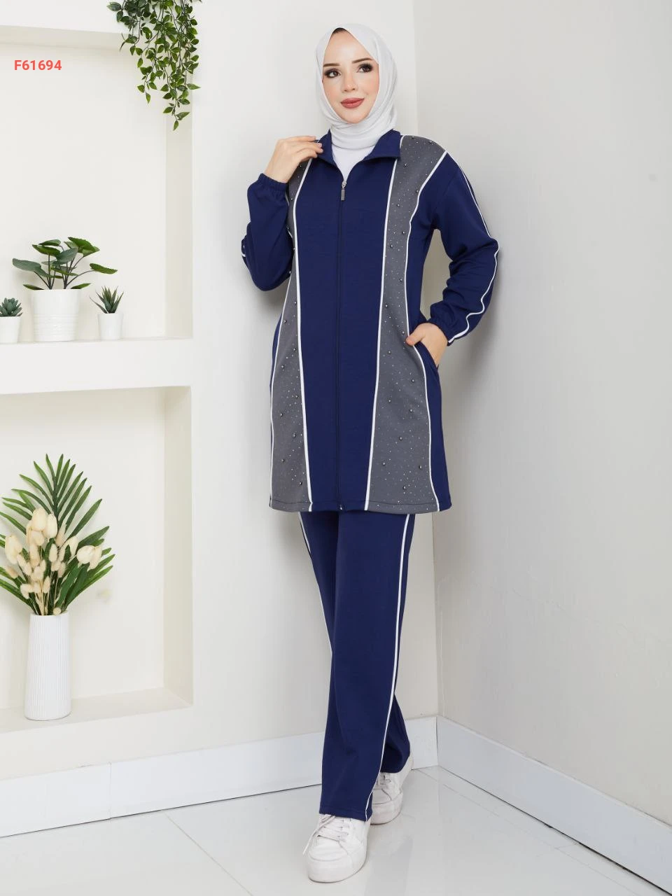 بيجامة قطعتين بسحاب مزينة بالستراس