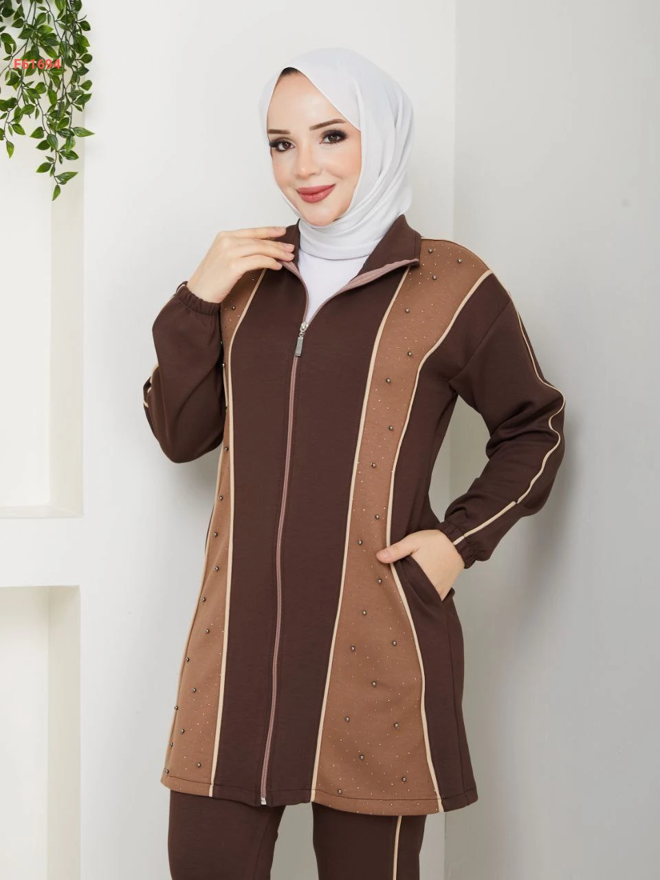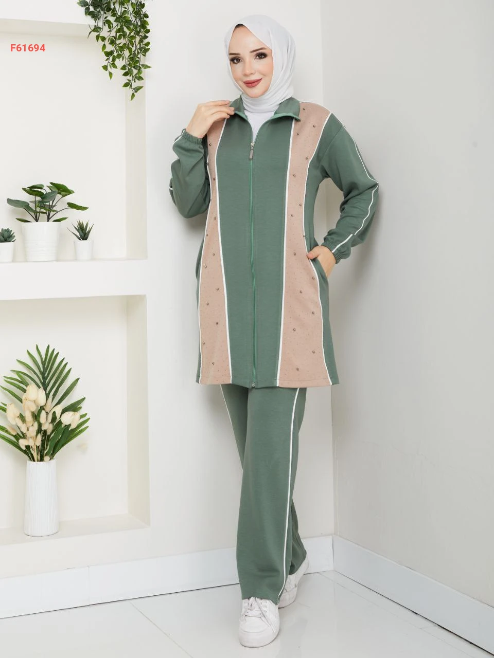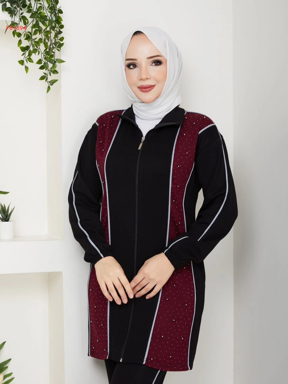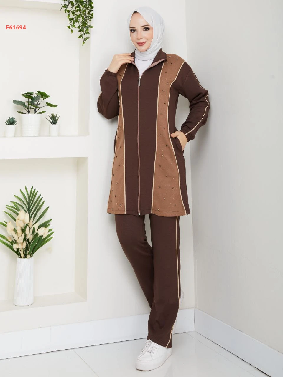 بيجامة قطعتين بسحاب مزينة بالستراس