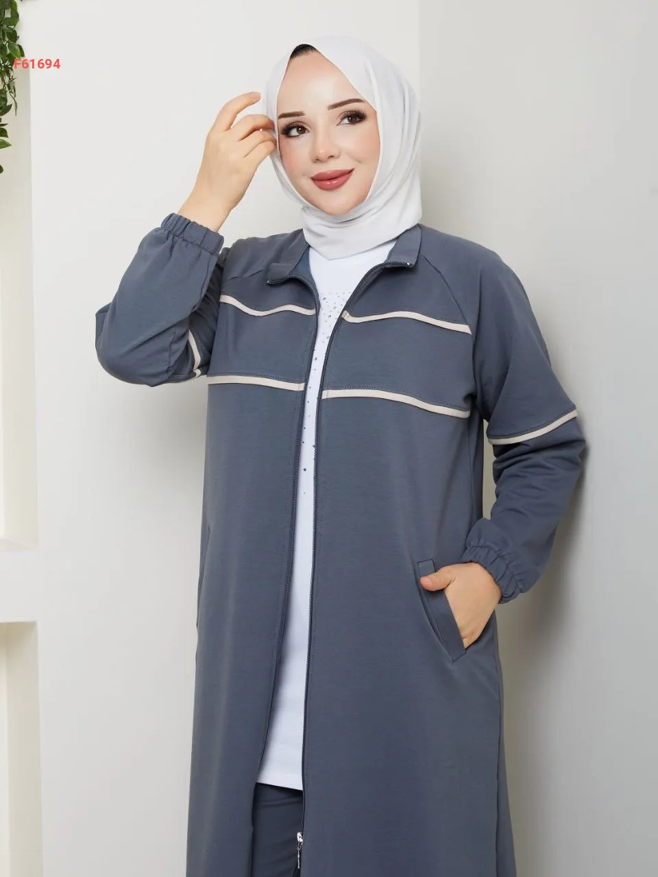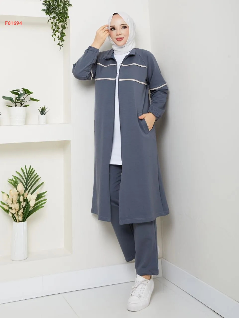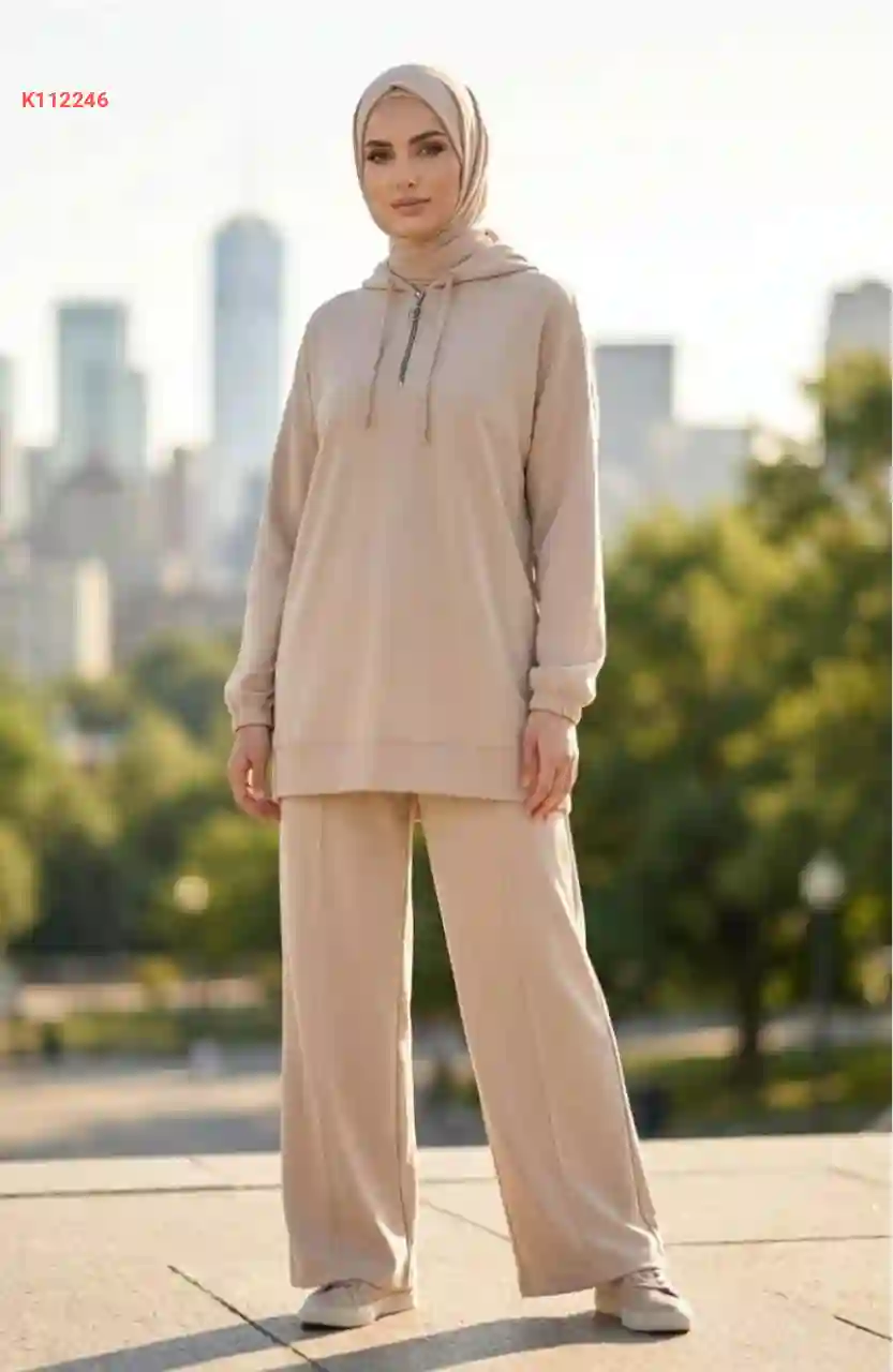 بيجامة قطعتين بسحاب،