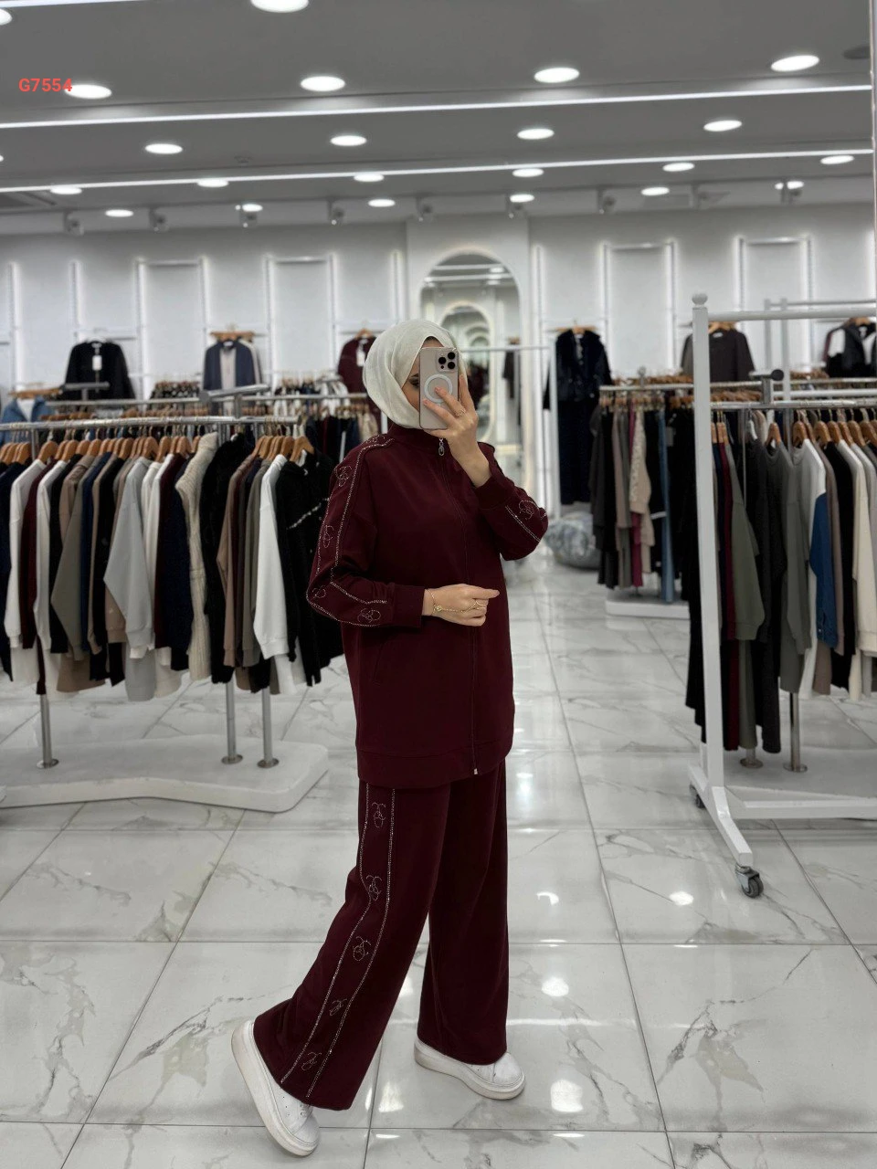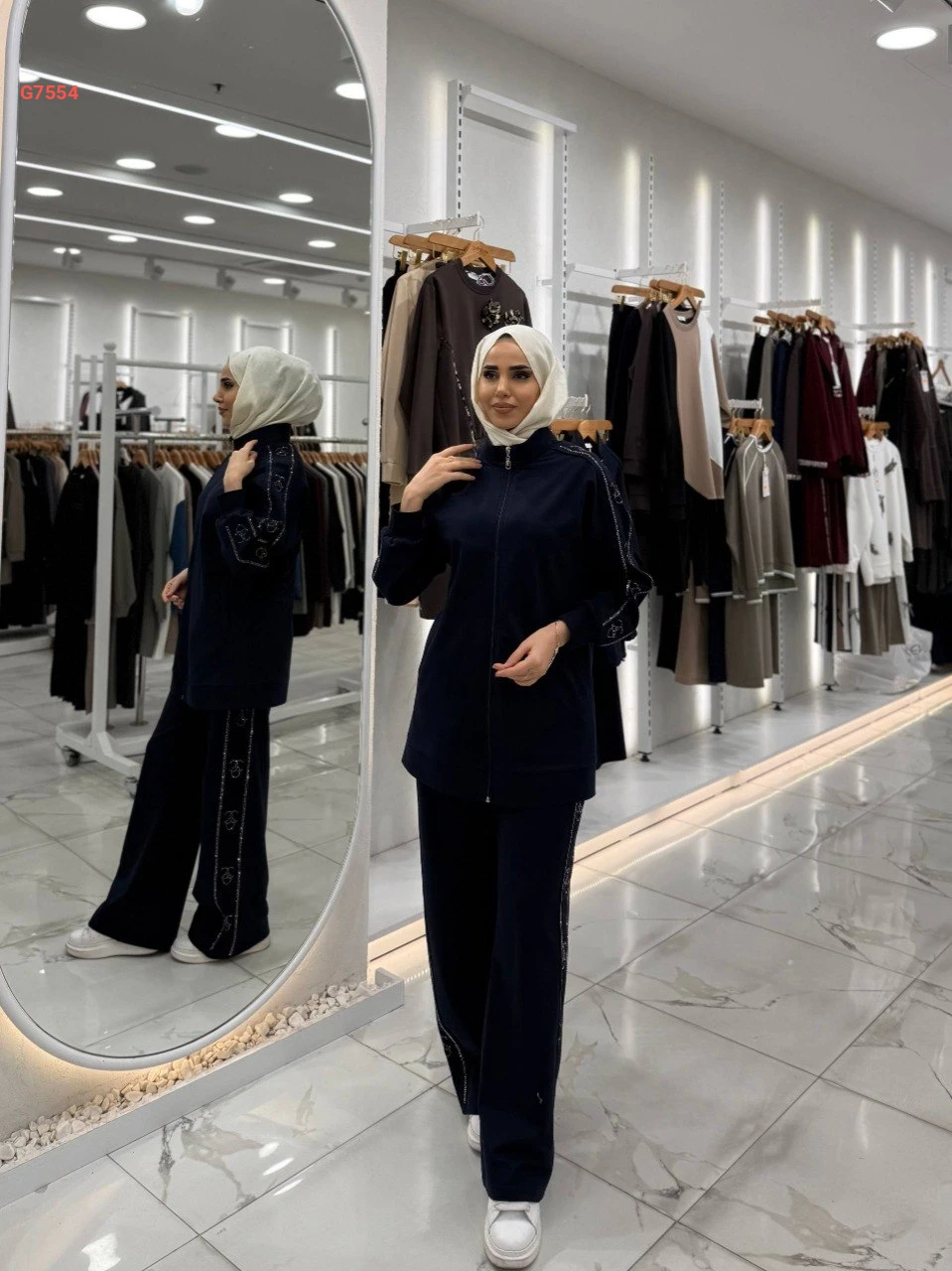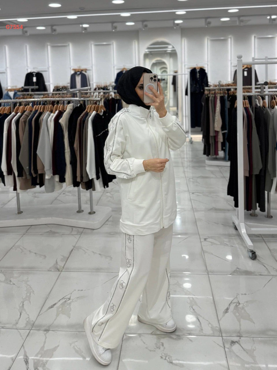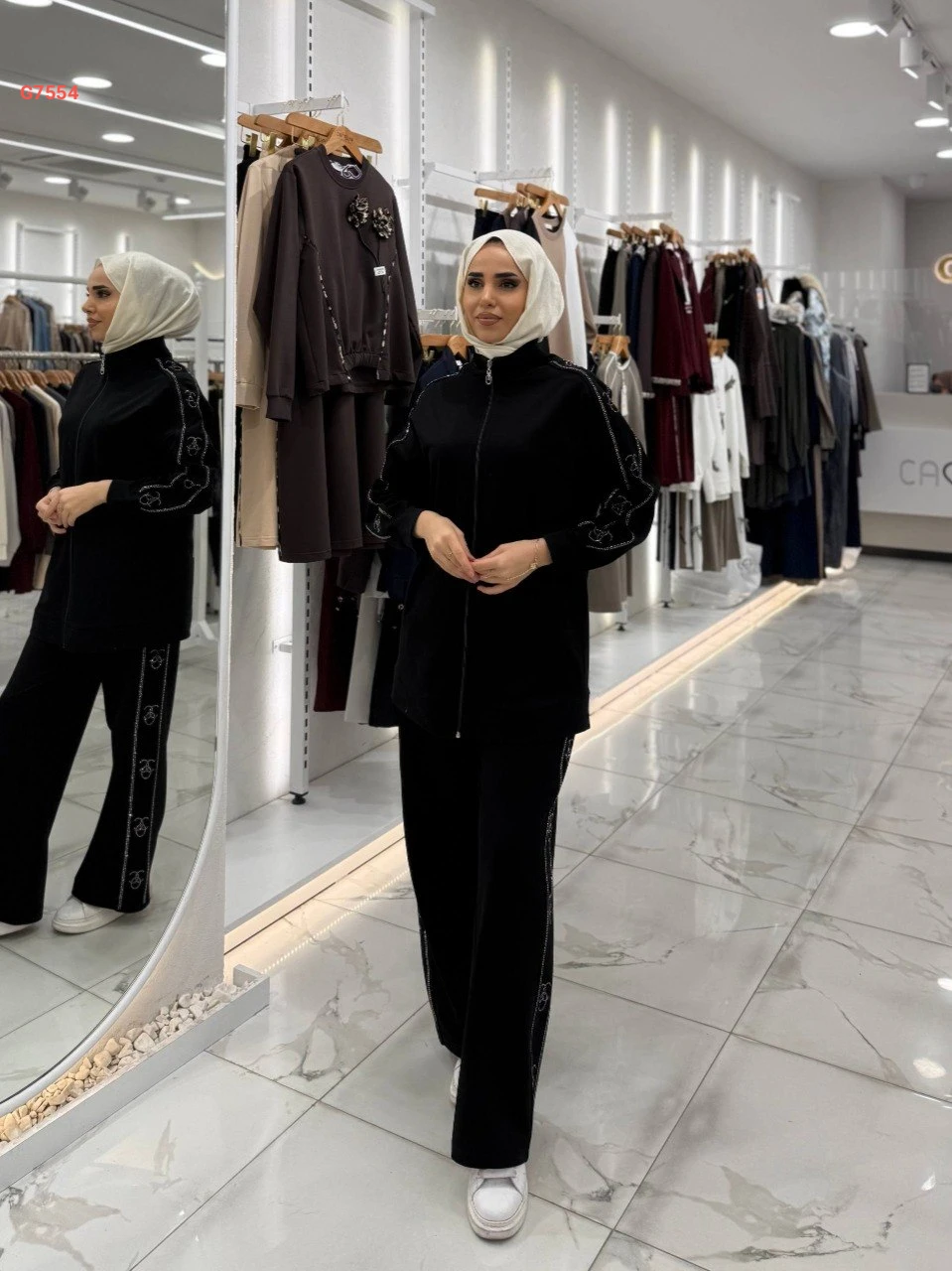 بيجامة قطعتين بسحاب مزينة بالستراس