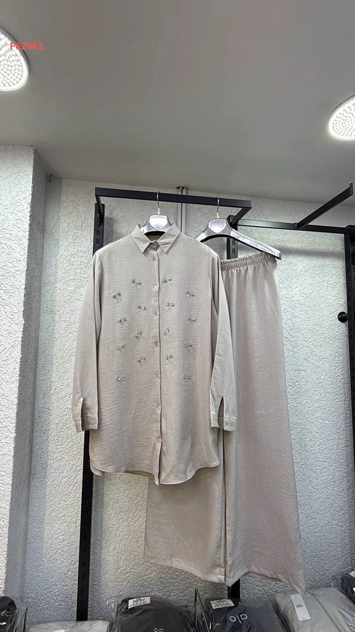 طقم بنطال قطعتين مزين بالألماس