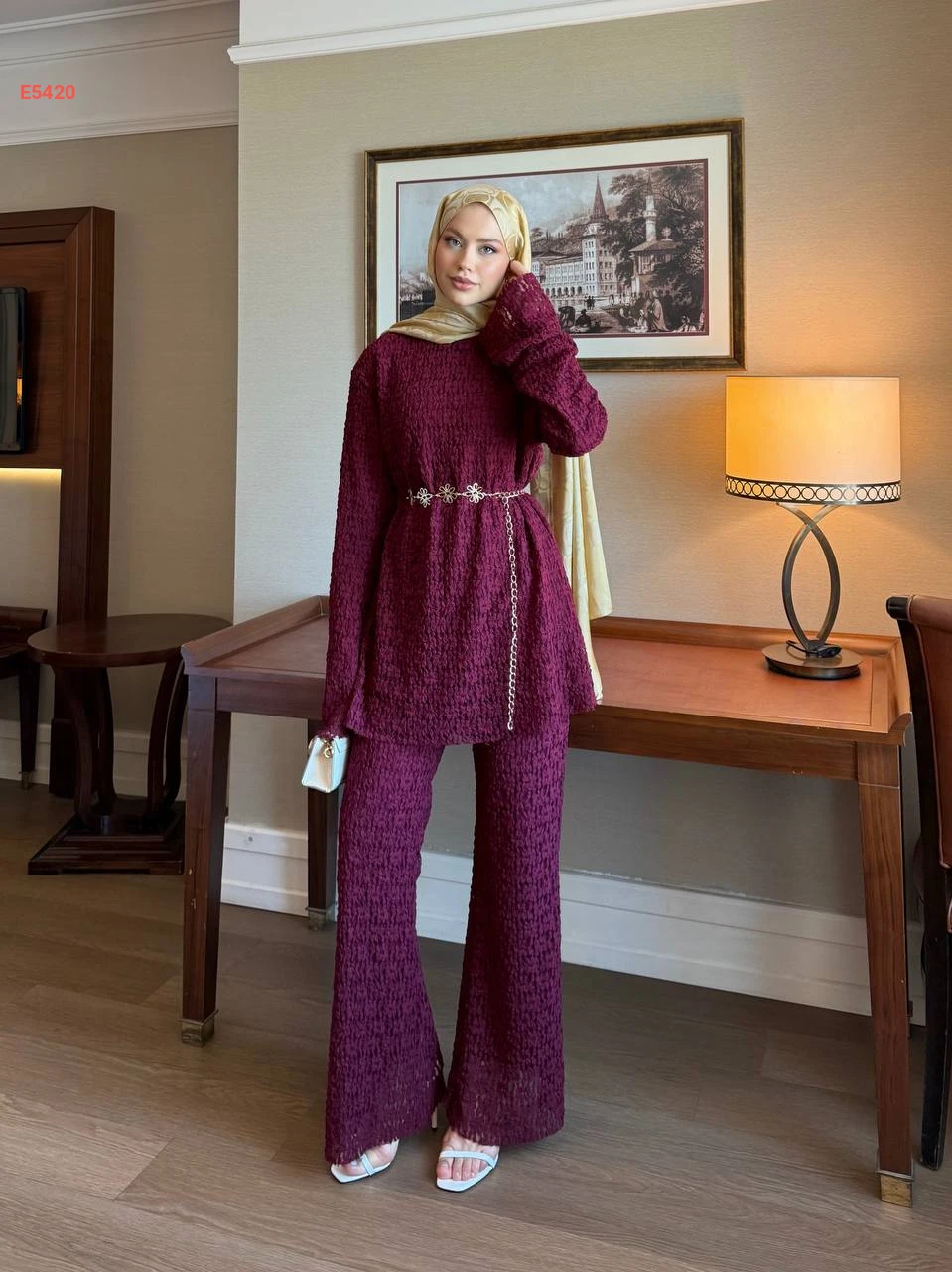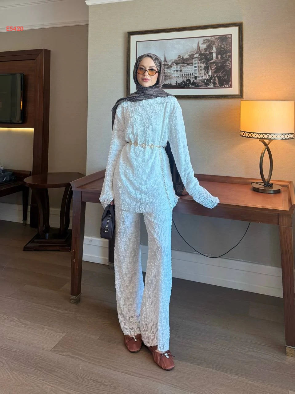 طقم بنطال قطعتين مع زنار على الخصر