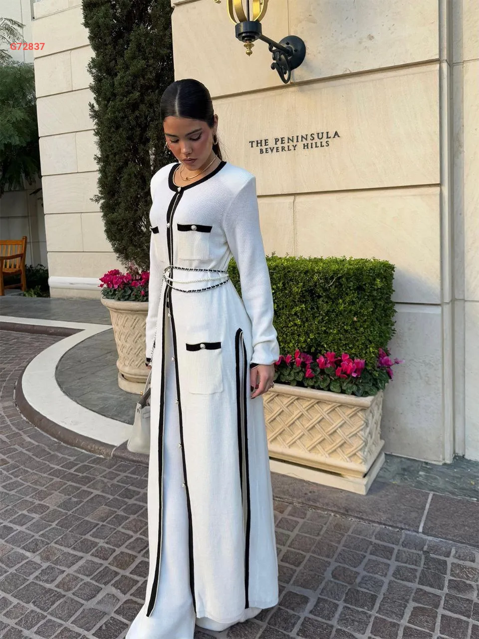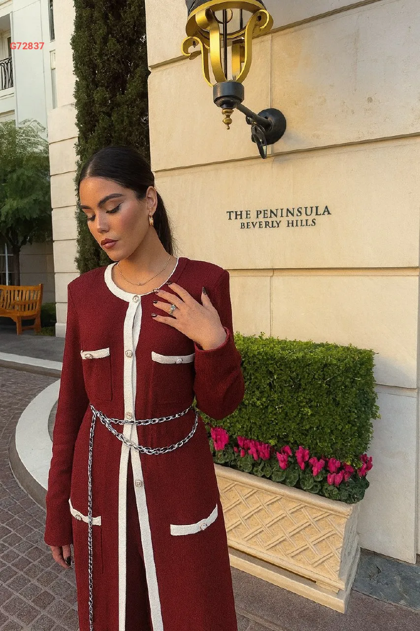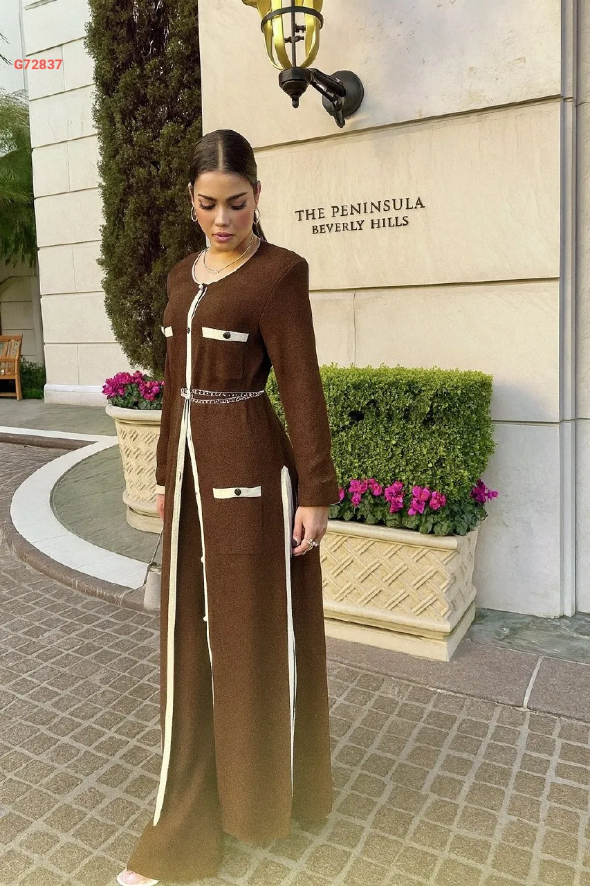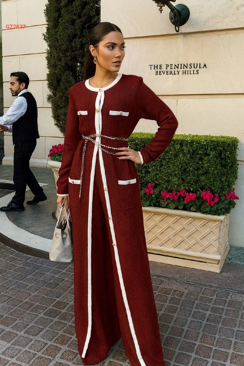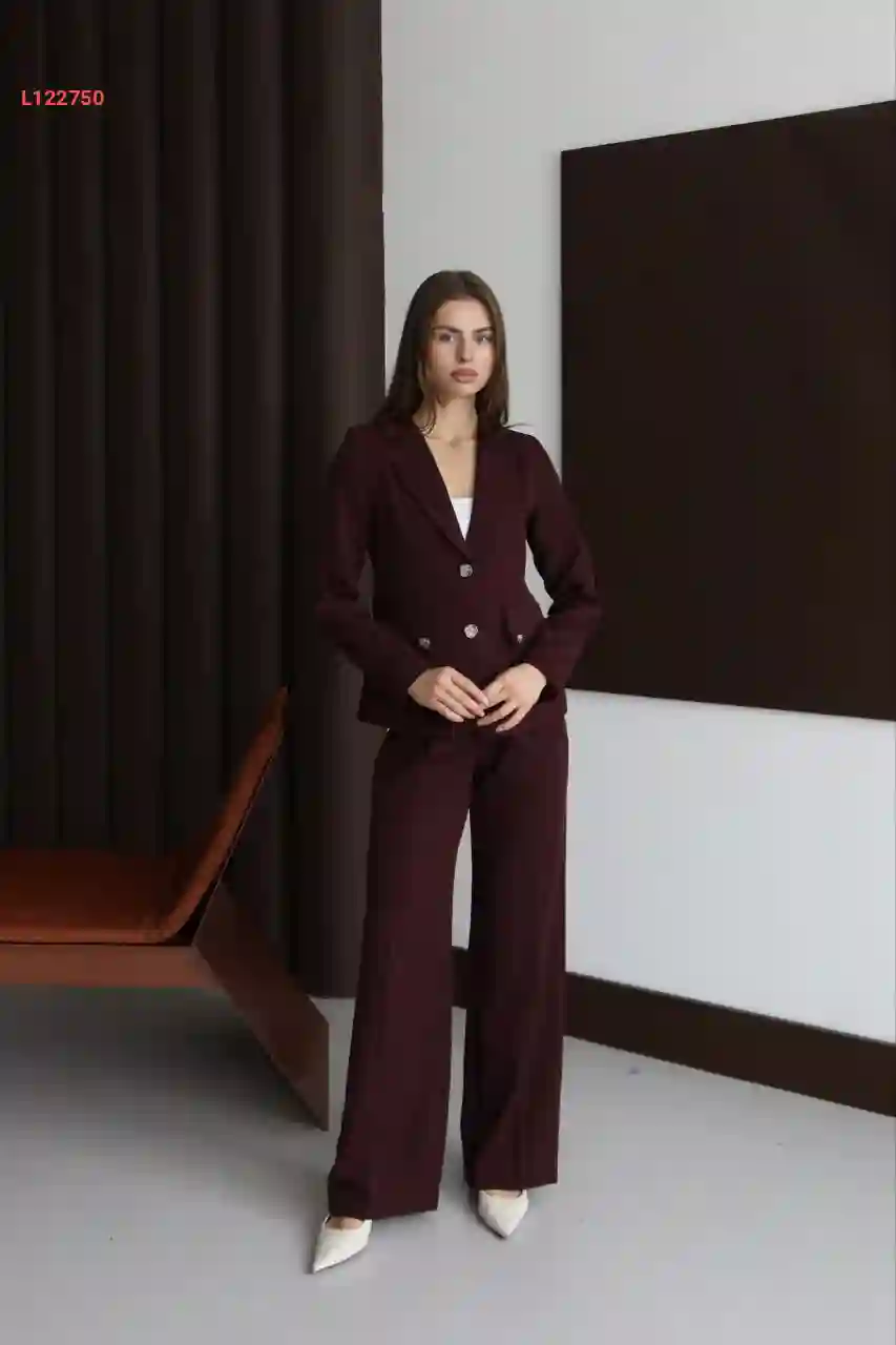 طقم بنطال قطعتين بأزرار مع حزام سلاسل