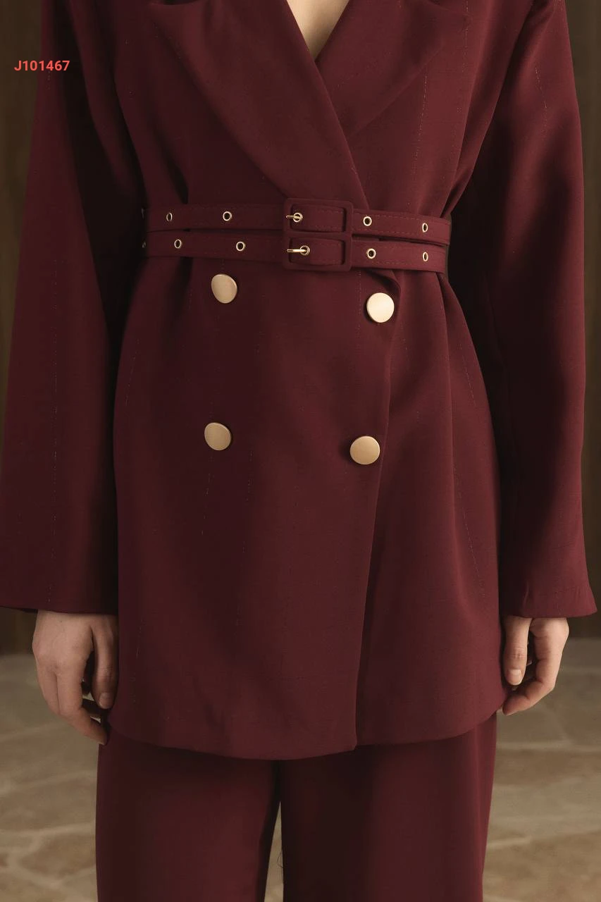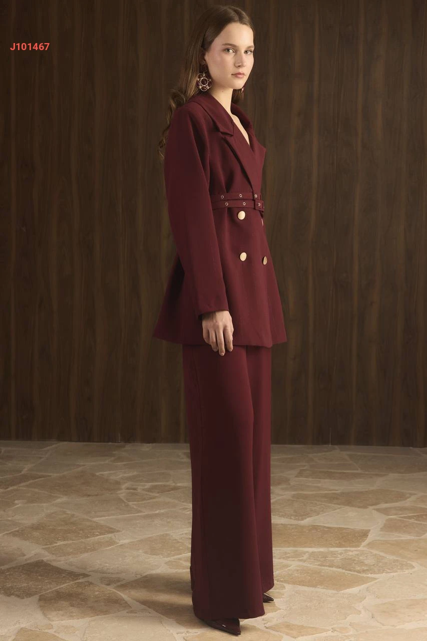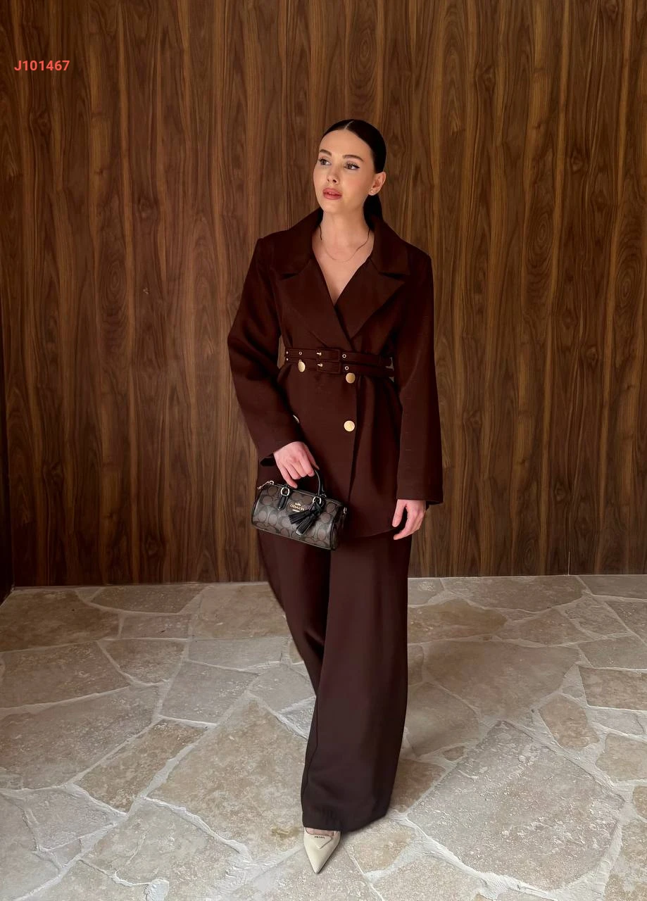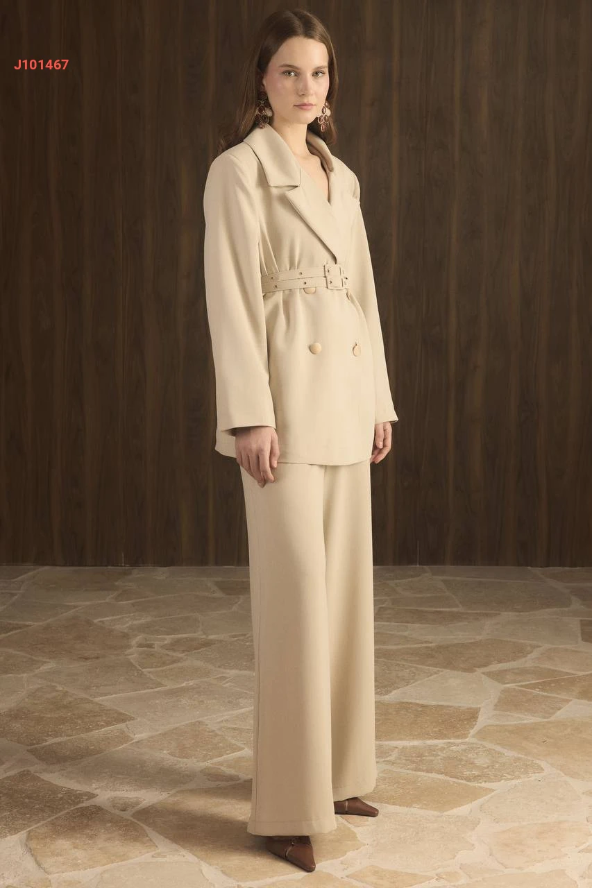 طقم بنطال قطعتين مع جاكيت بأزرار مزدوجة مع حزام