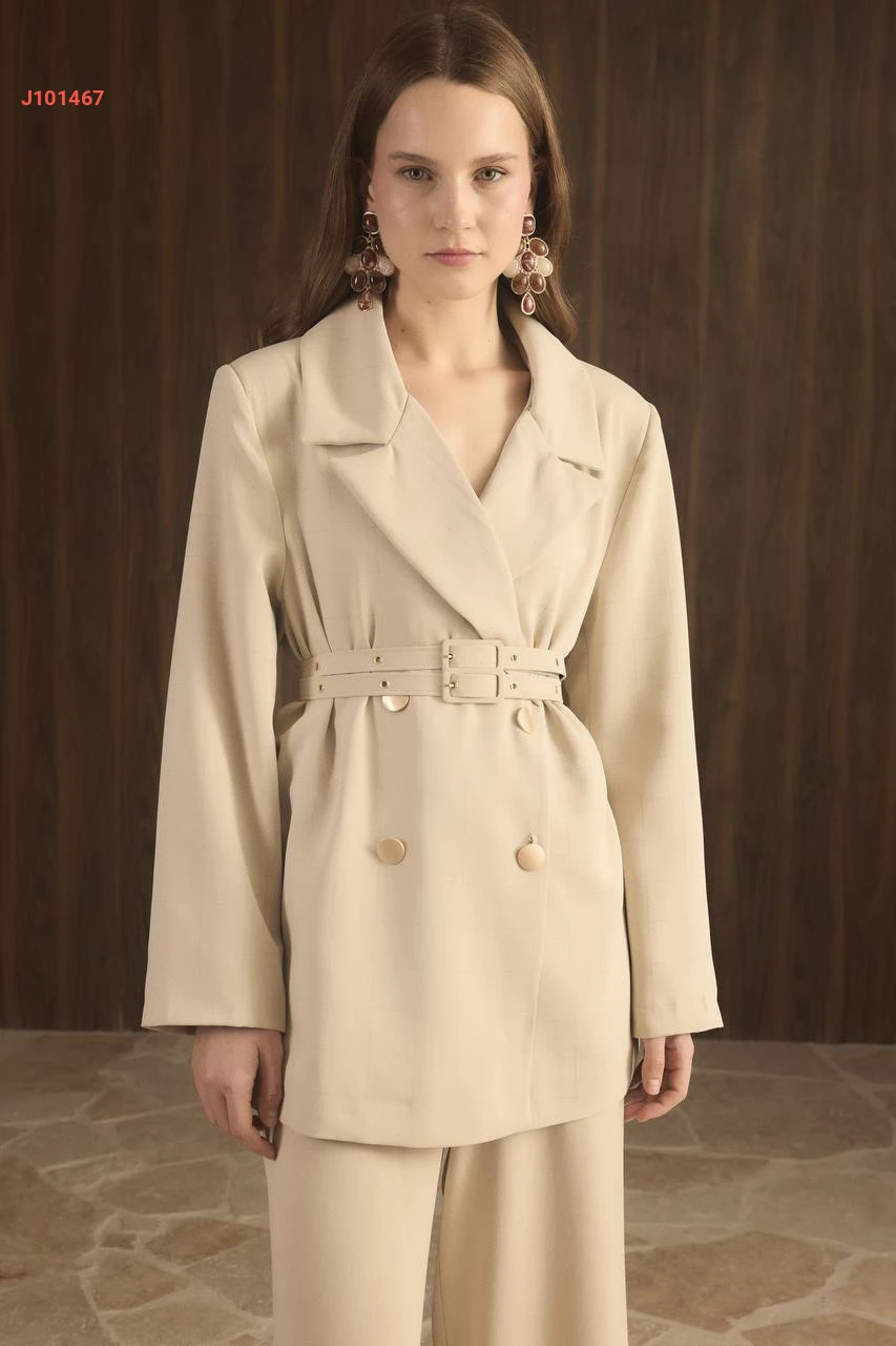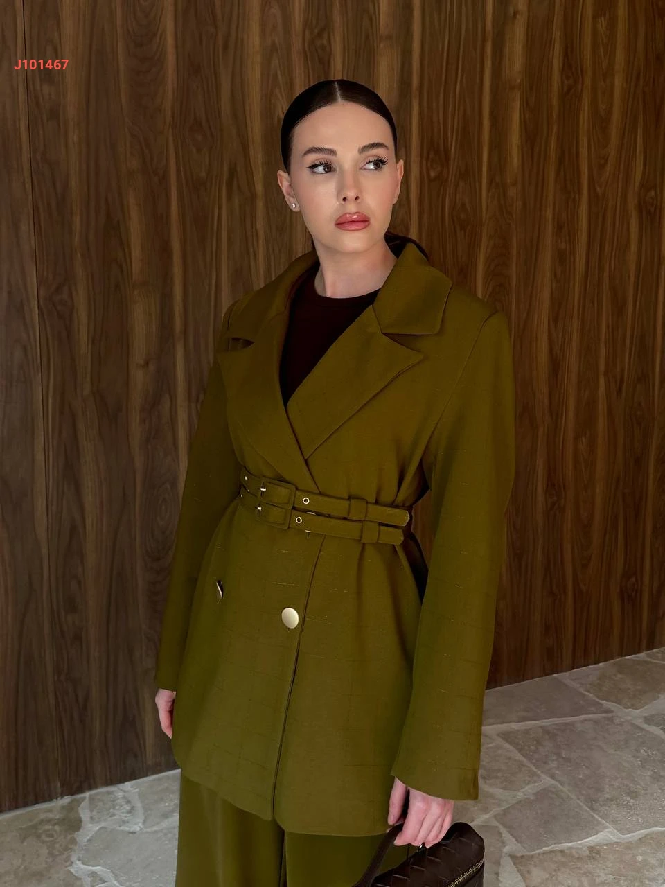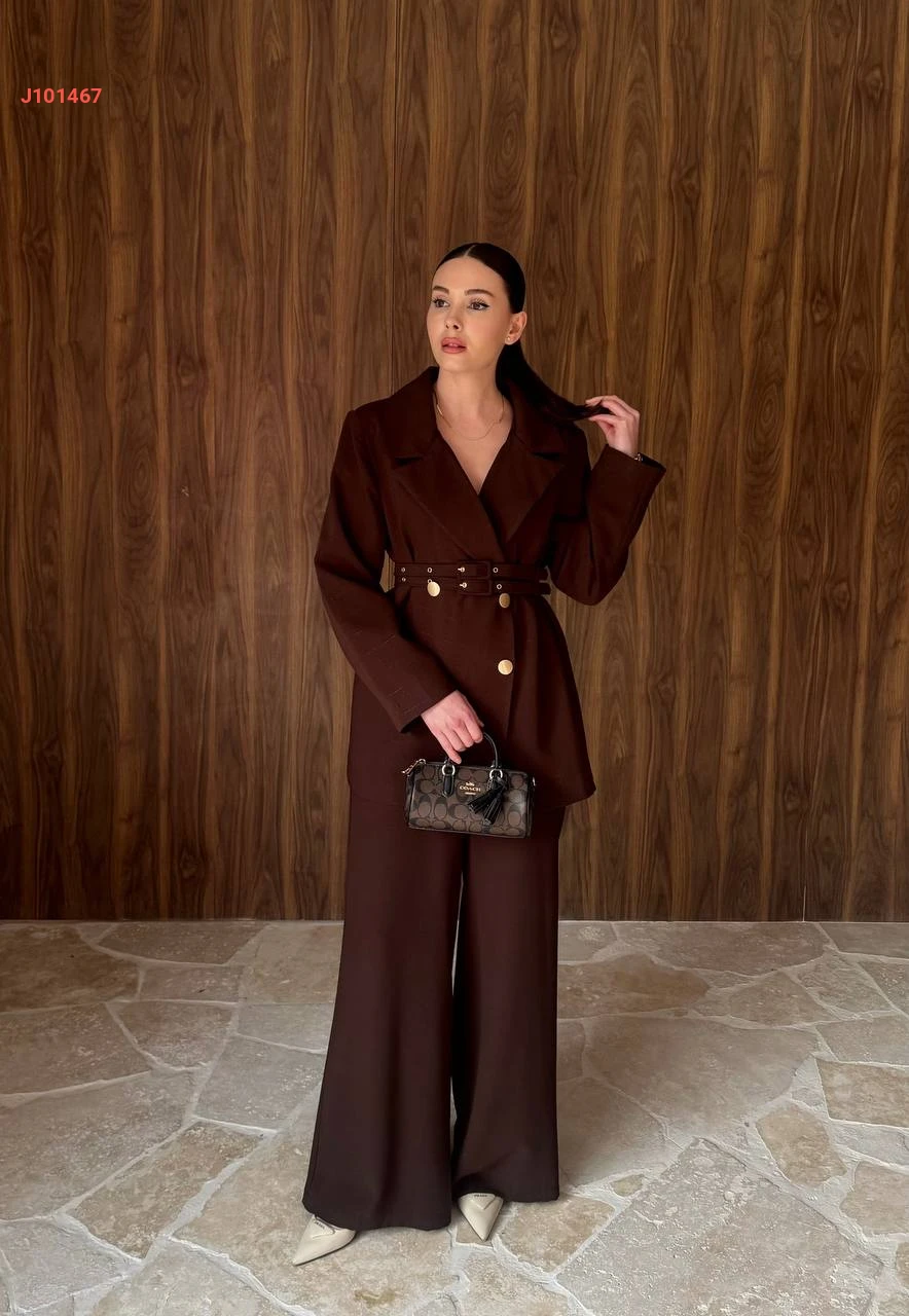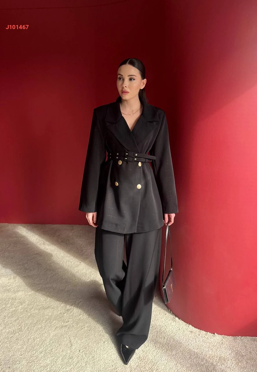 طقم بنطال قطعتين مع جاكيت بأزرار مزدوجة مع حزام