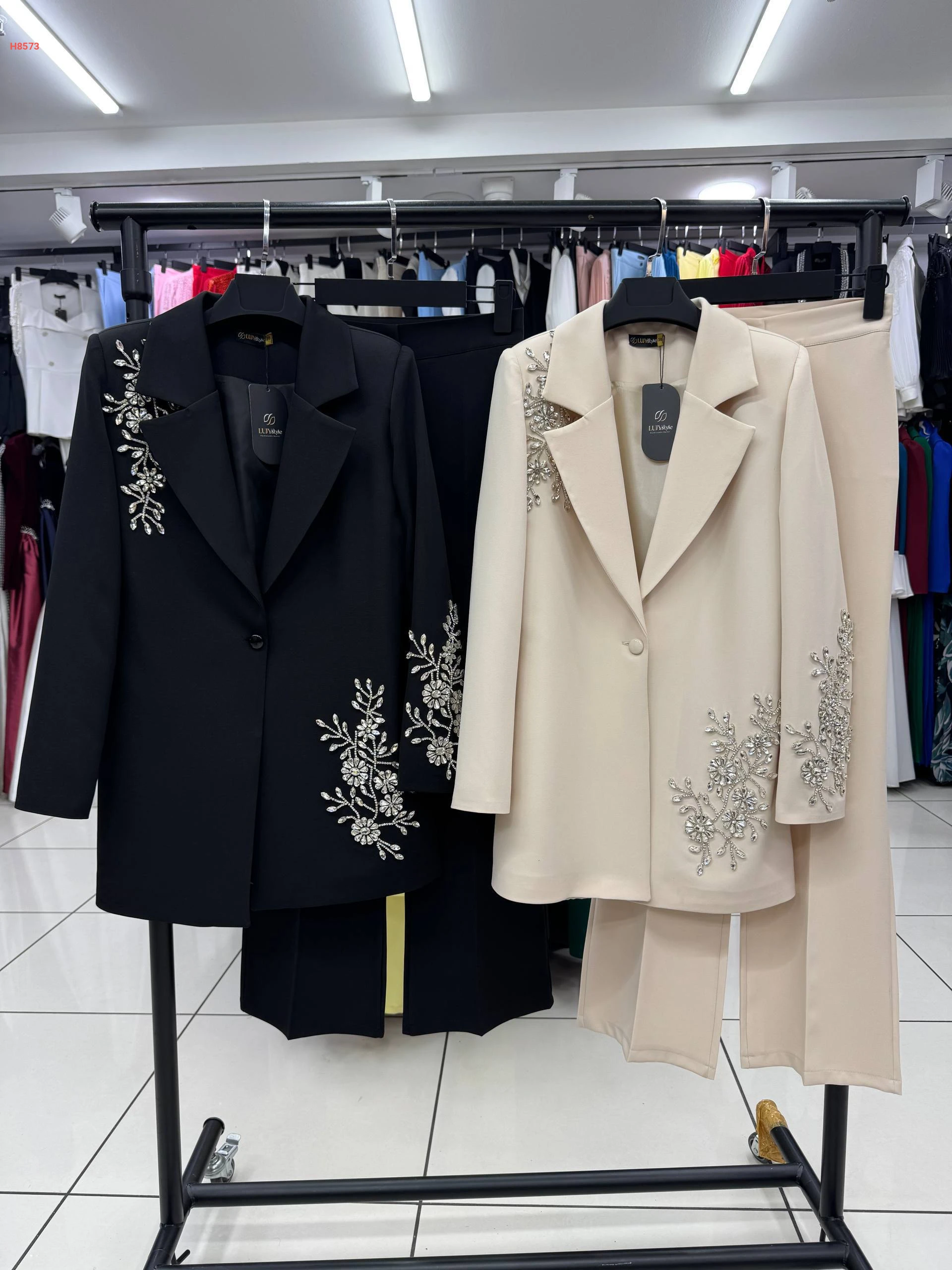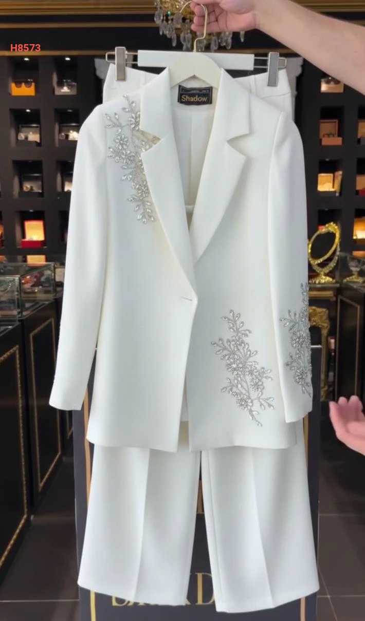طقم بنطال قطعتين بأزرار مرصع بعرق من الكريستال