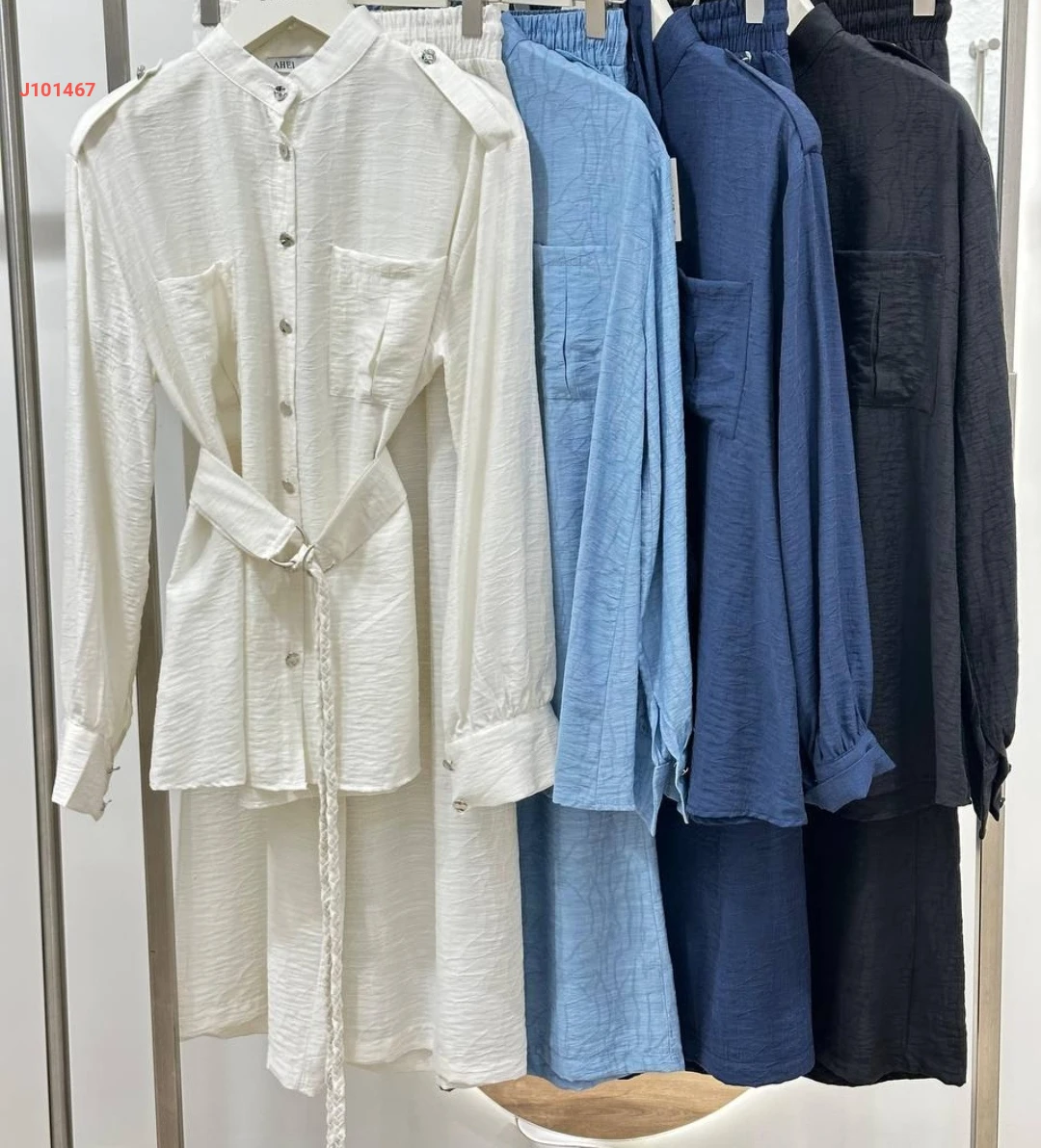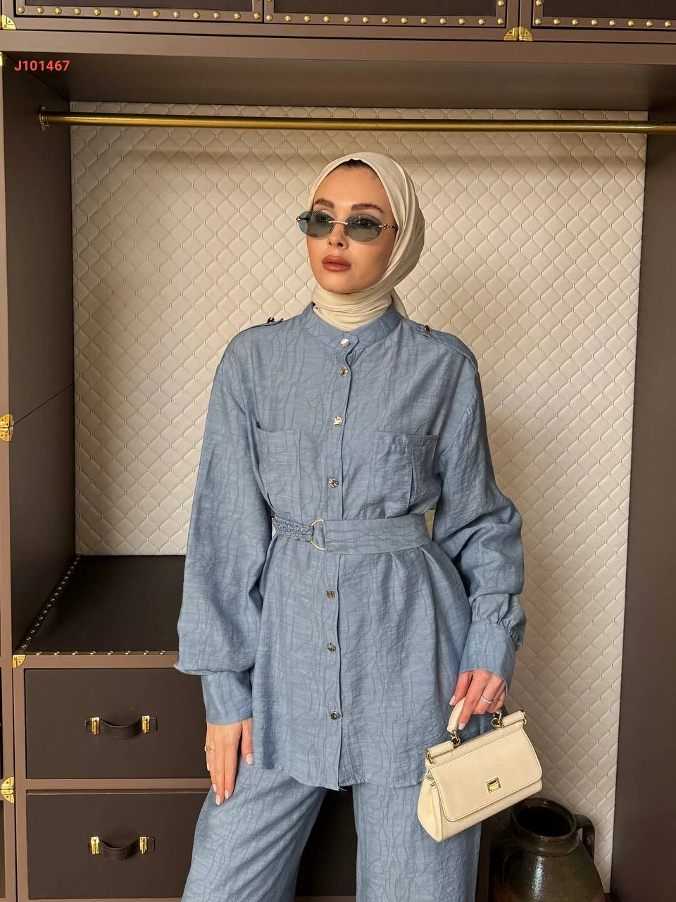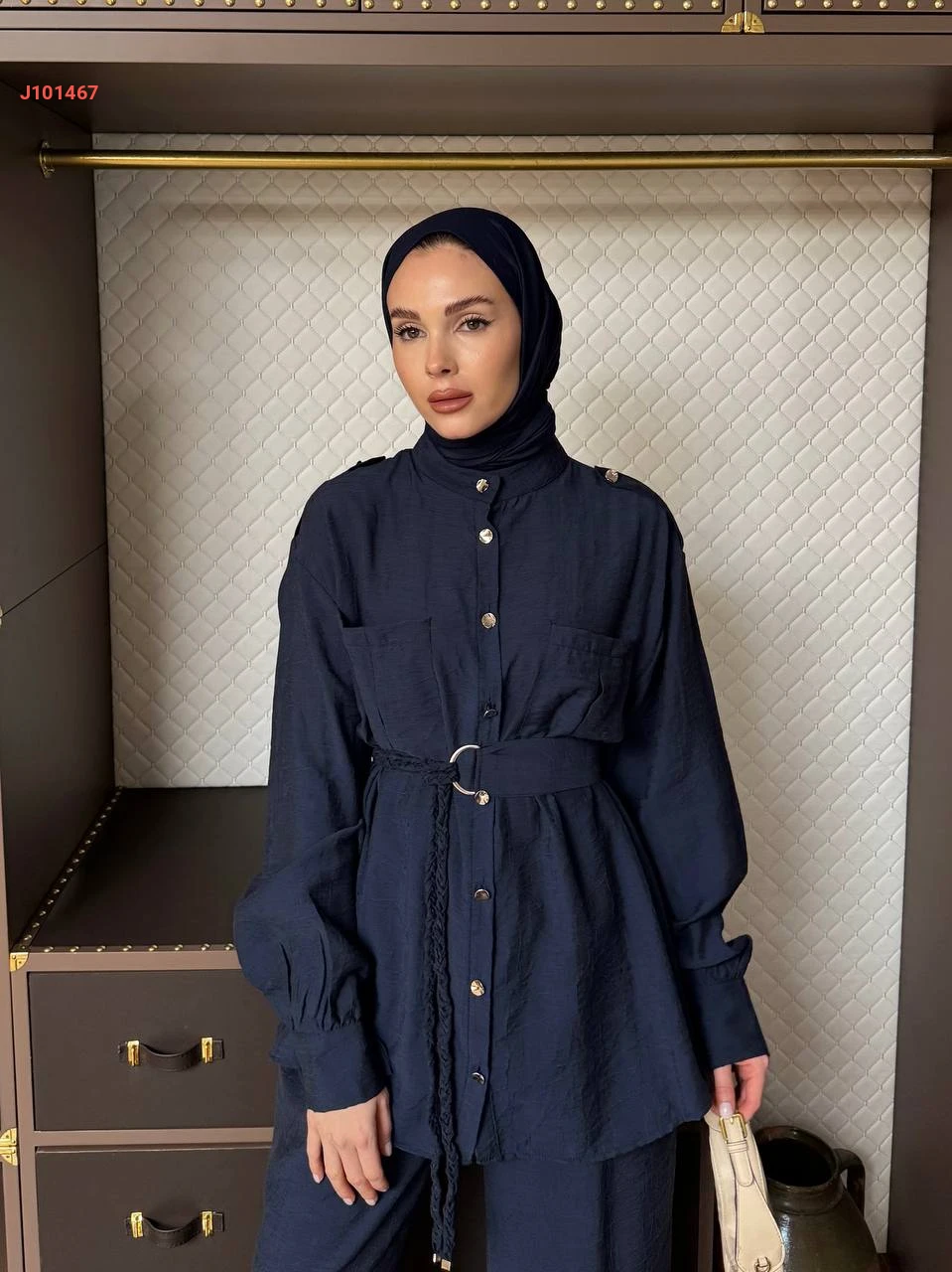 طقم بنطال قطعتين بأزرار مع جيب وحزام