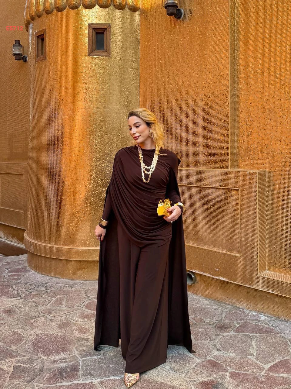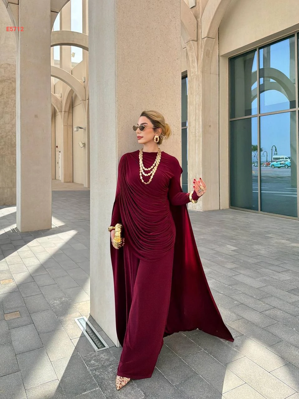طقم بنطال قطعتين بتفاصيل مجمعة