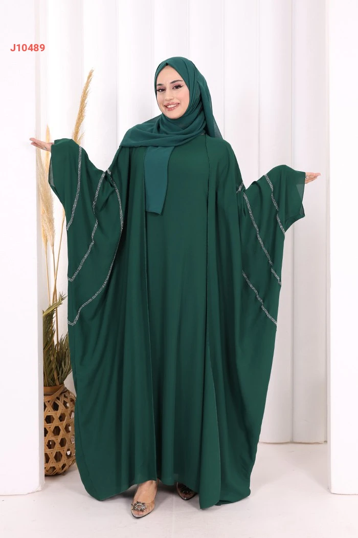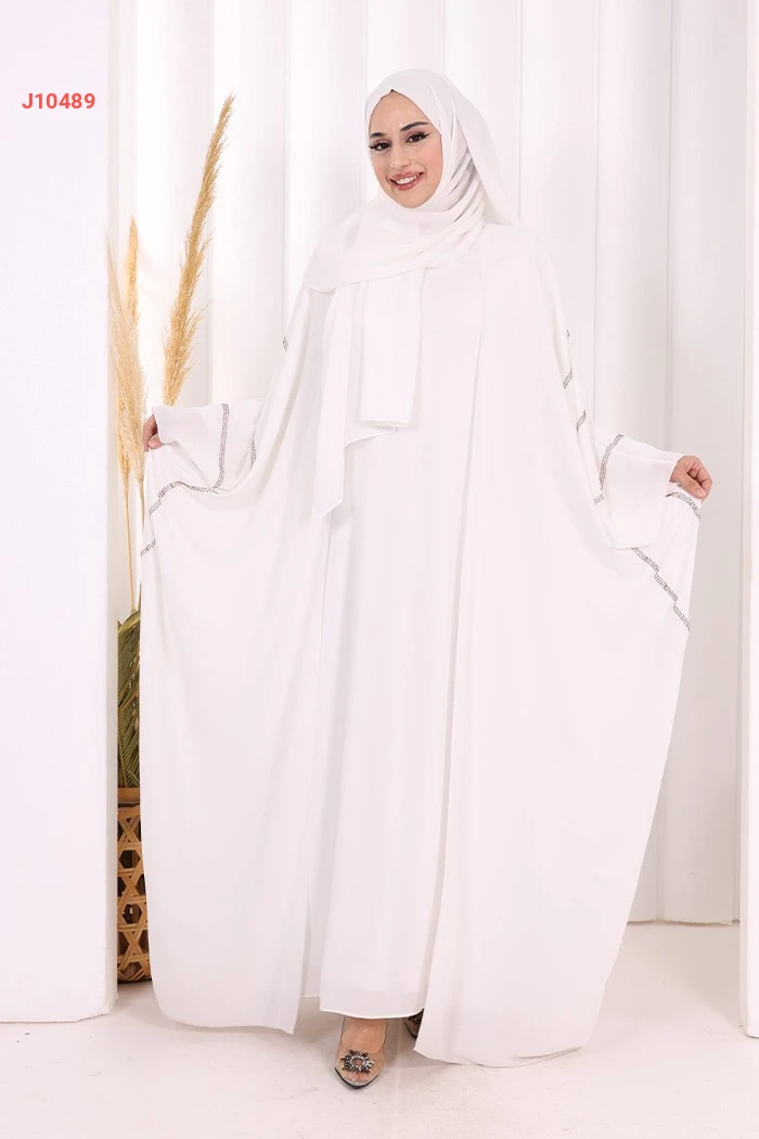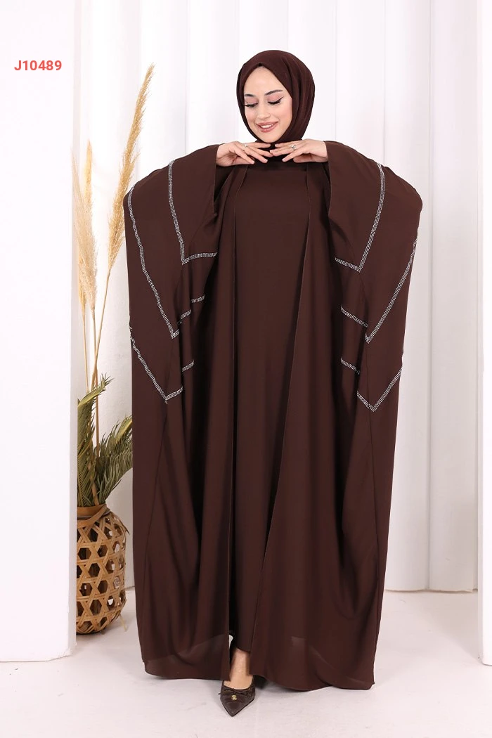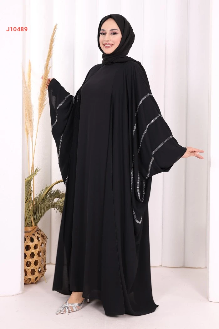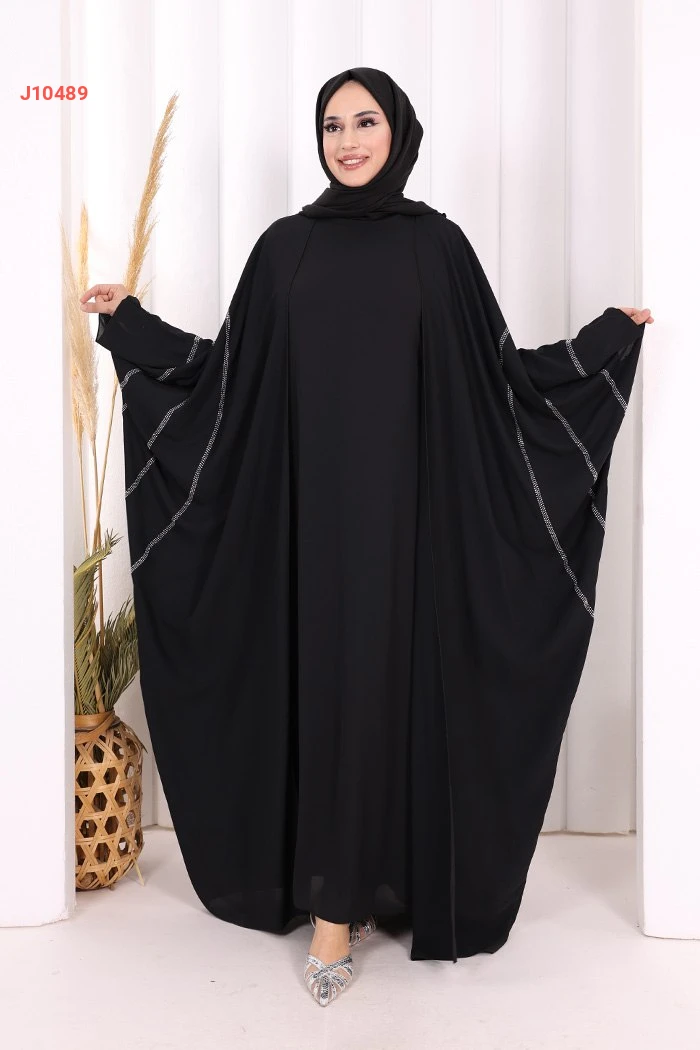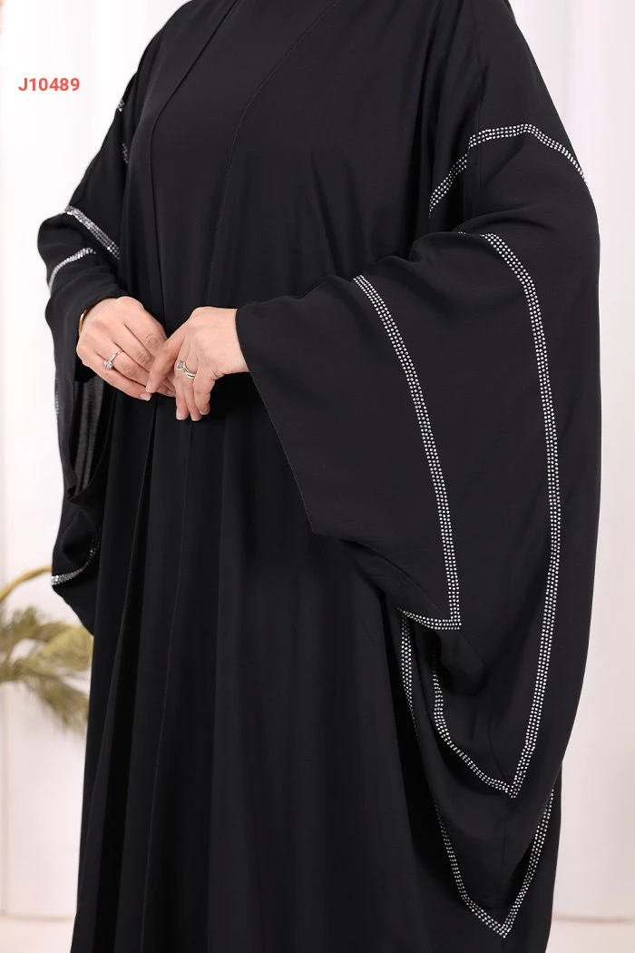 عباية قطعتين سادة واسعة موديل فراشة بأكمام مزين بالستراس