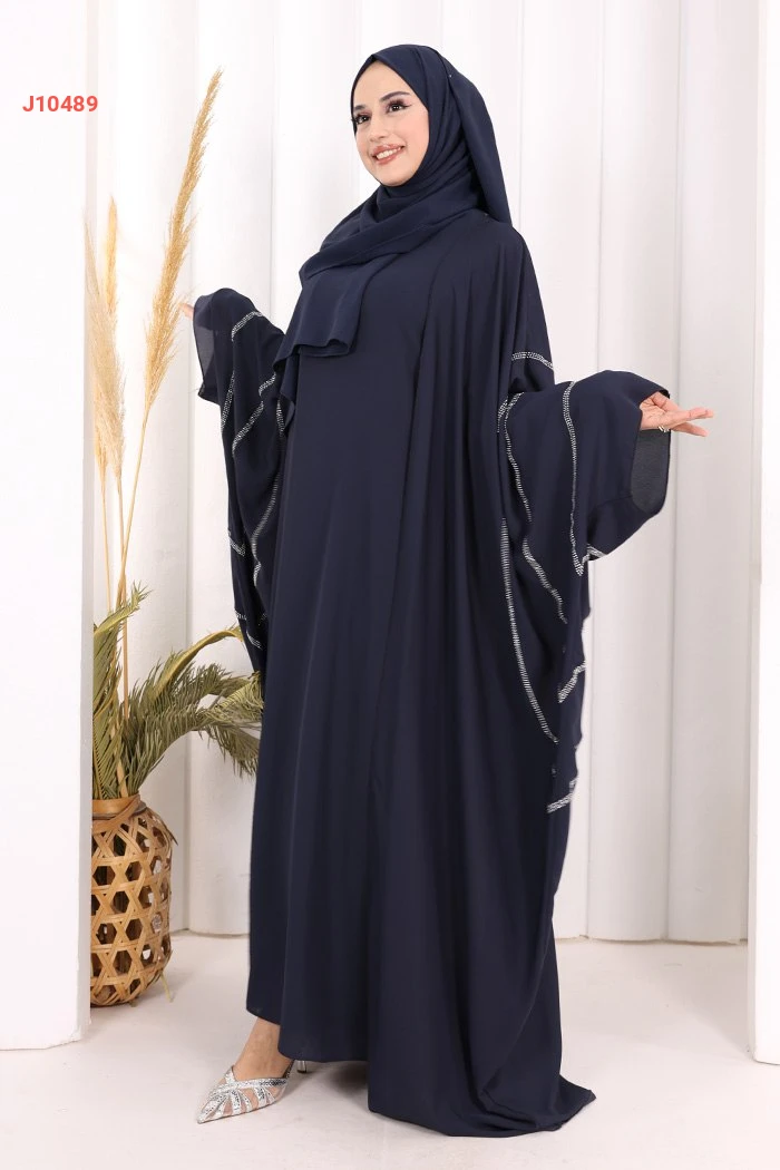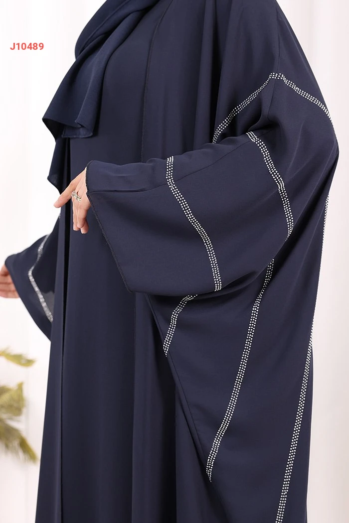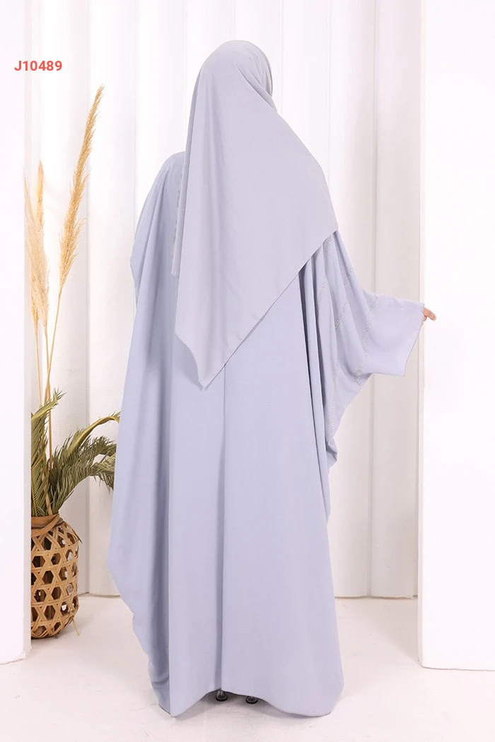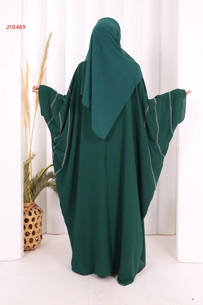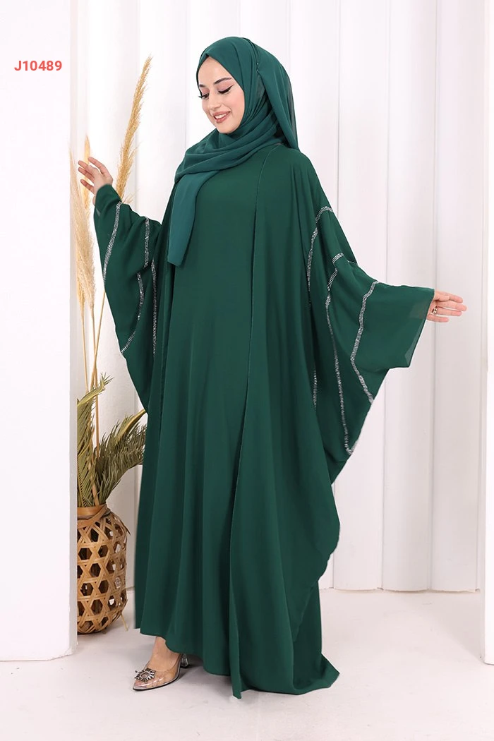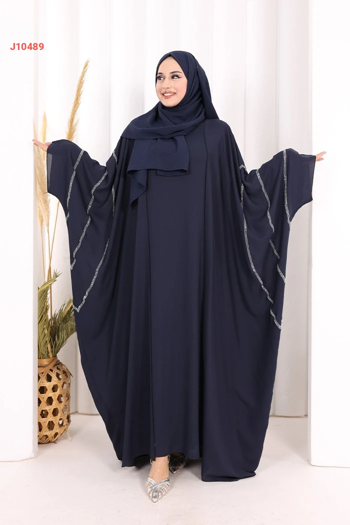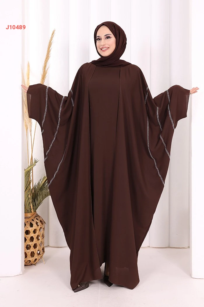 عباية قطعتين سادة واسعة موديل فراشة بأكمام مزين بالستراس