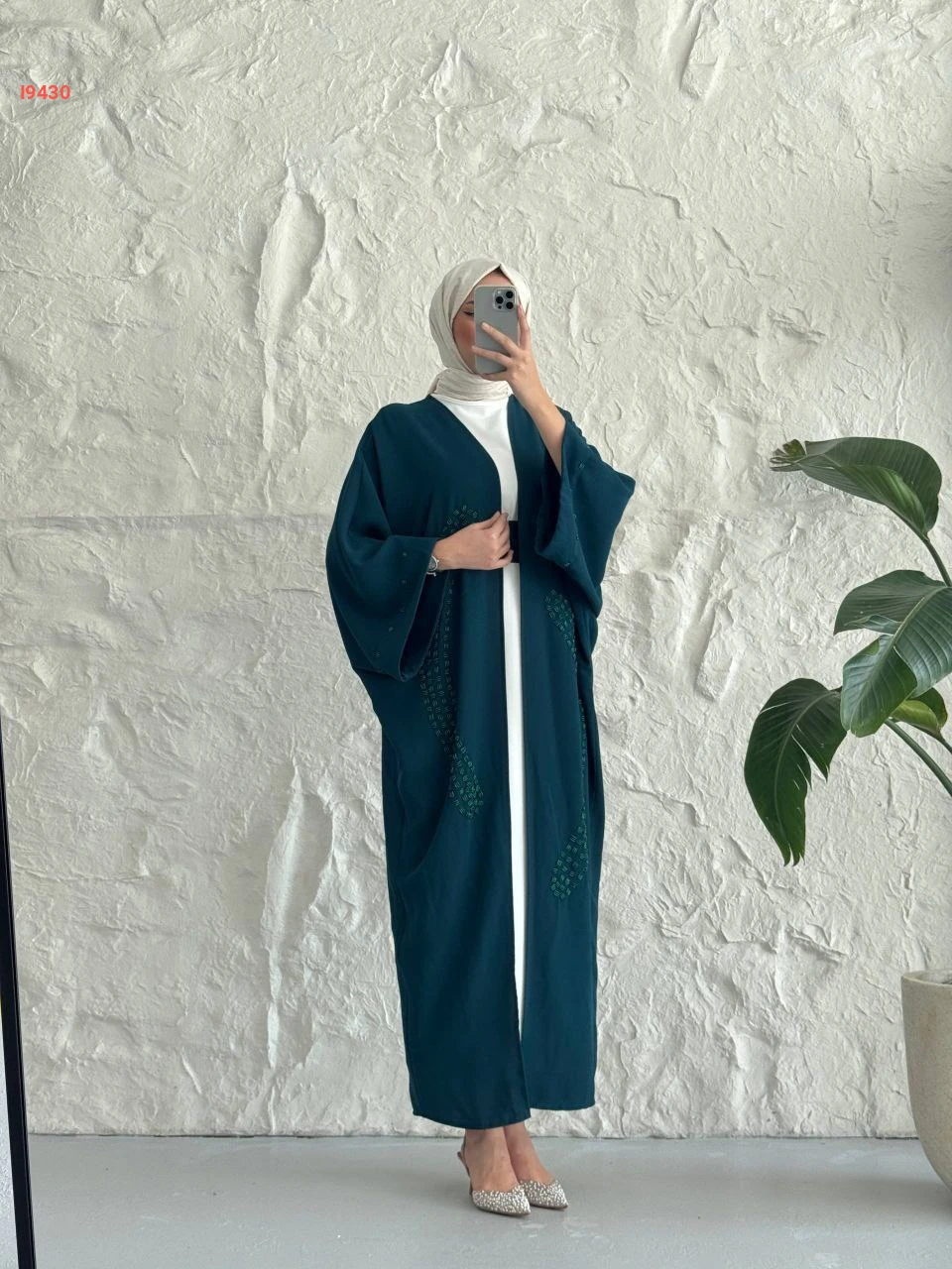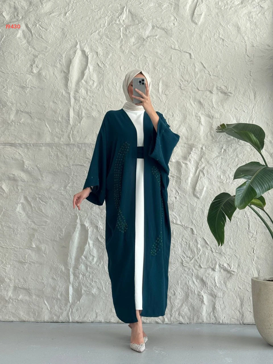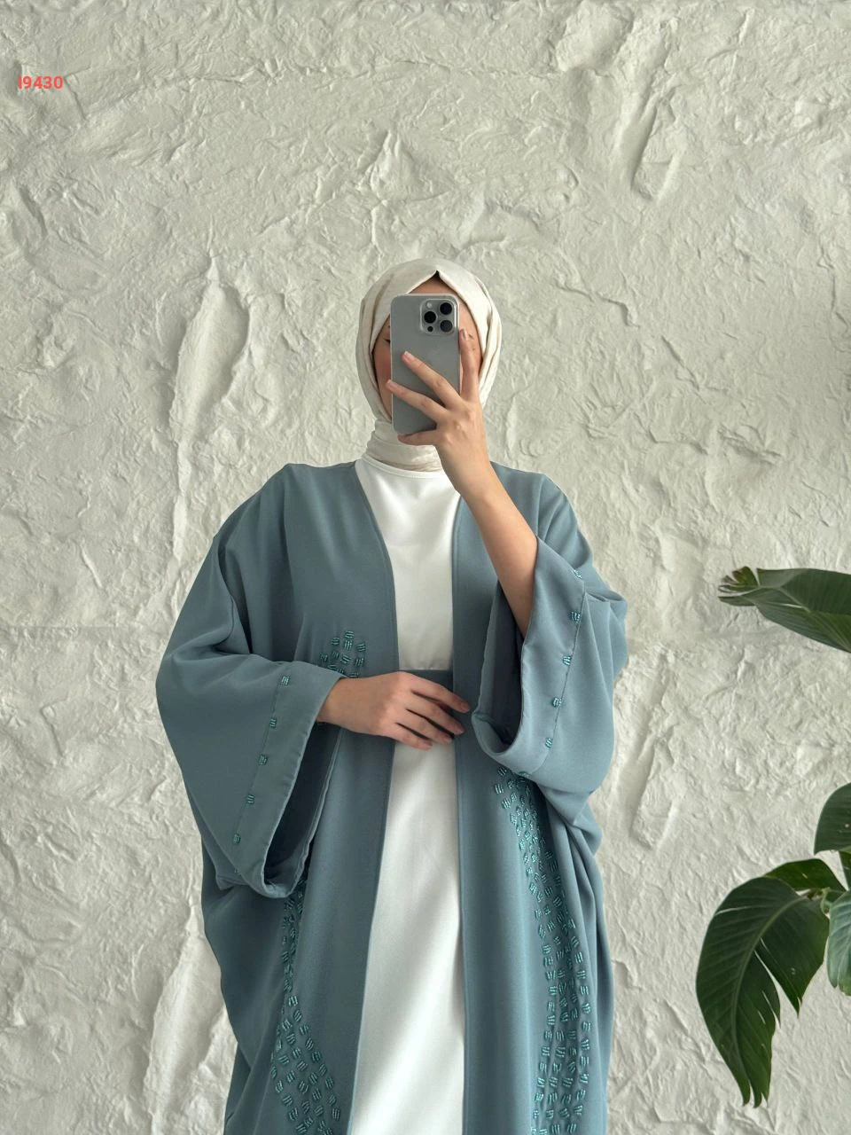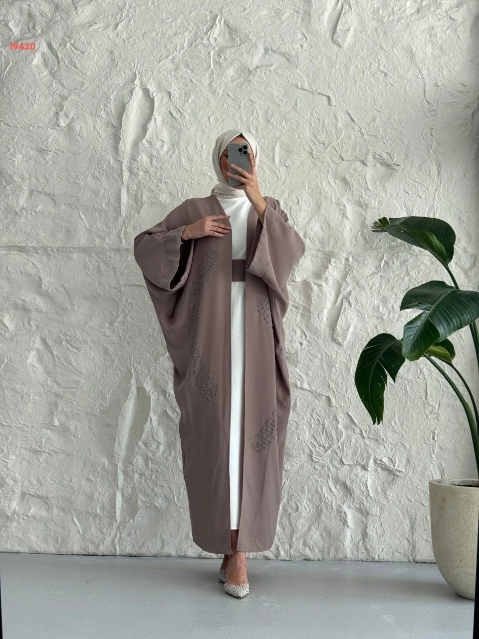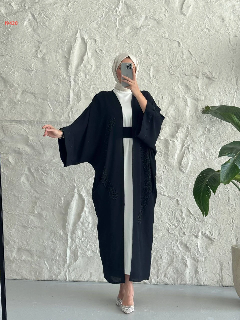 عباية قطعتين سادة بتطريز ناعم مع فستان وحزام