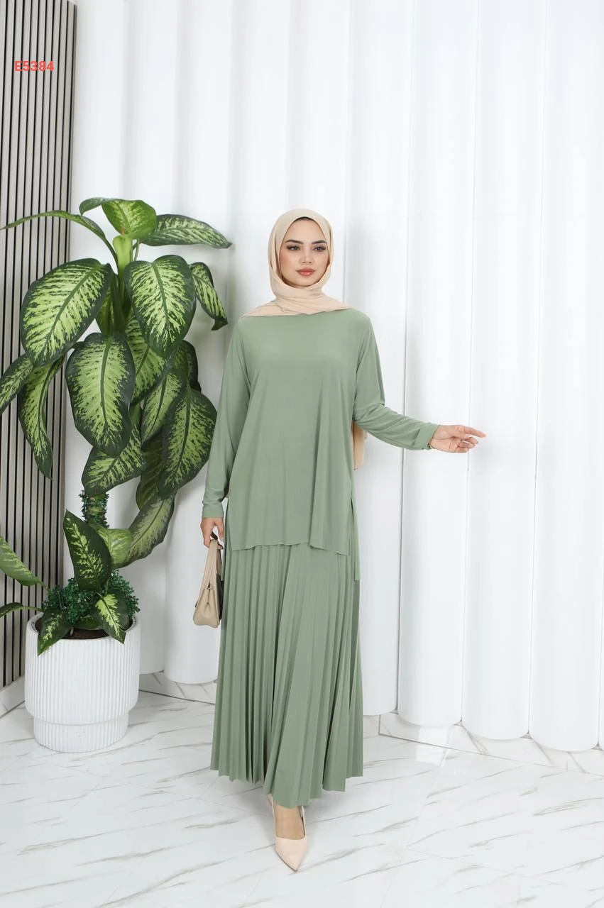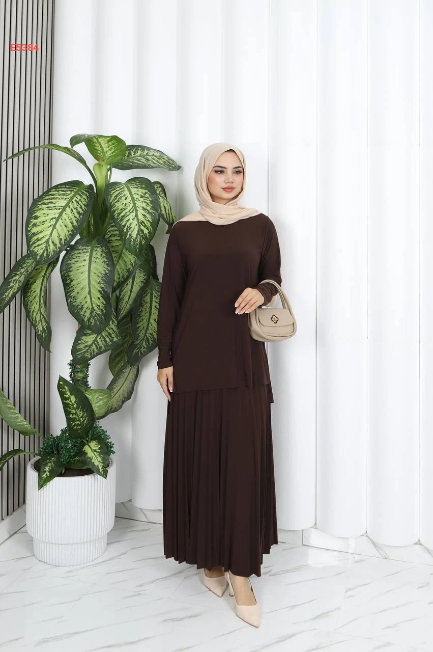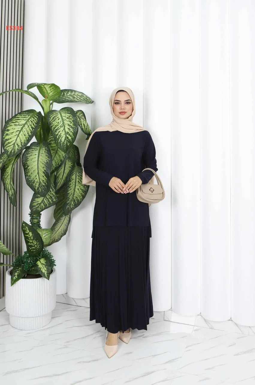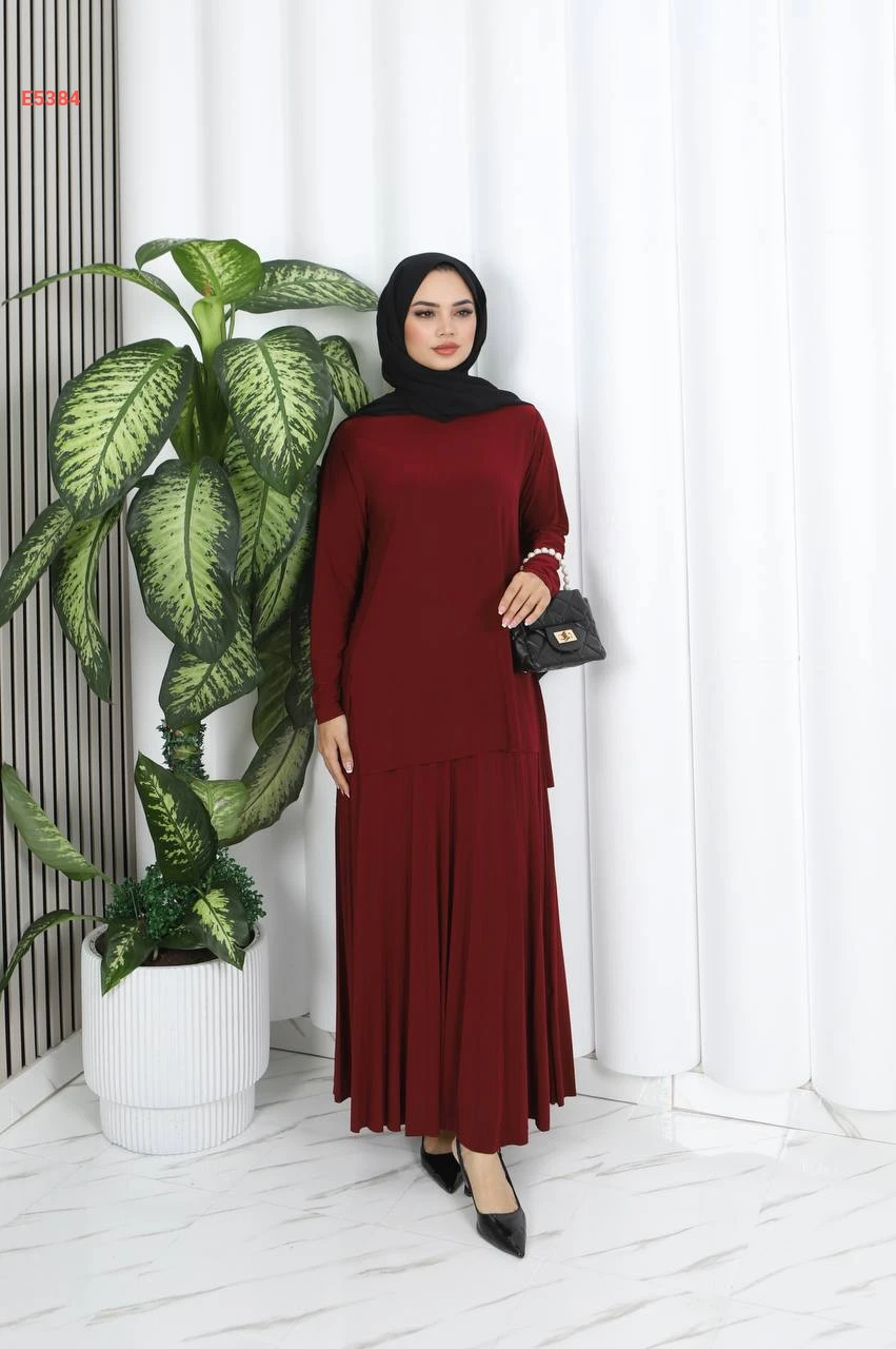 طقم تنورة قطعتين سادة