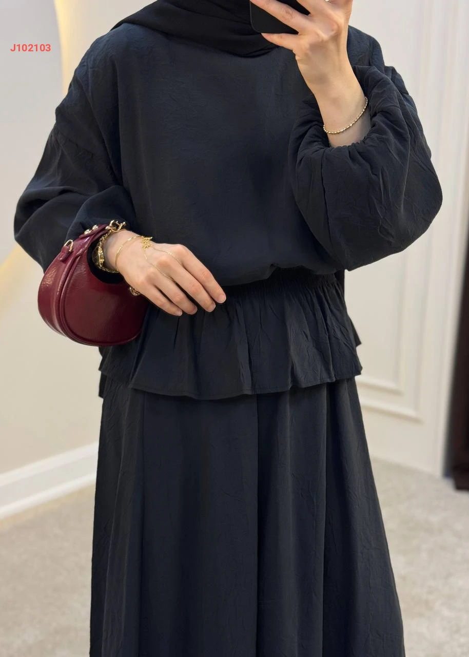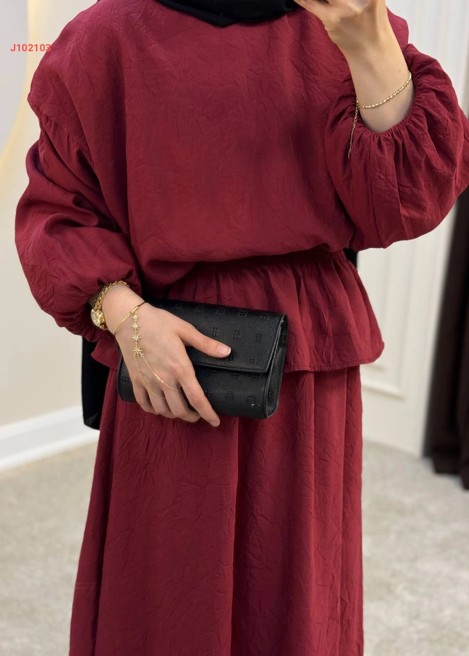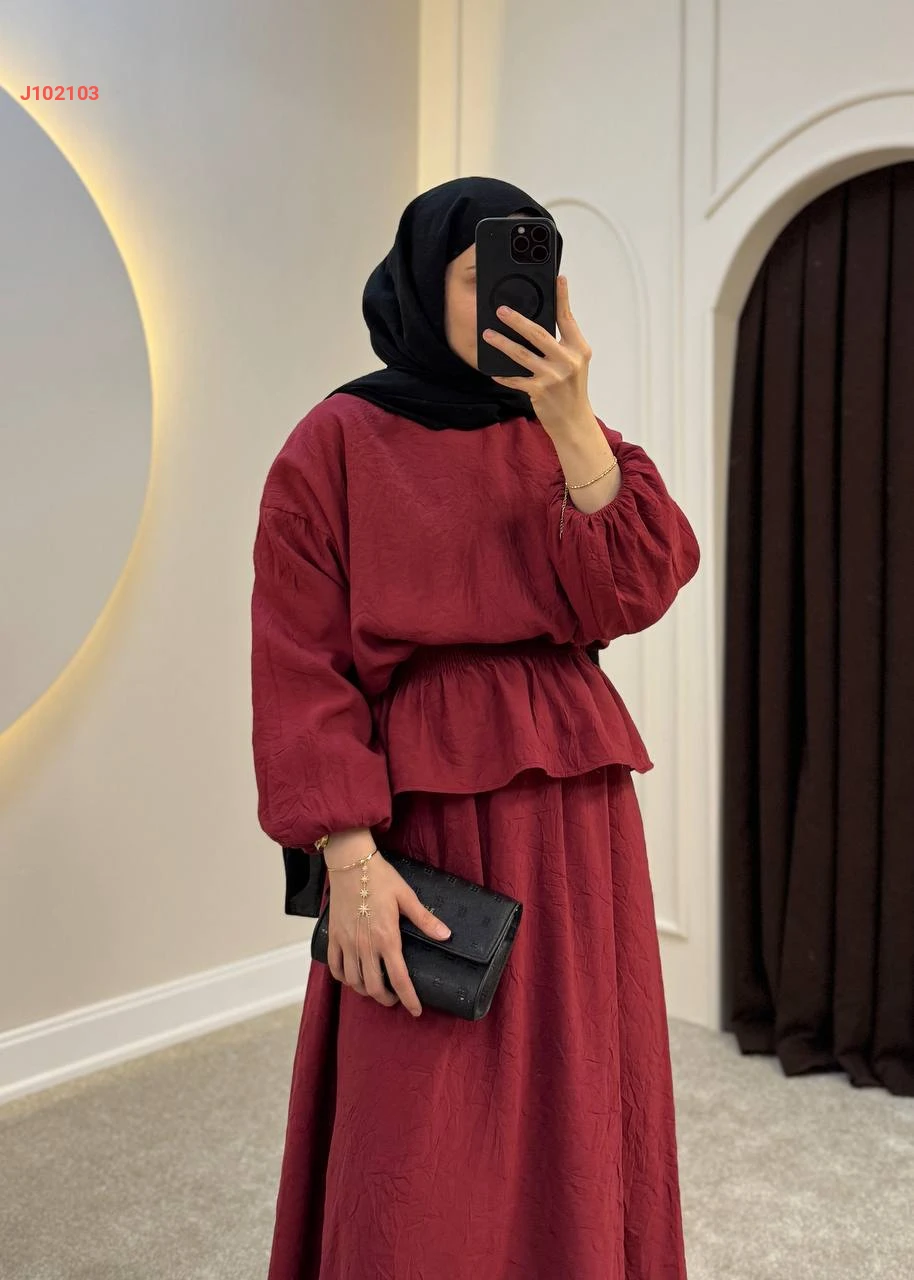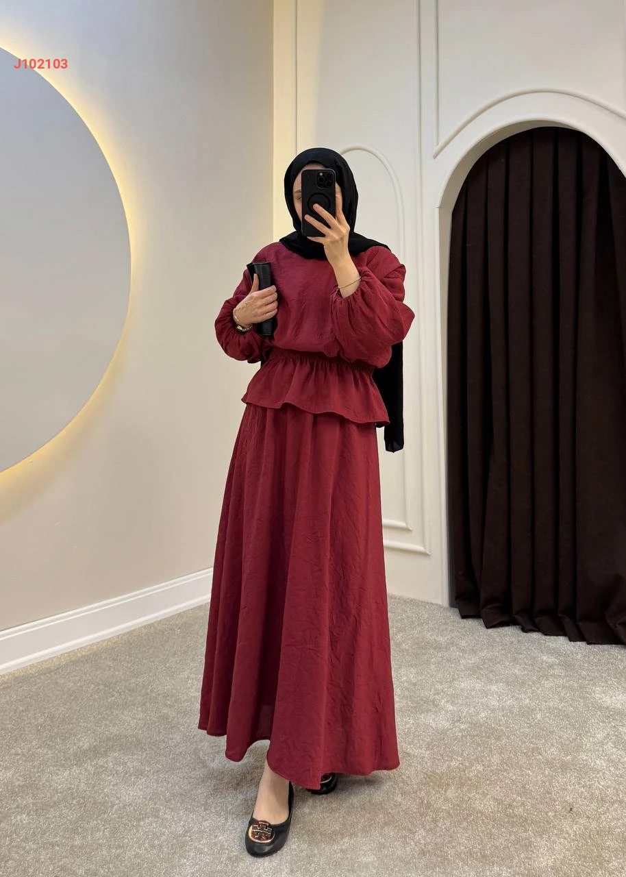 طقم تنورة سادة قطعتين بزمة عند الخصر
