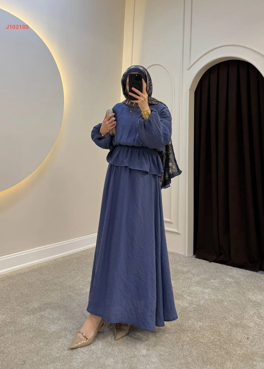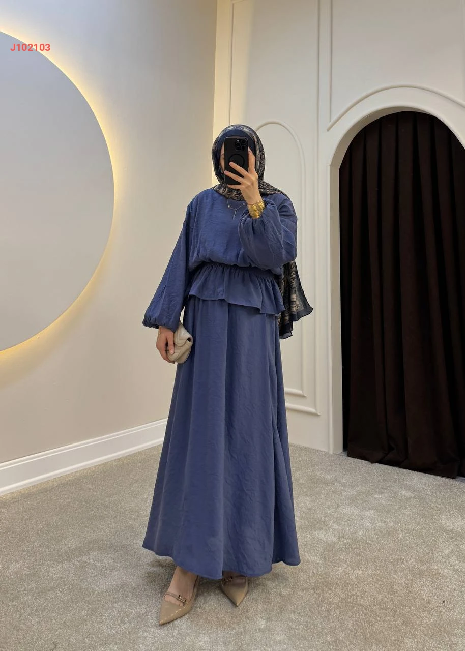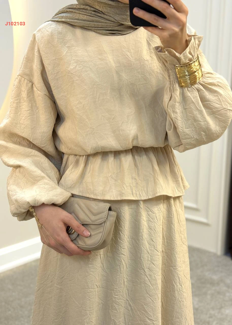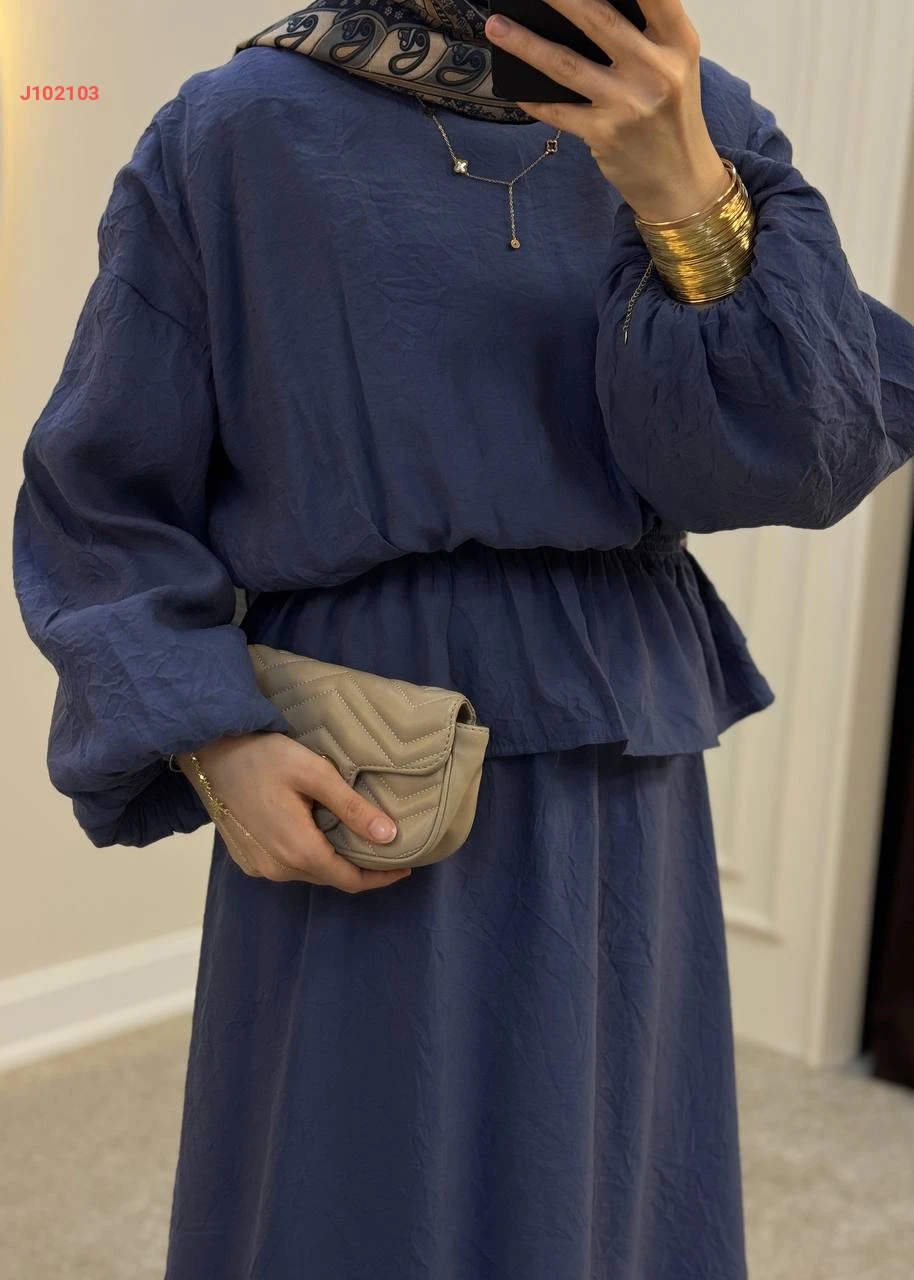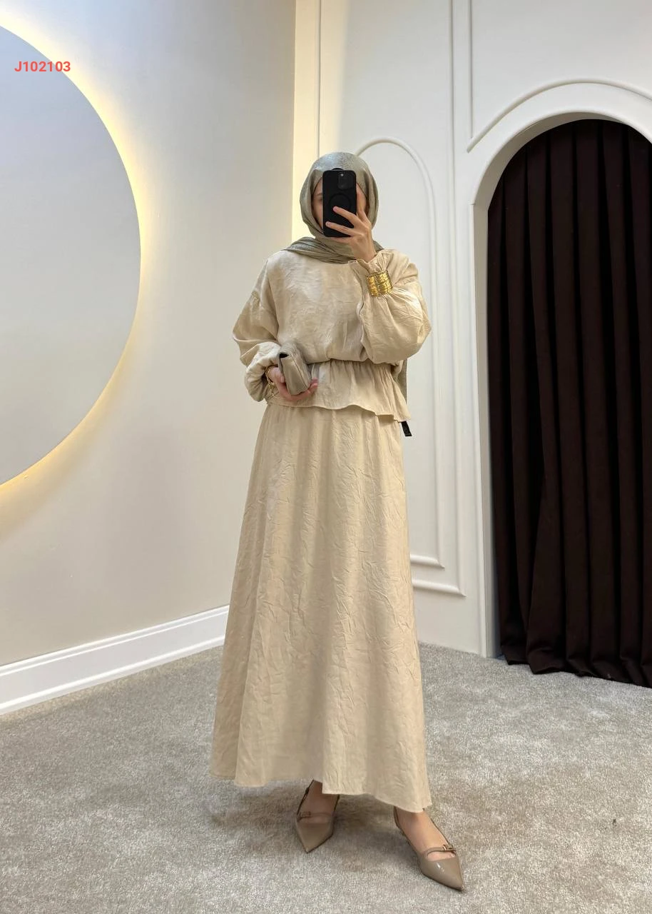 طقم تنورة سادة قطعتين بزمة عند الخصر