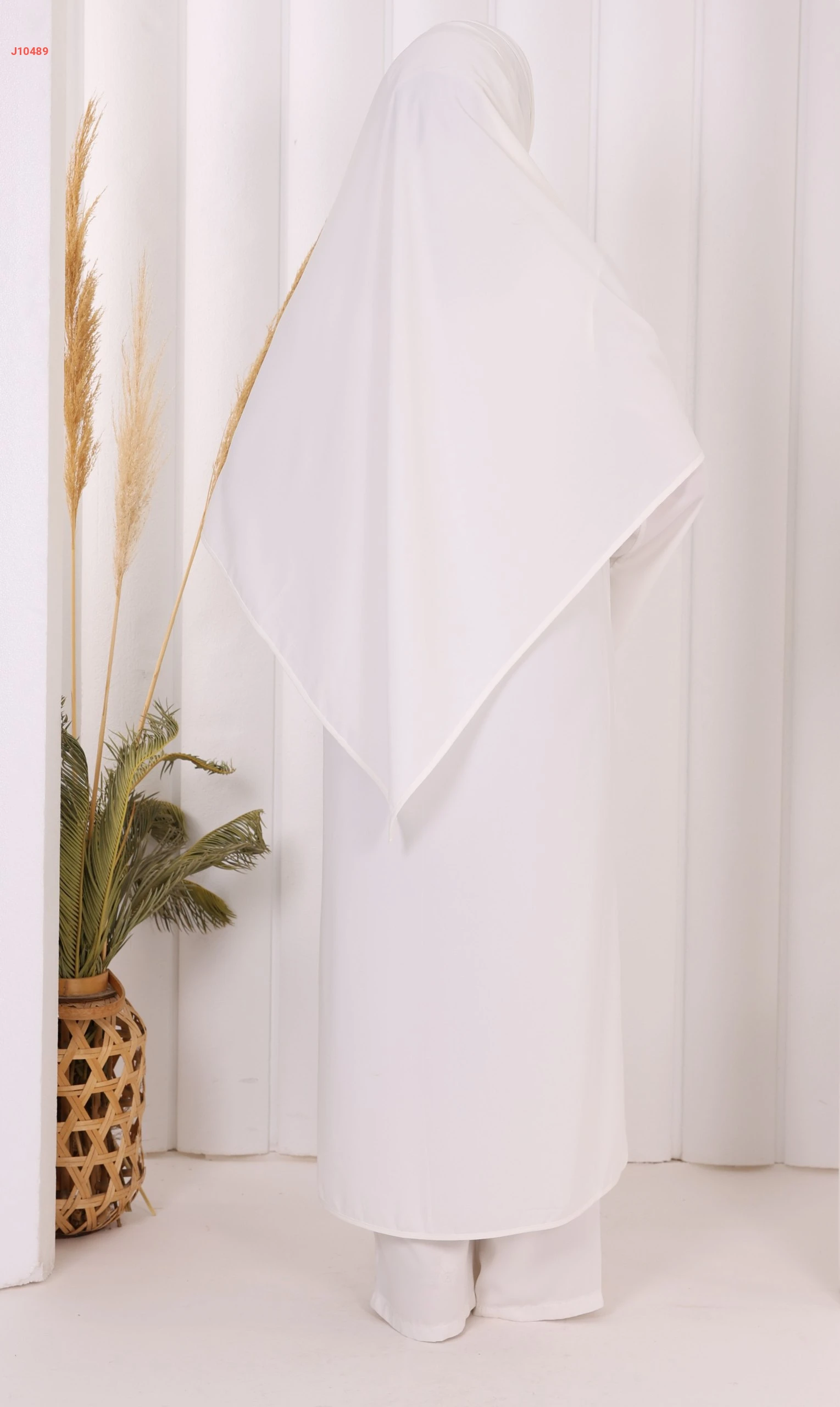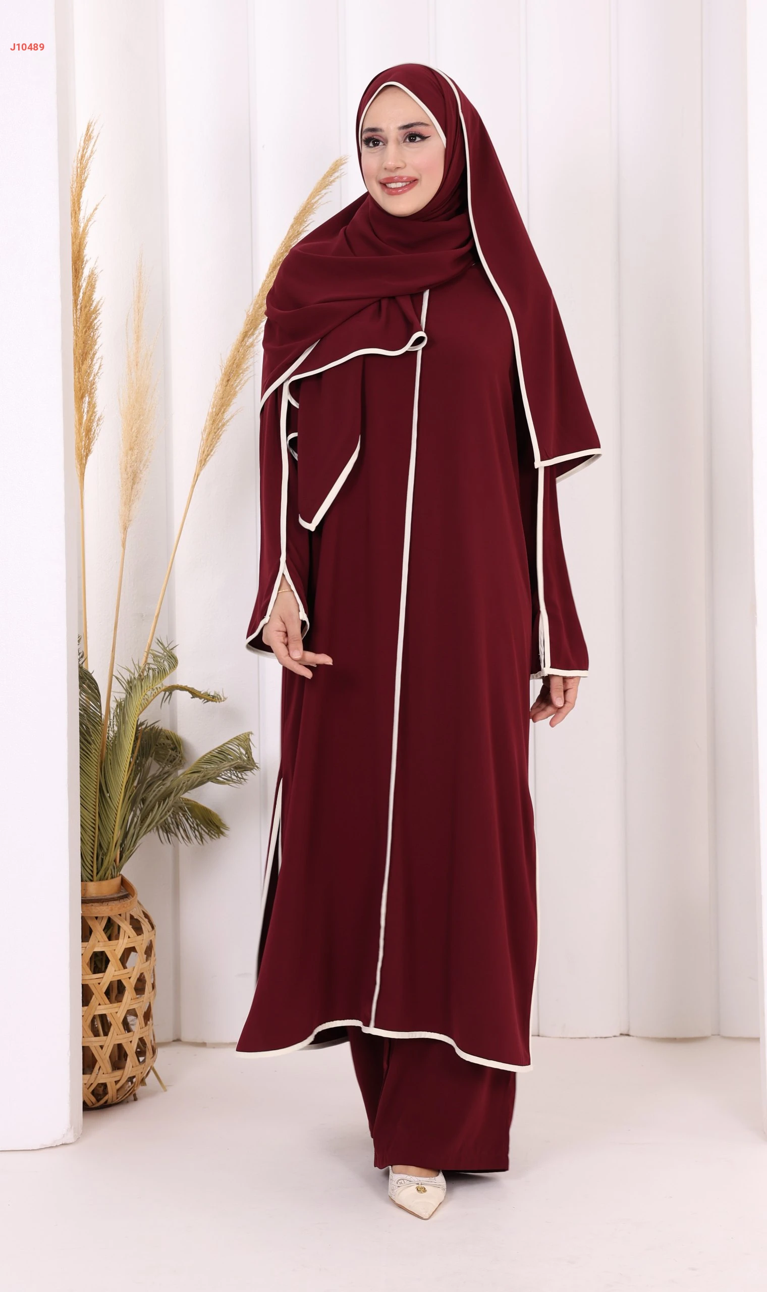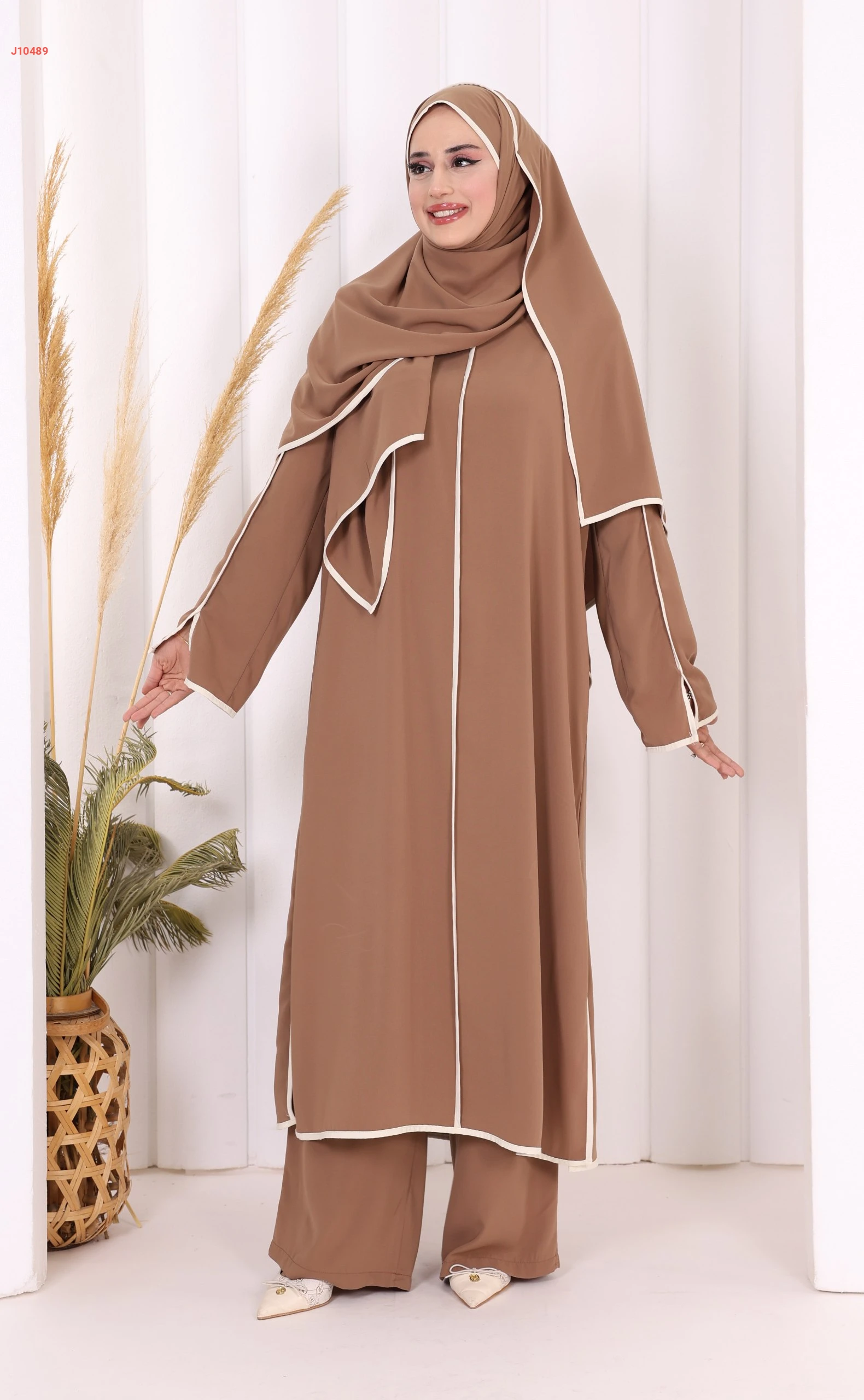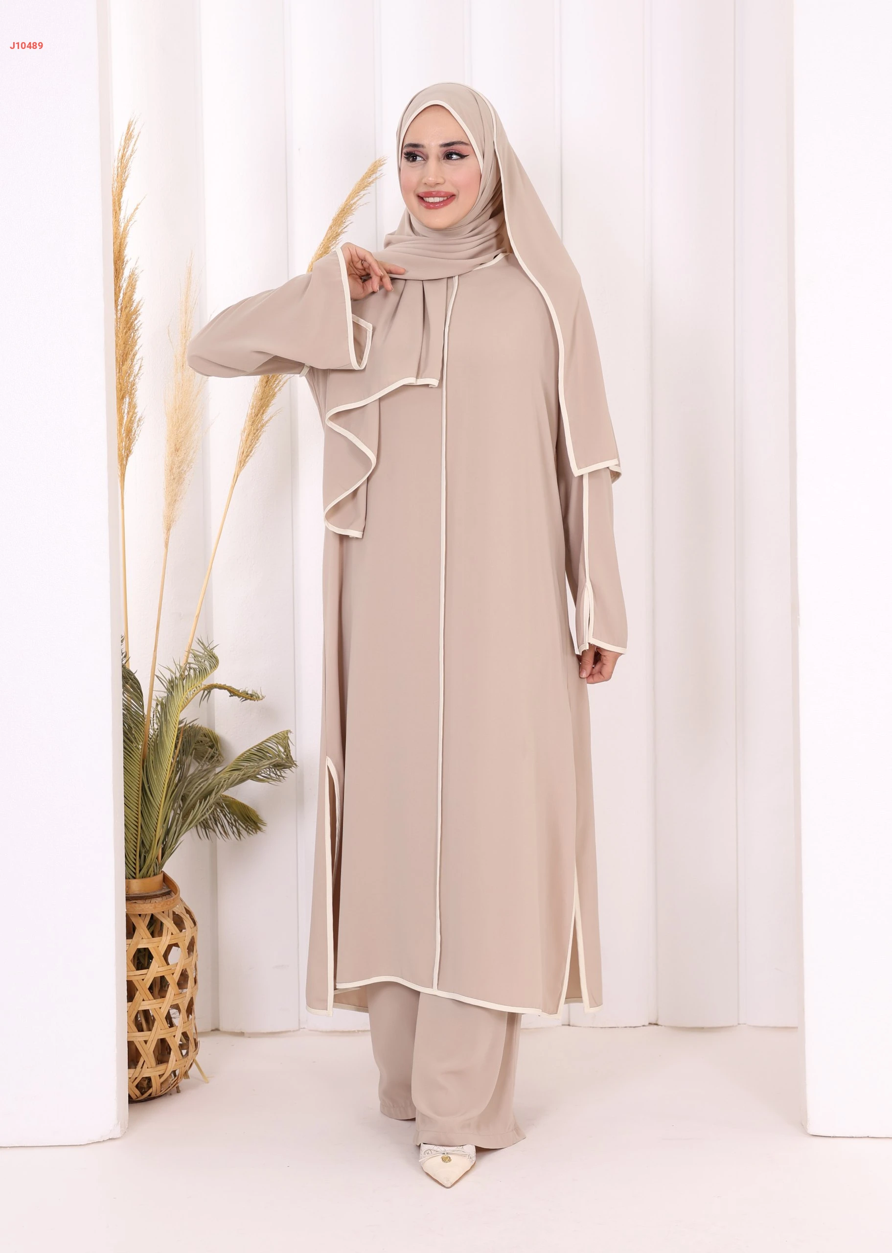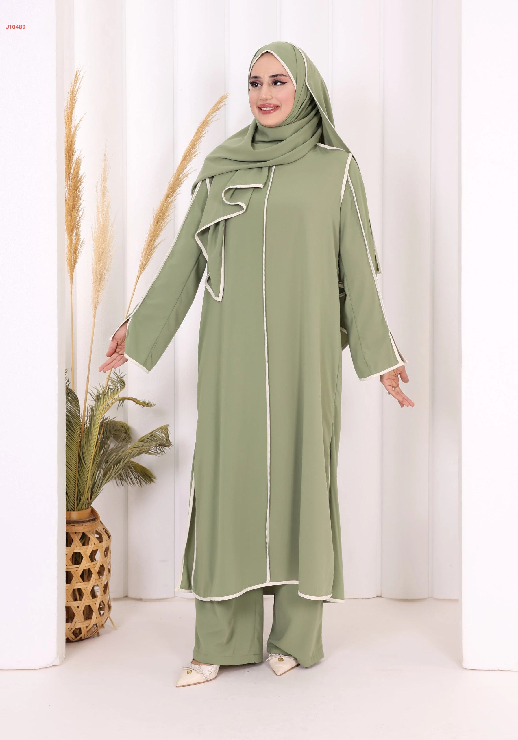 طقم تونيك قطعتين سادة بياقة دائرية مع شال