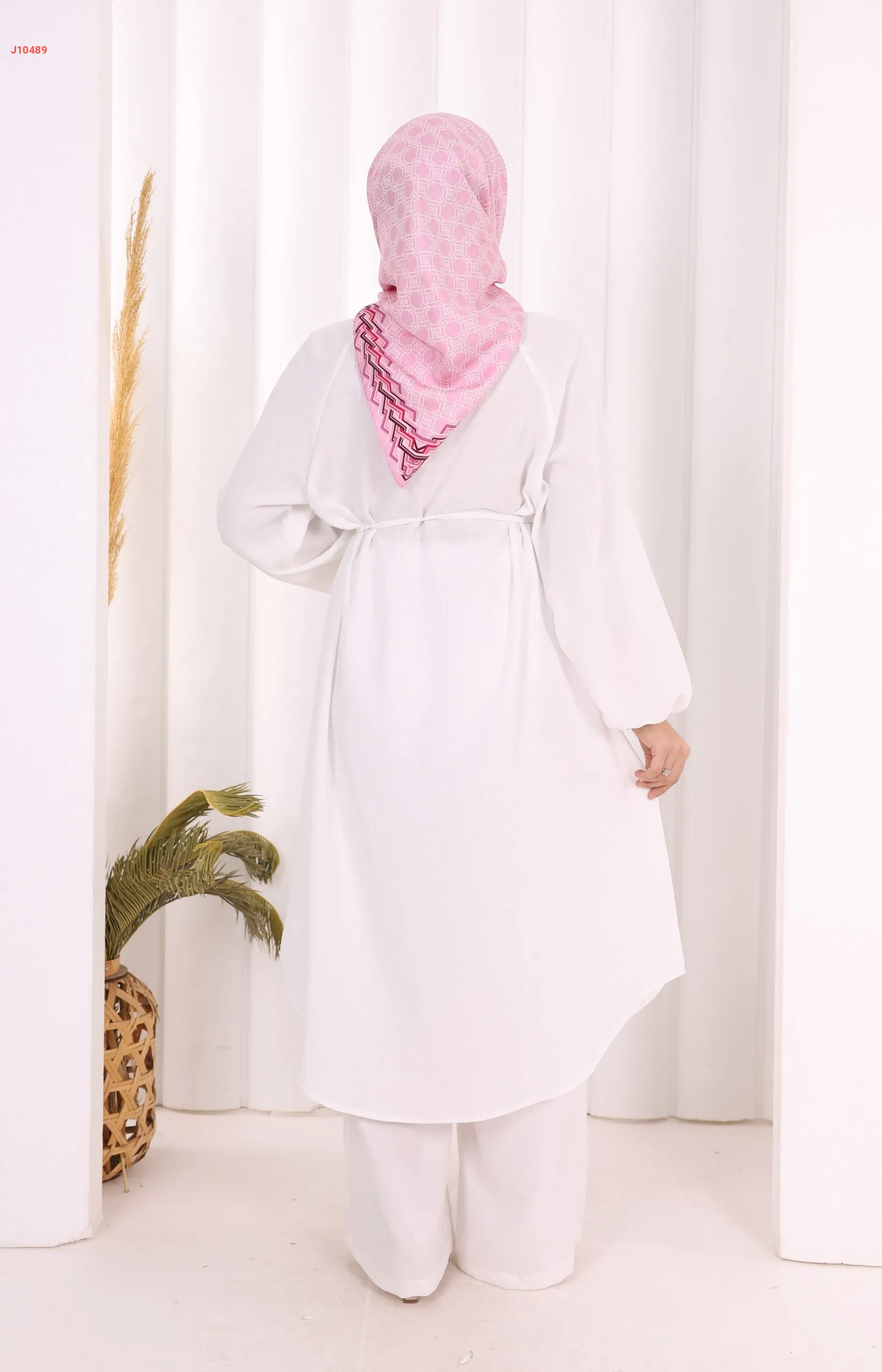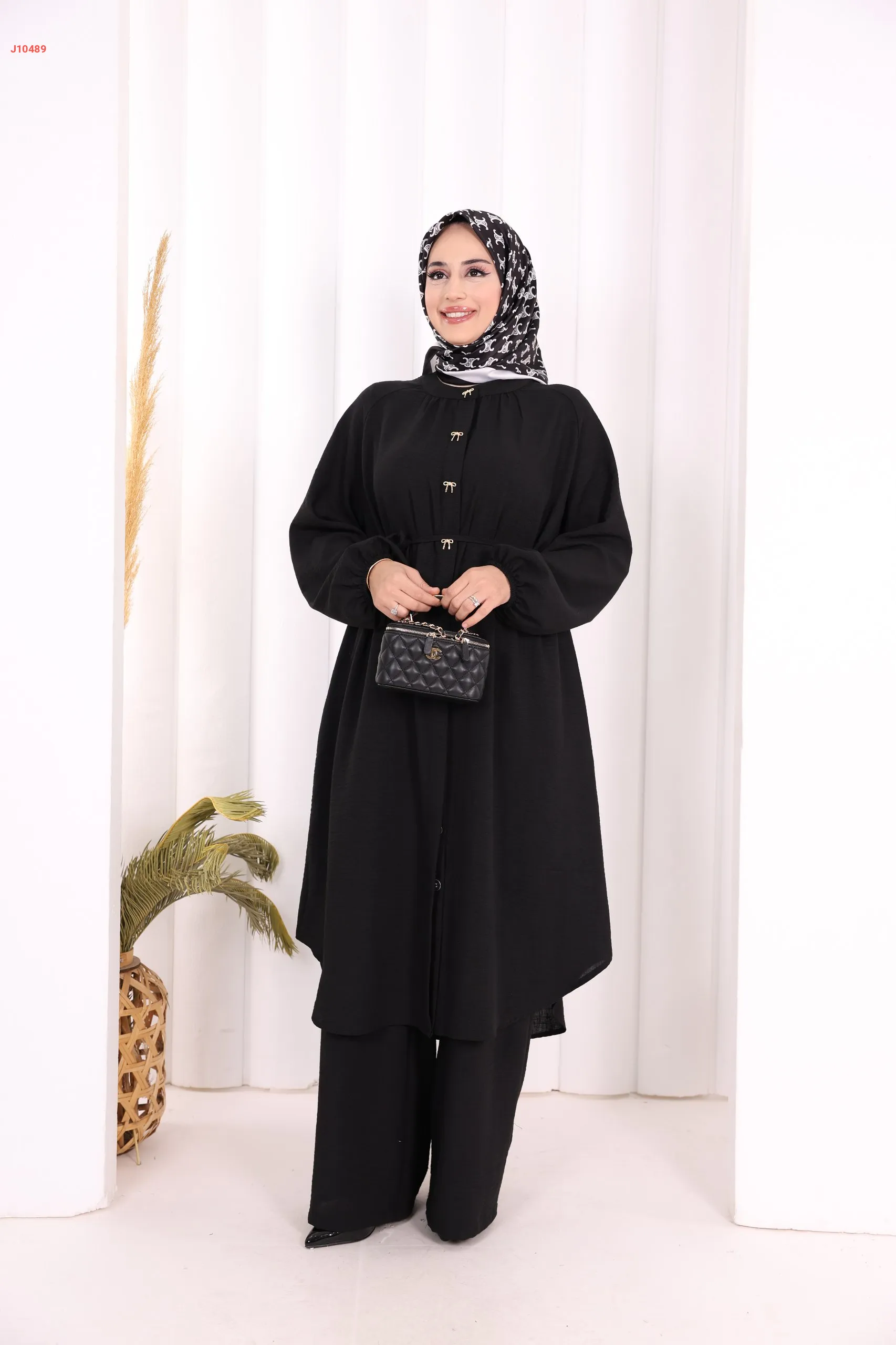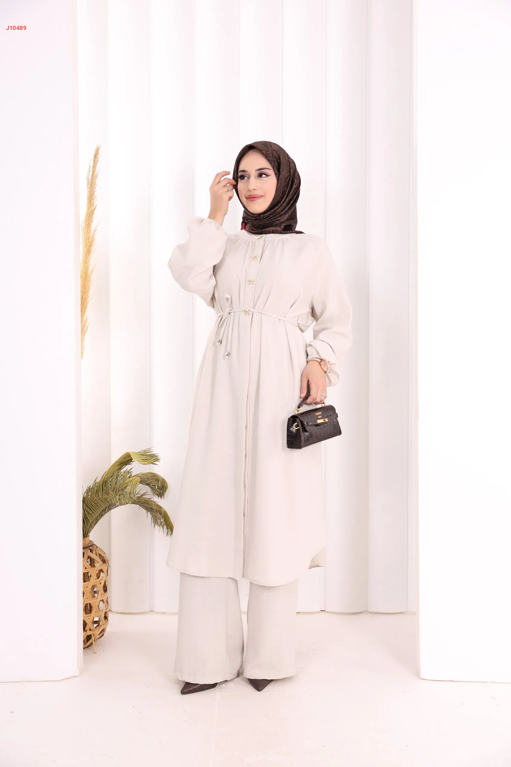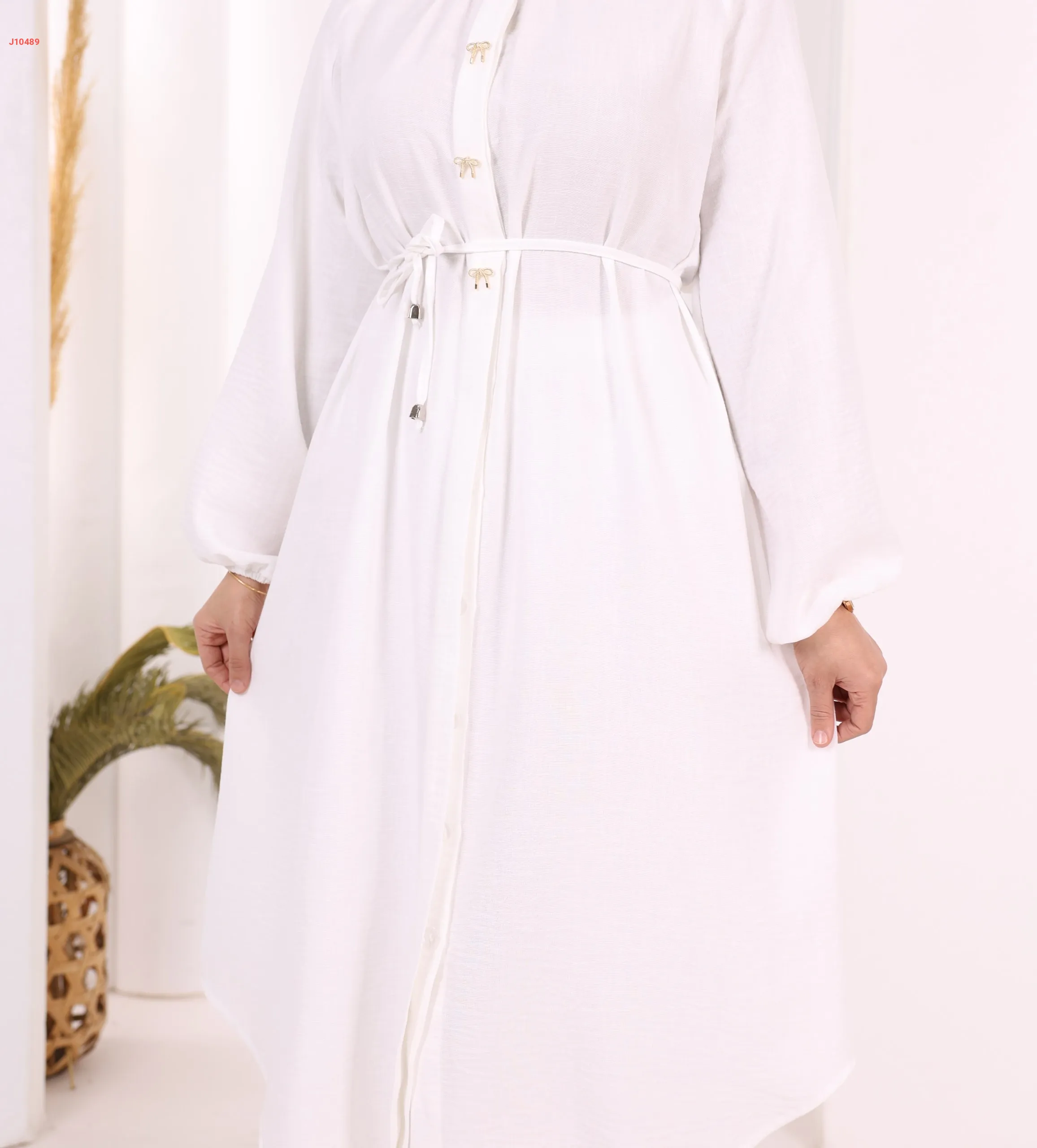 طقم تونيك قطعتين سادة بأزرار مخفية مع ربطة خصر