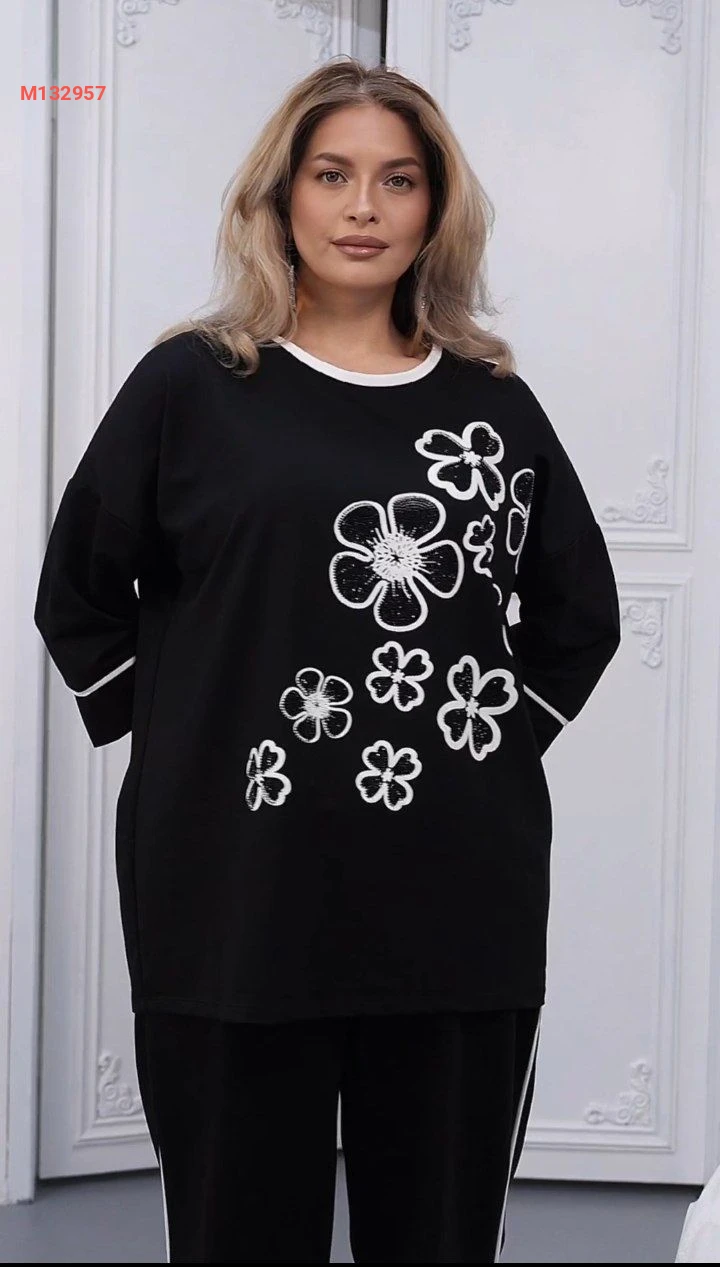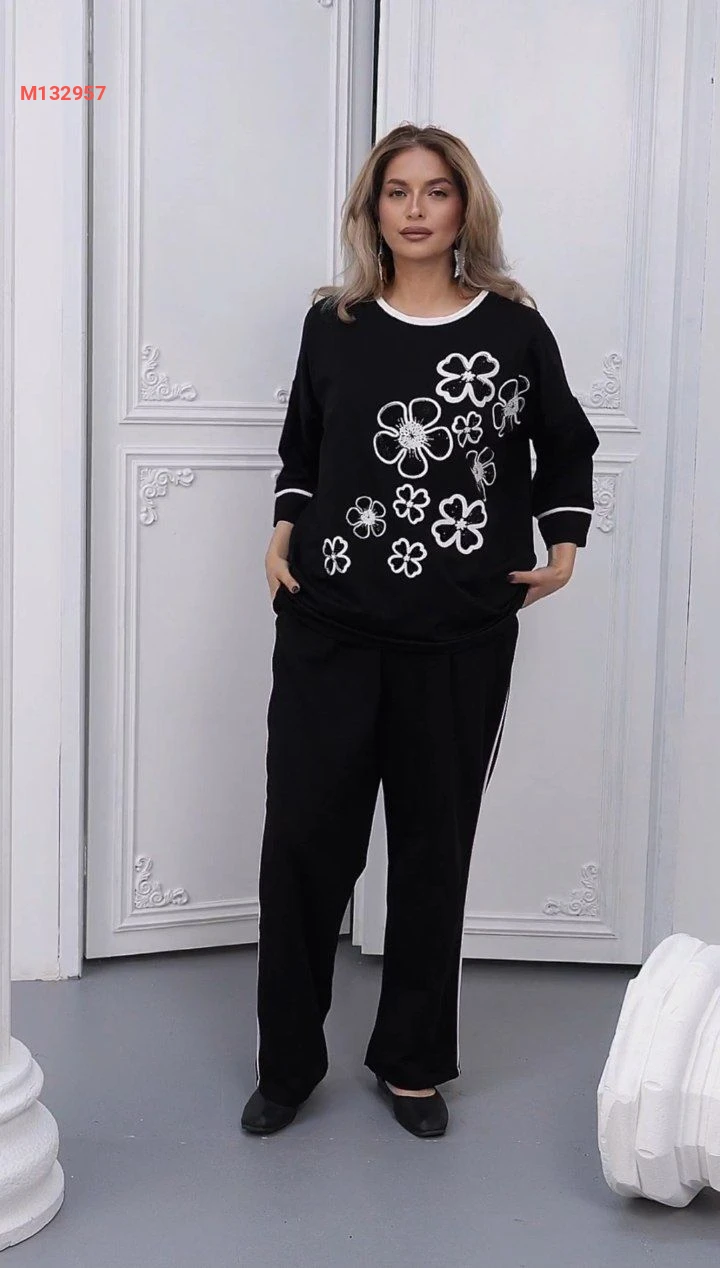 طقم قطعتين مورد بالخيط الابيض