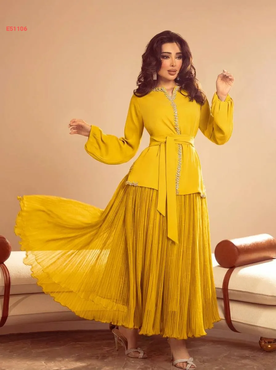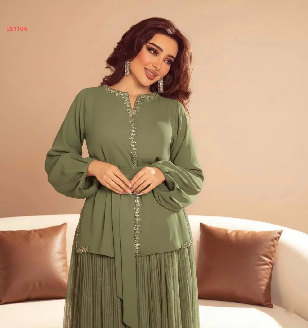 طقم قطعتين تنورة مع جاكيت مزين بالكريستال ، مع ربطة خصر