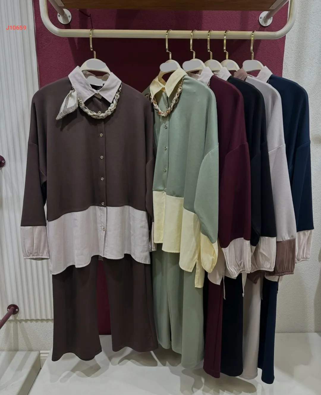 طقم قطعتين بأزرار ، بقبة قميص مع فولار