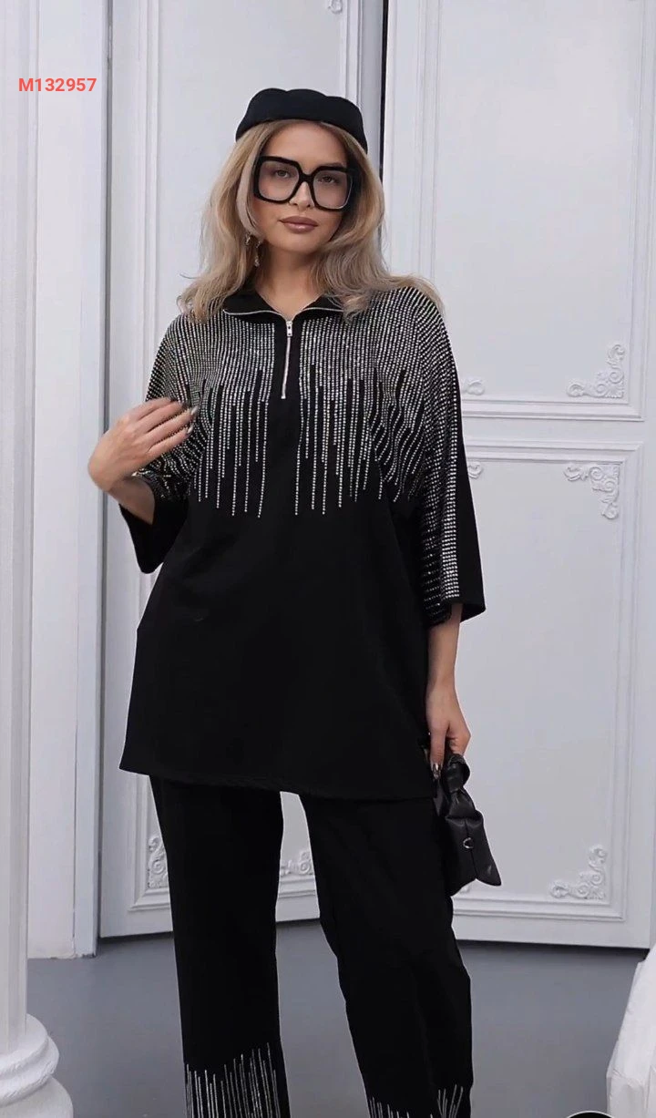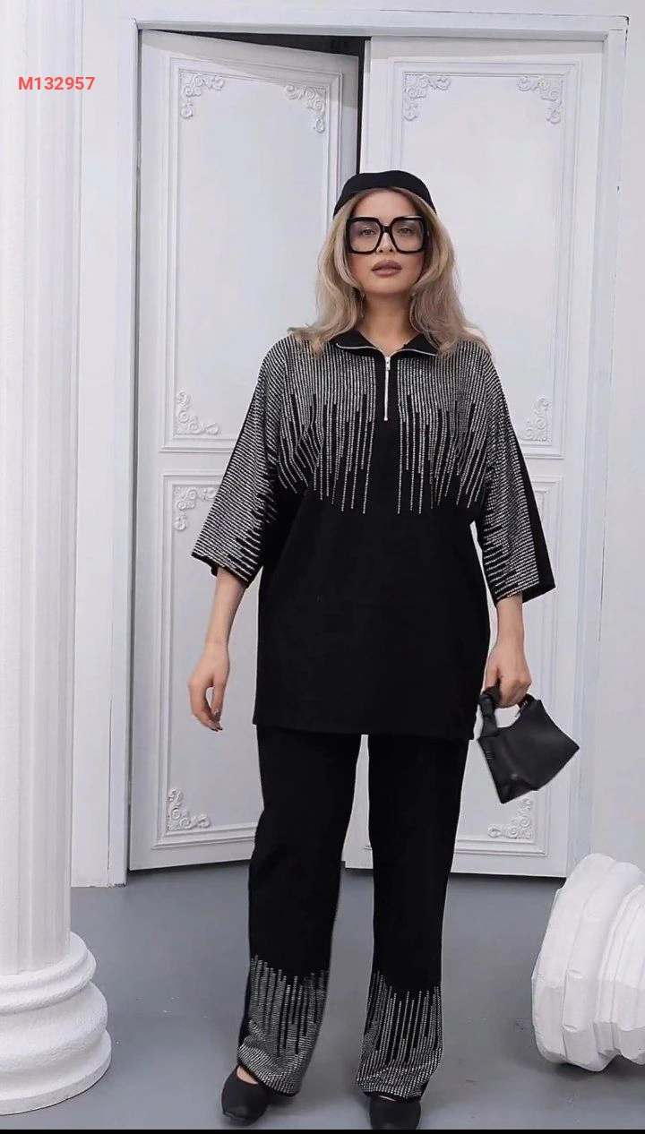 طقم قطعتين سحاب نصفي بستراس