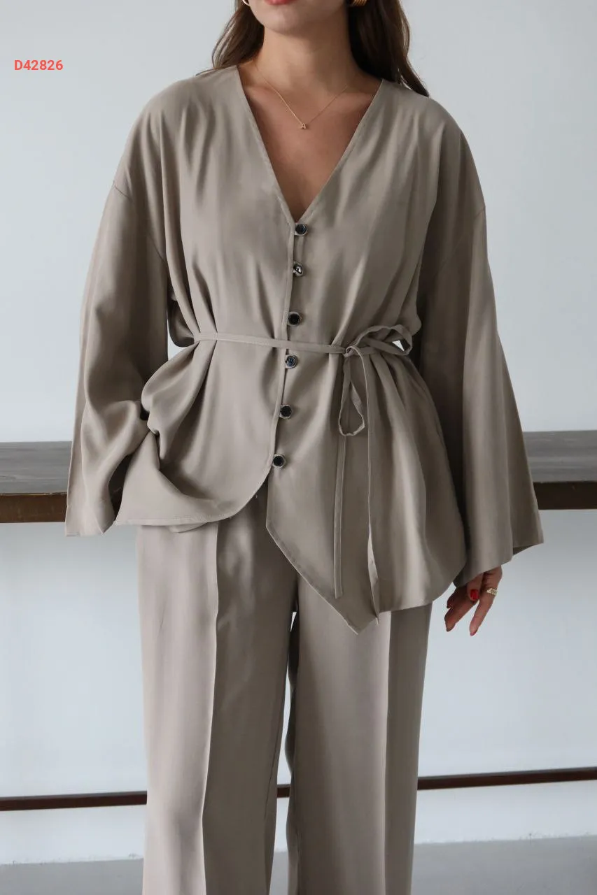 طقم قطعتين بأزرار ، مع ربطة خصر