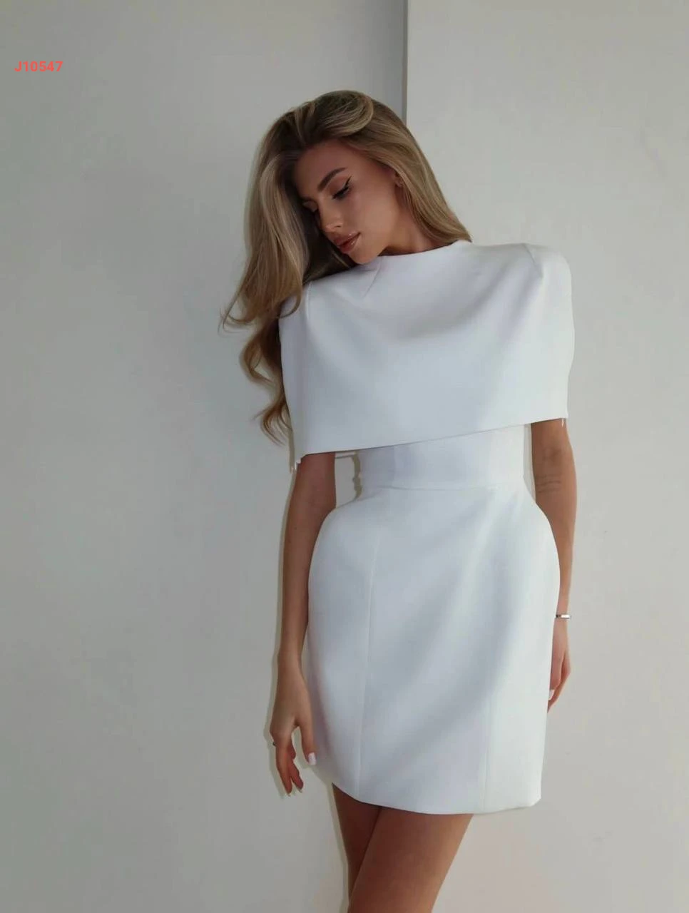 فستان قصير قطعتين بتفاصيل كاب كتف