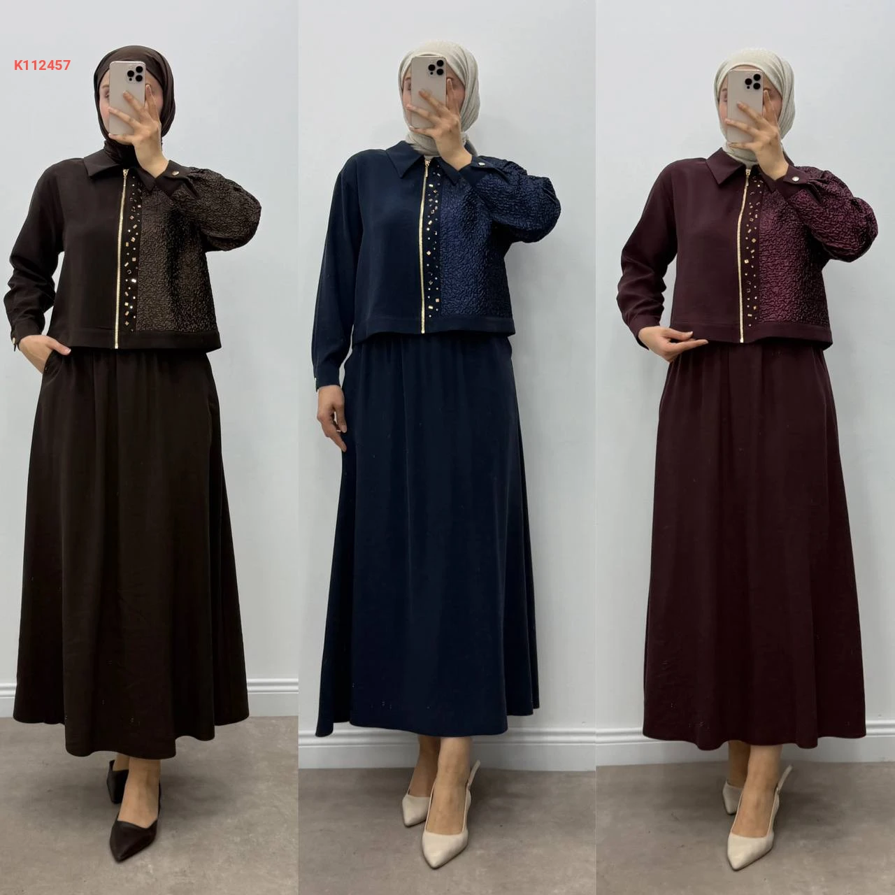 طقم تنورة قطعتين بسحاب مزين بالأحجار