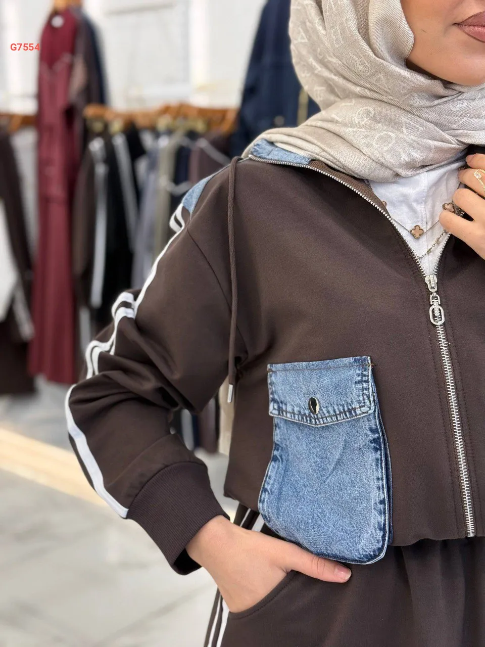 طقم تنورة قطعتين بسحاب مع جيب جينز