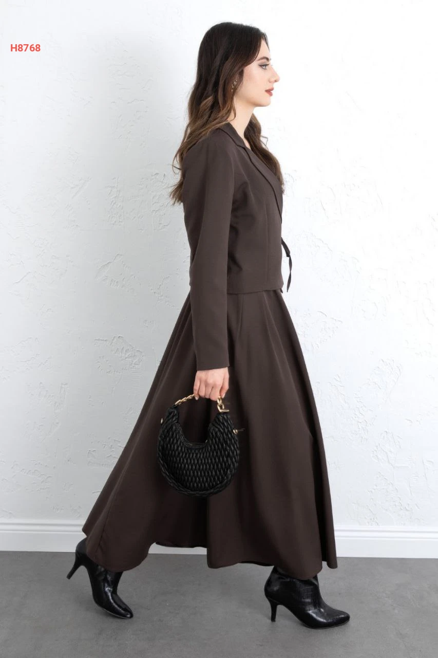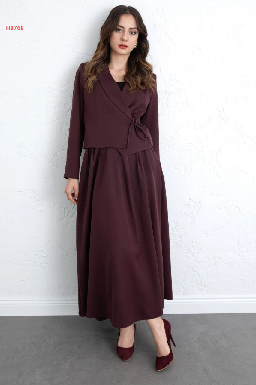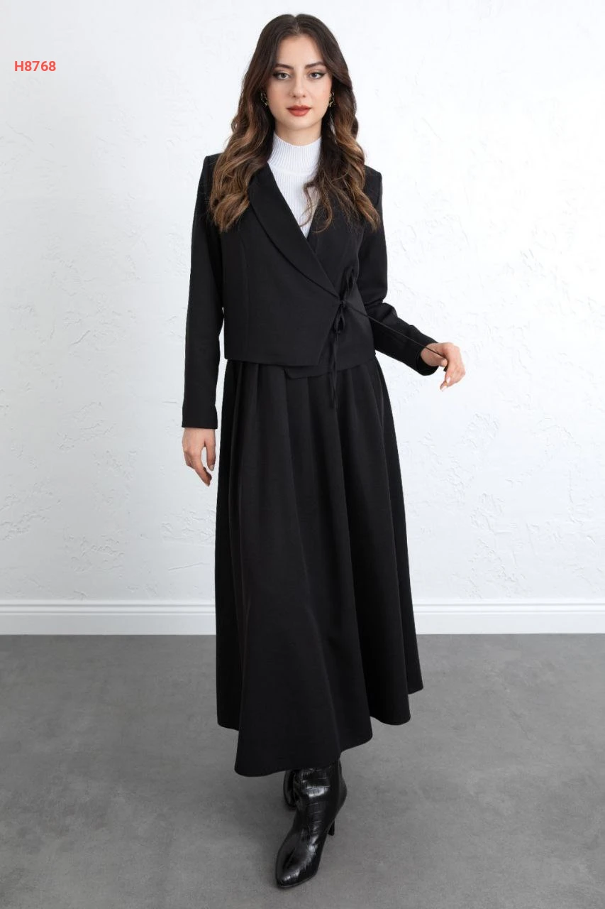طقم تنورة قطعتين سادة برابطة خصر جانبية