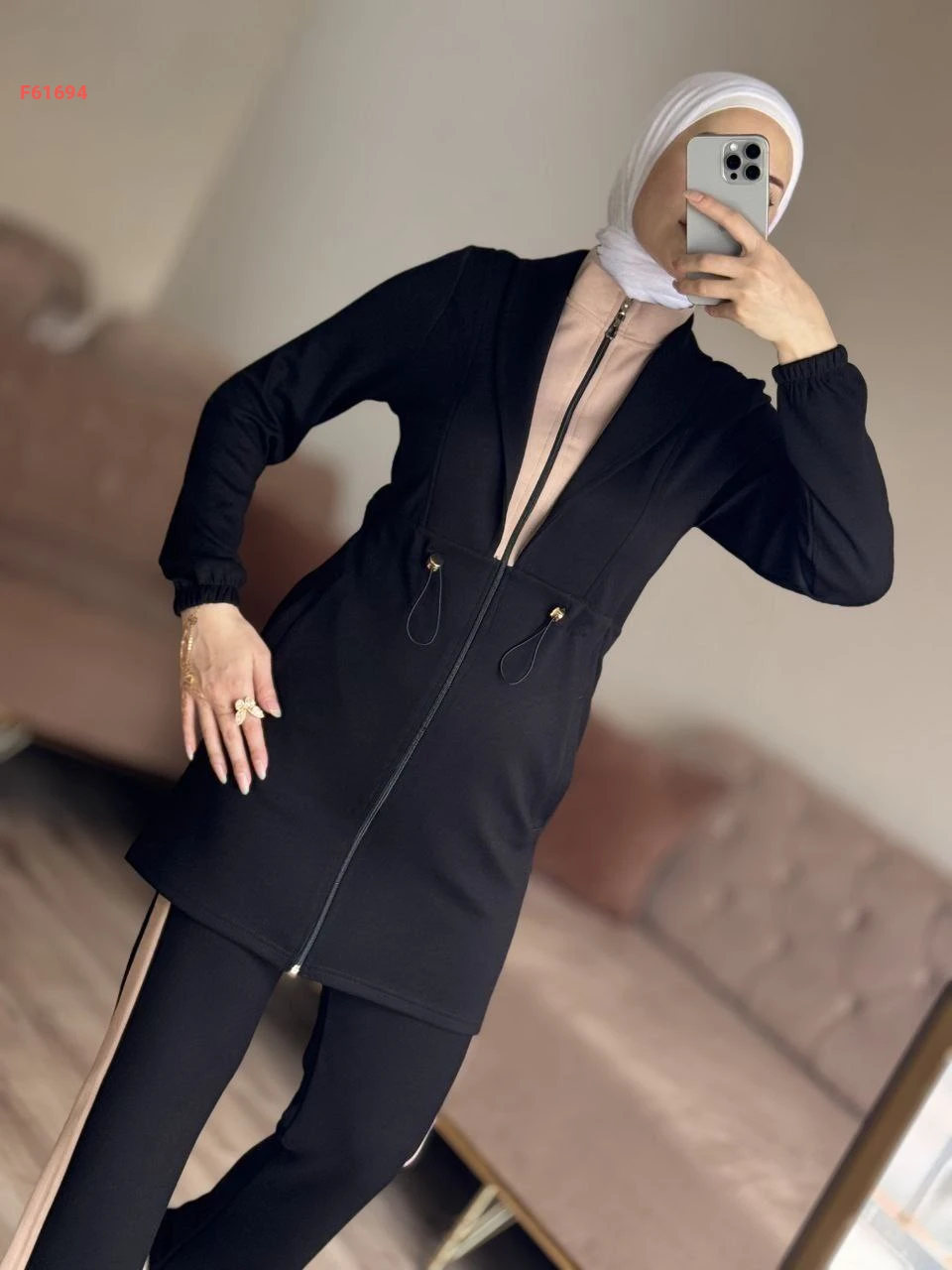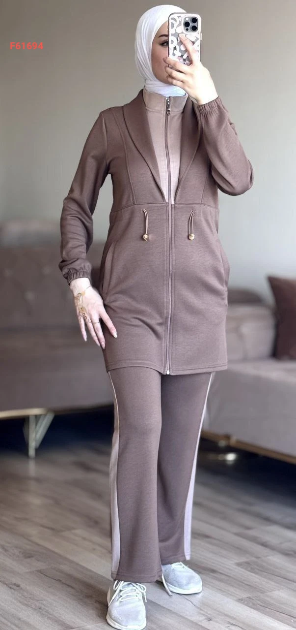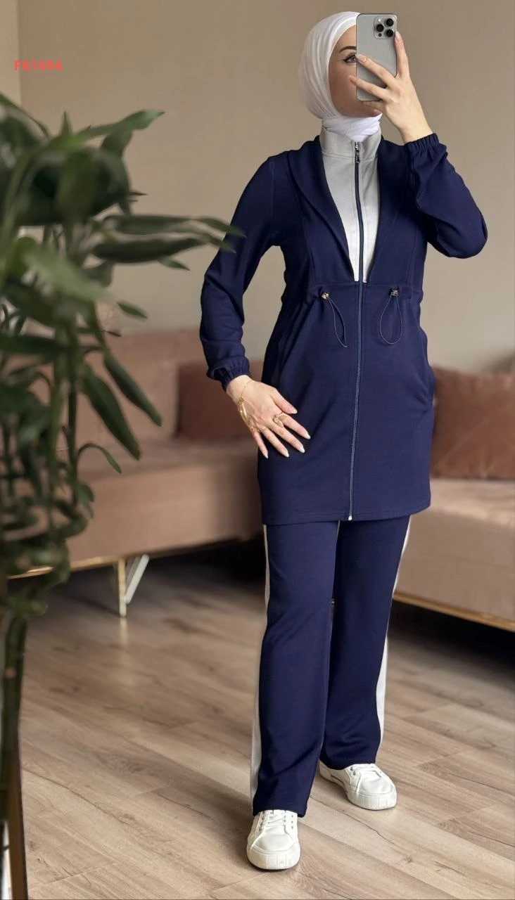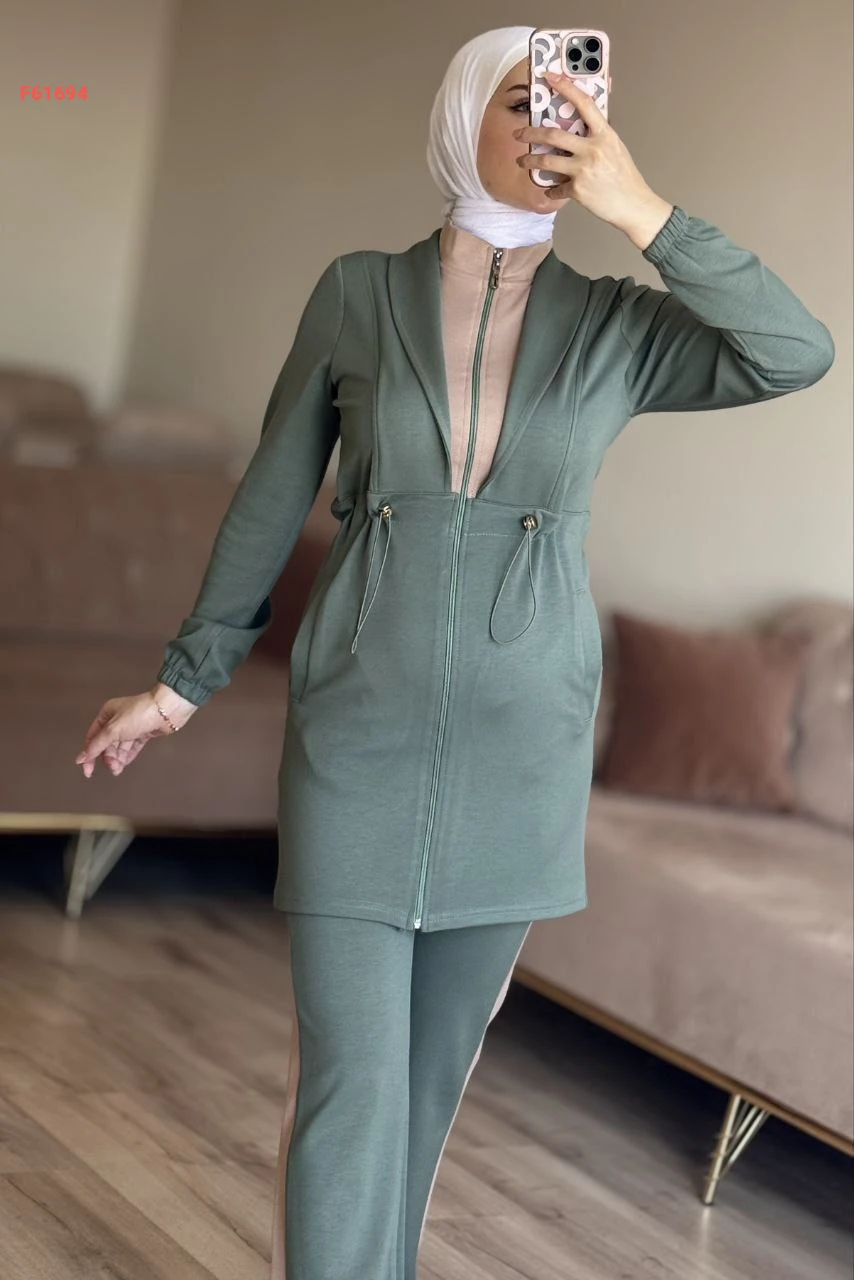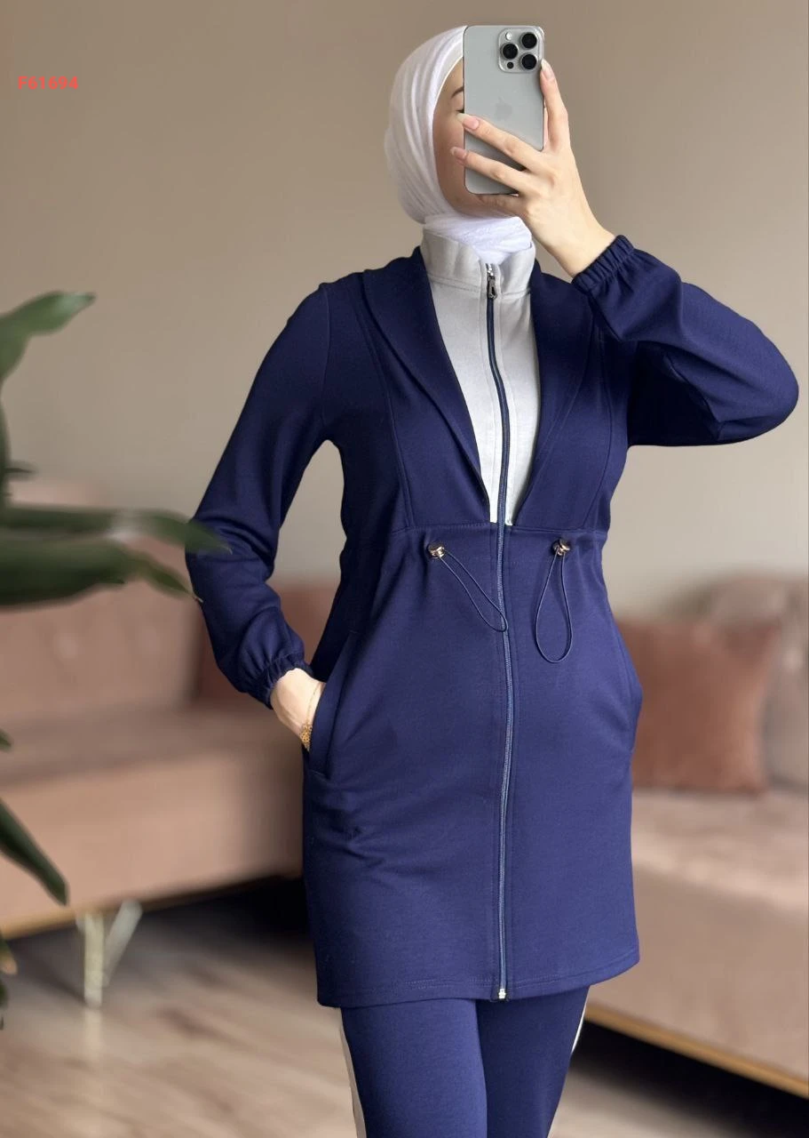 بيجامة قطعتين بسحاب مع زمة خصر وجيب