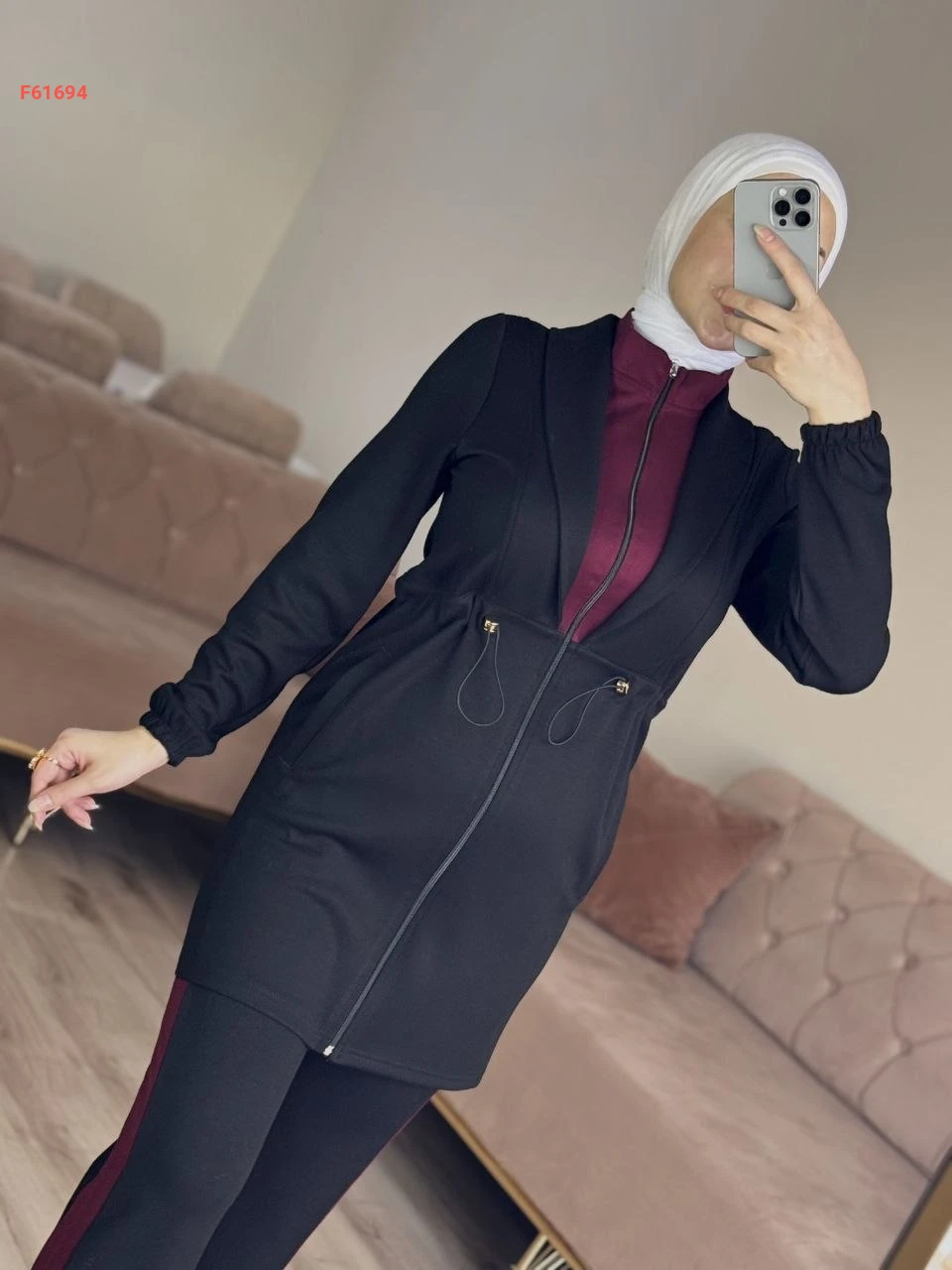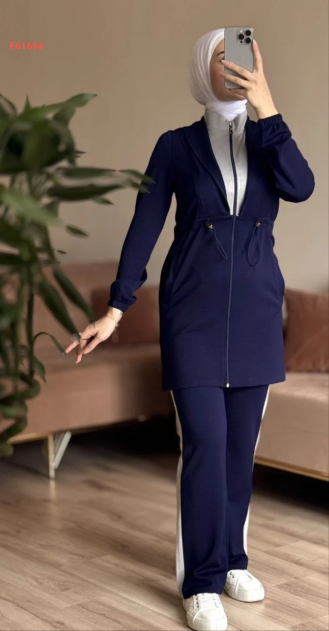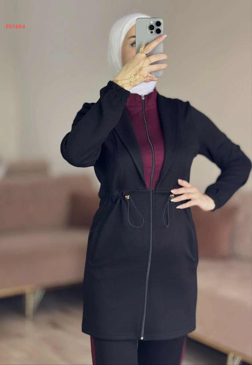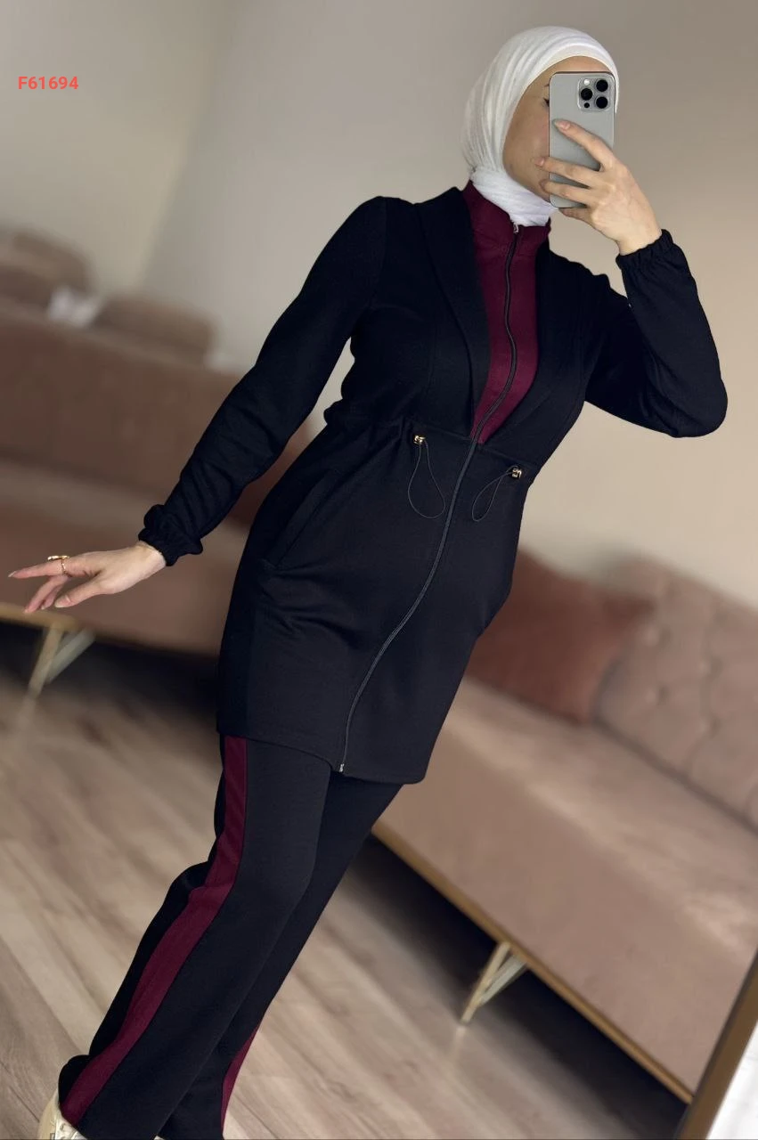 بيجامة قطعتين بسحاب مع زمة خصر وجيب