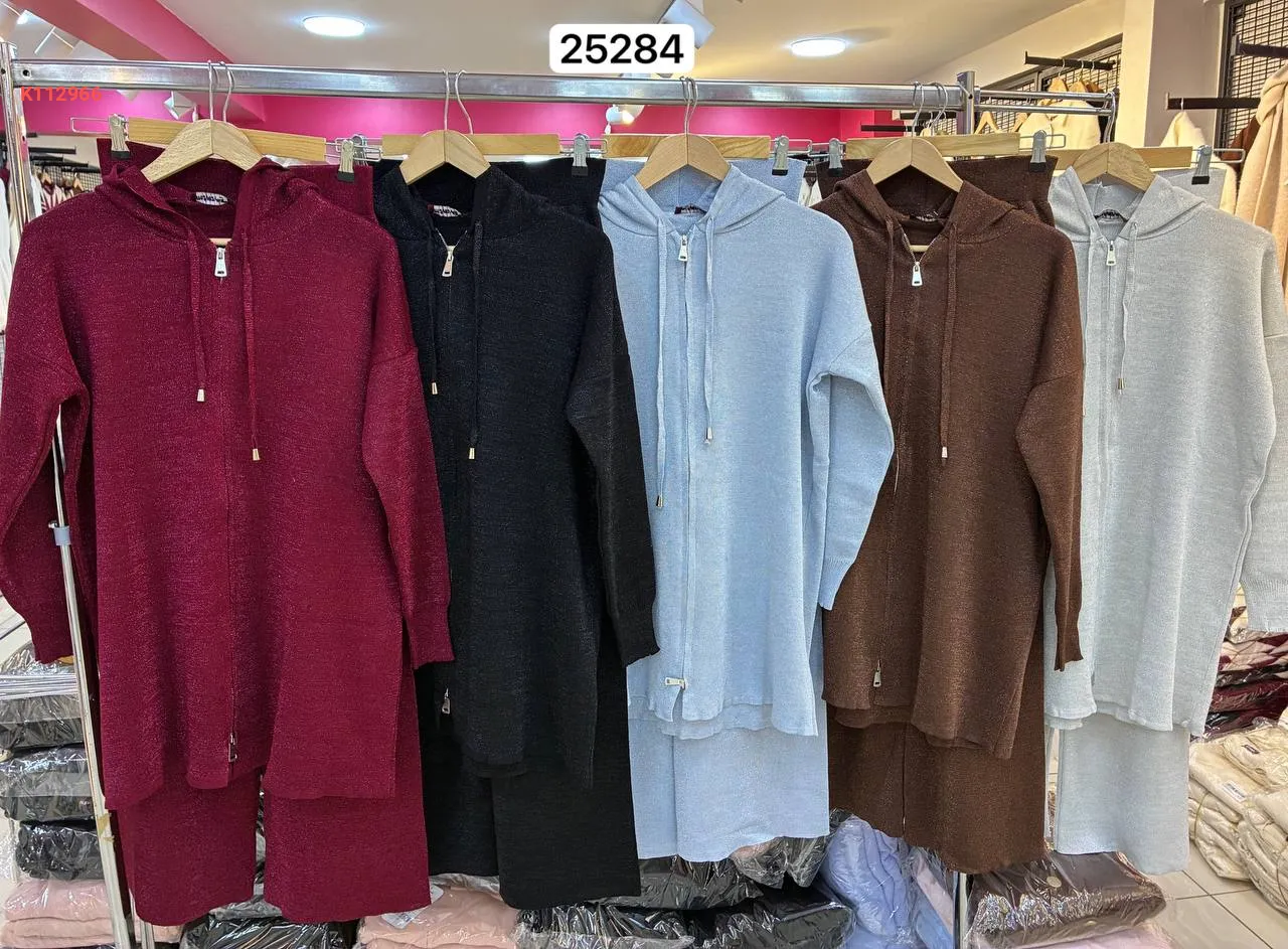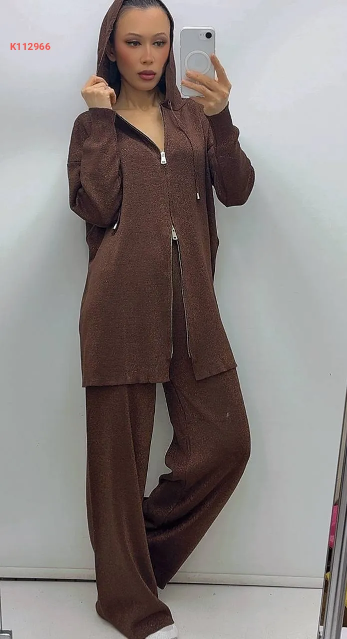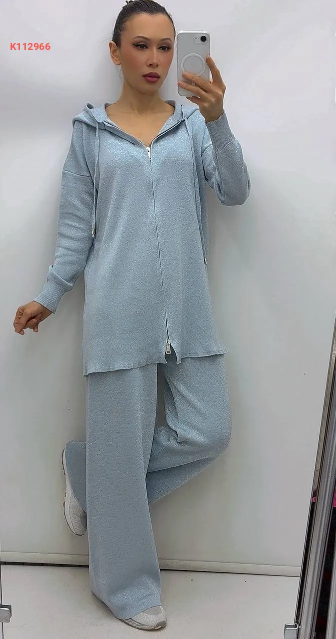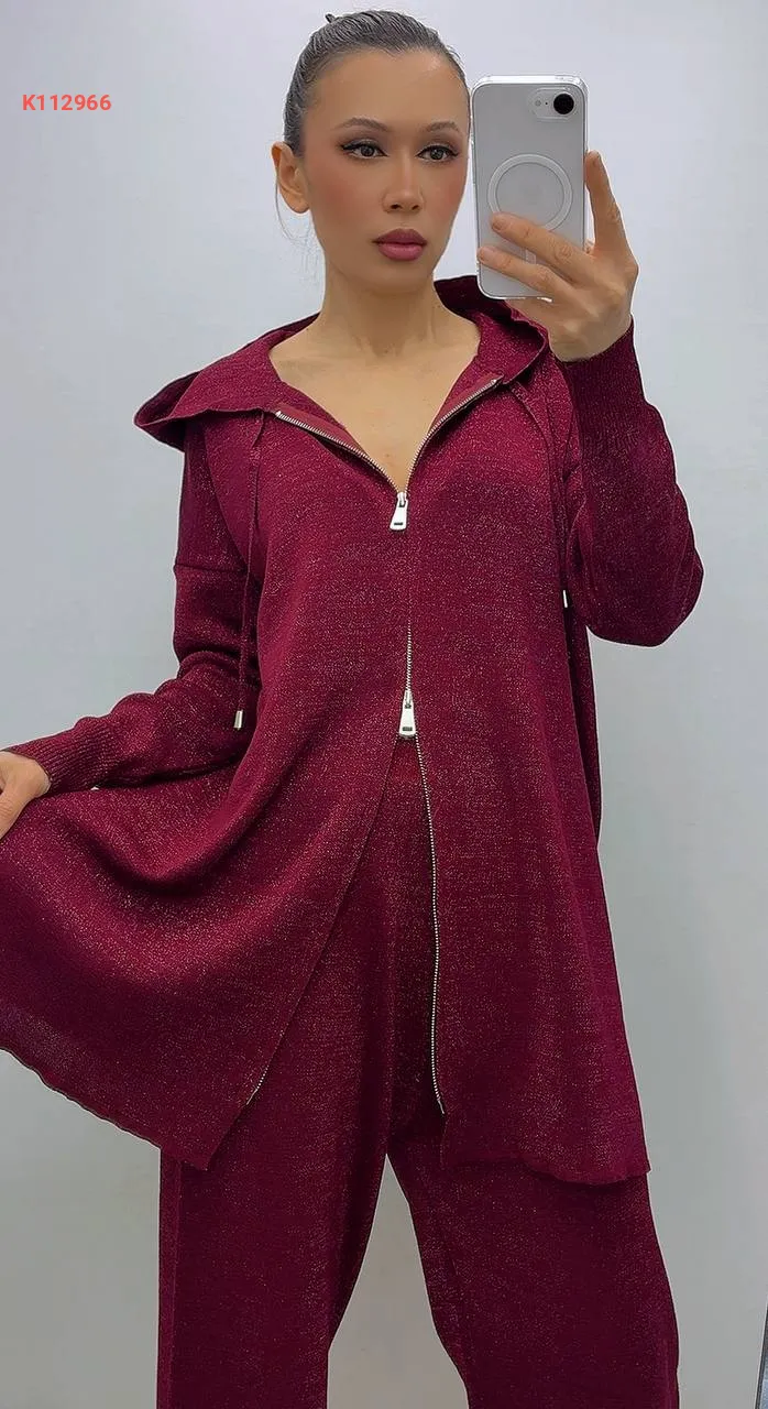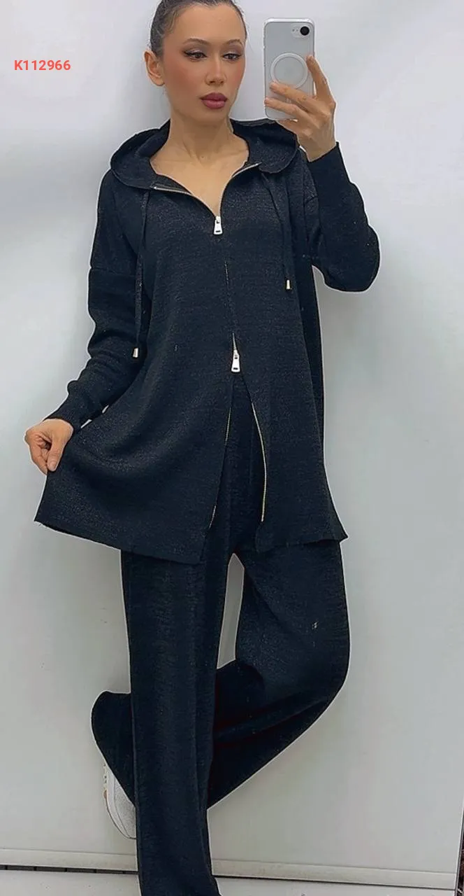 طقم قطعتين بسحاب، بغطاء الرأس