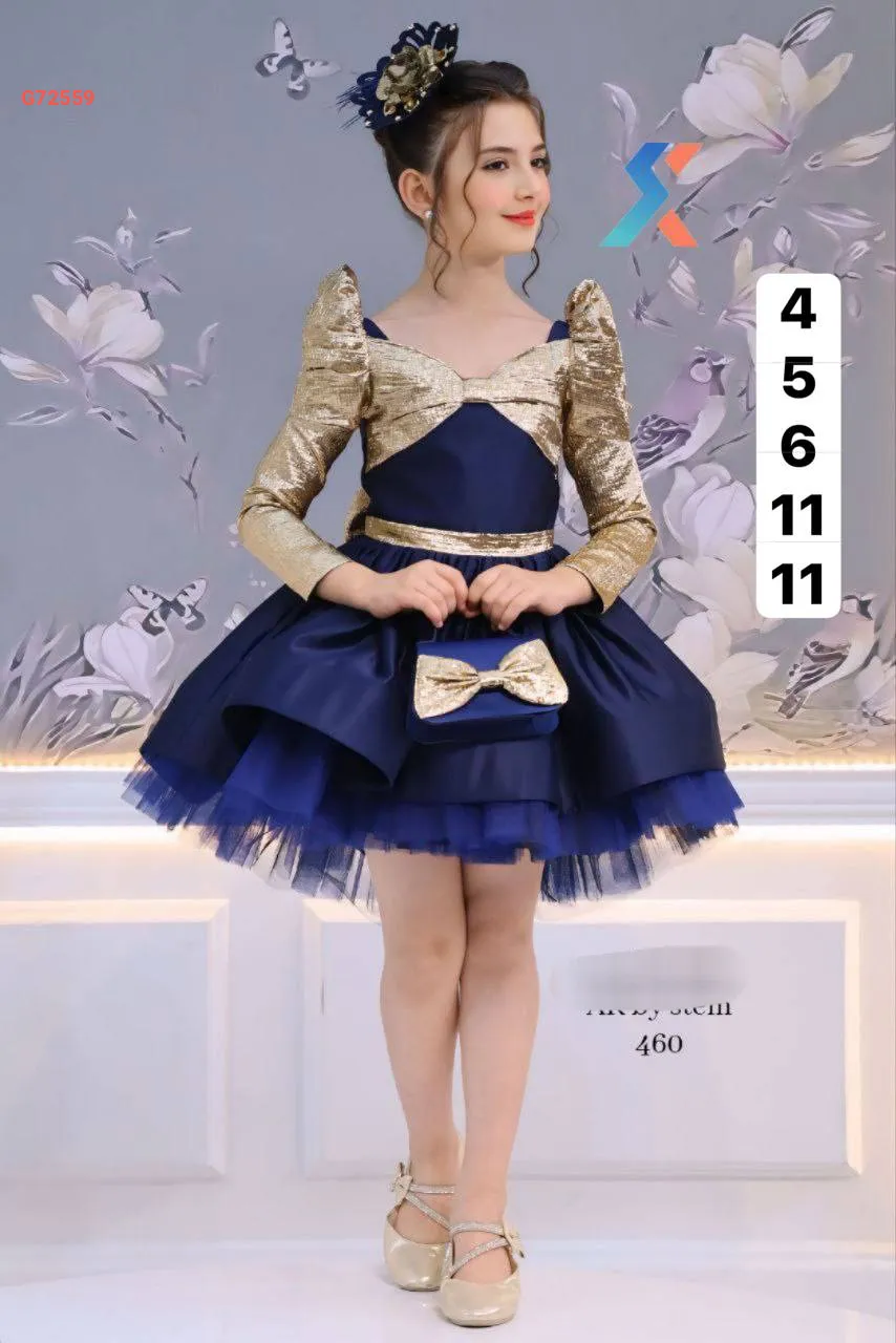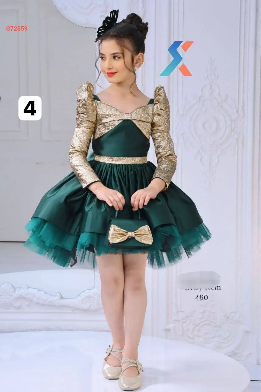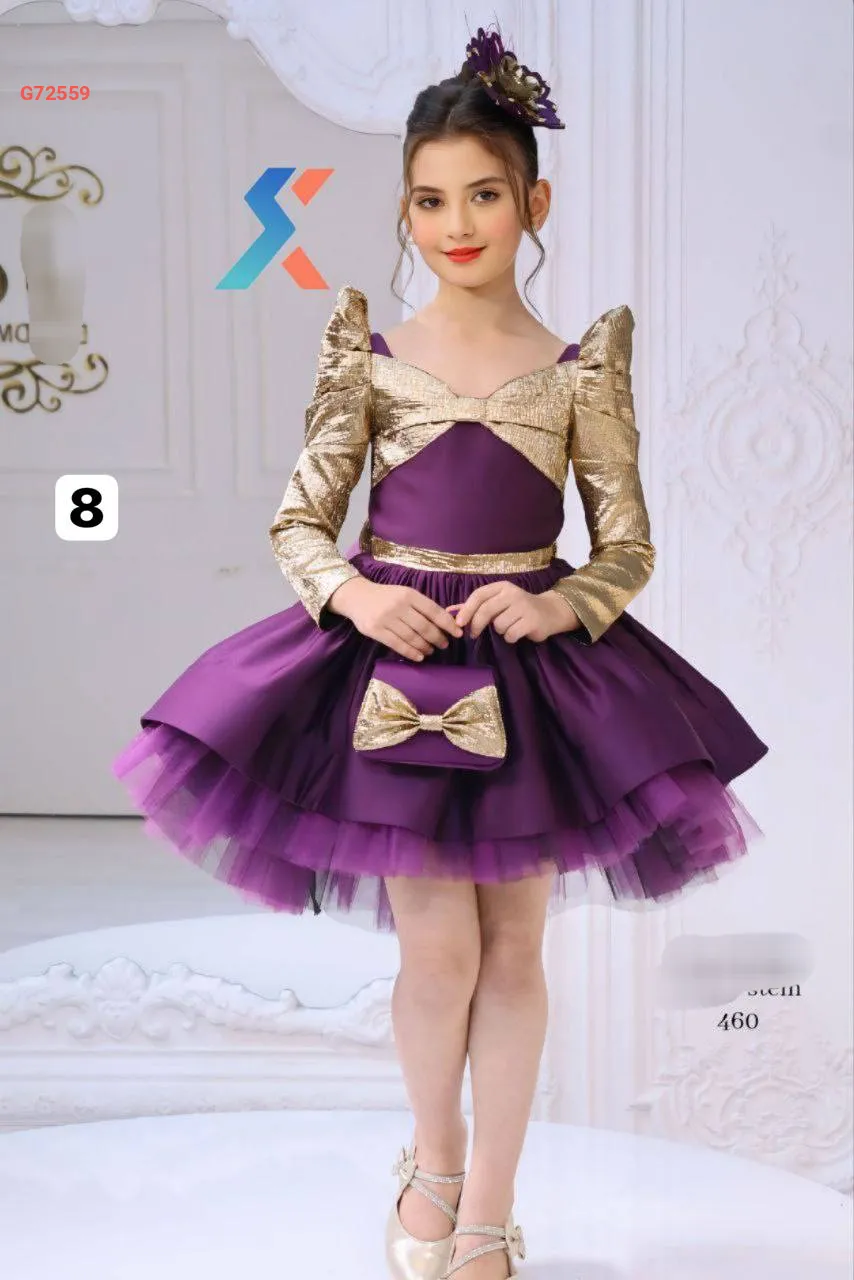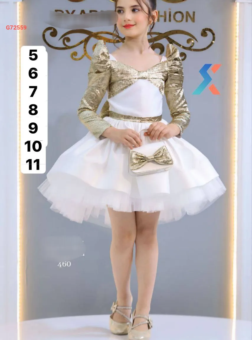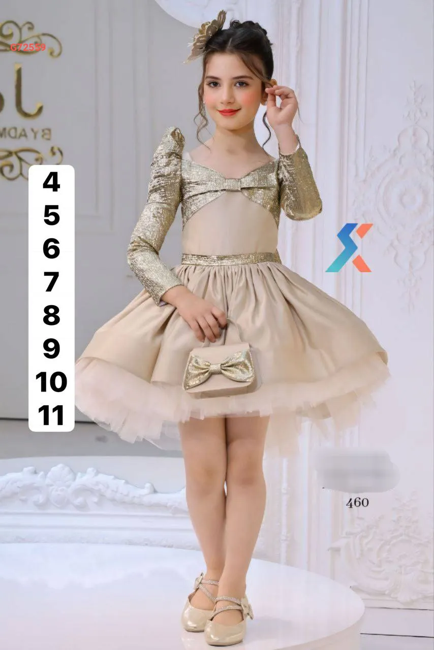 فستان بناتي لونين منفوش مع تول