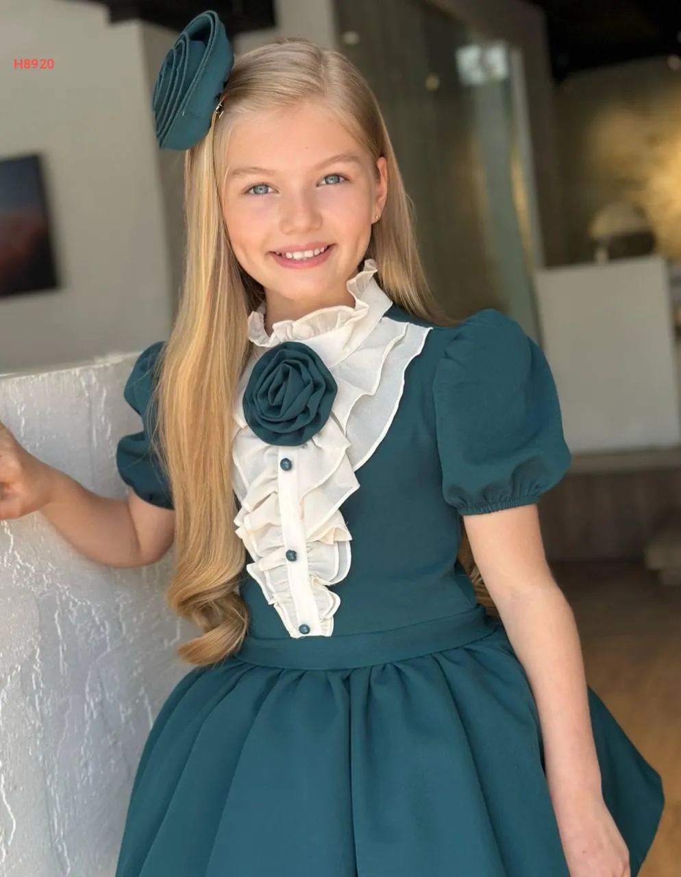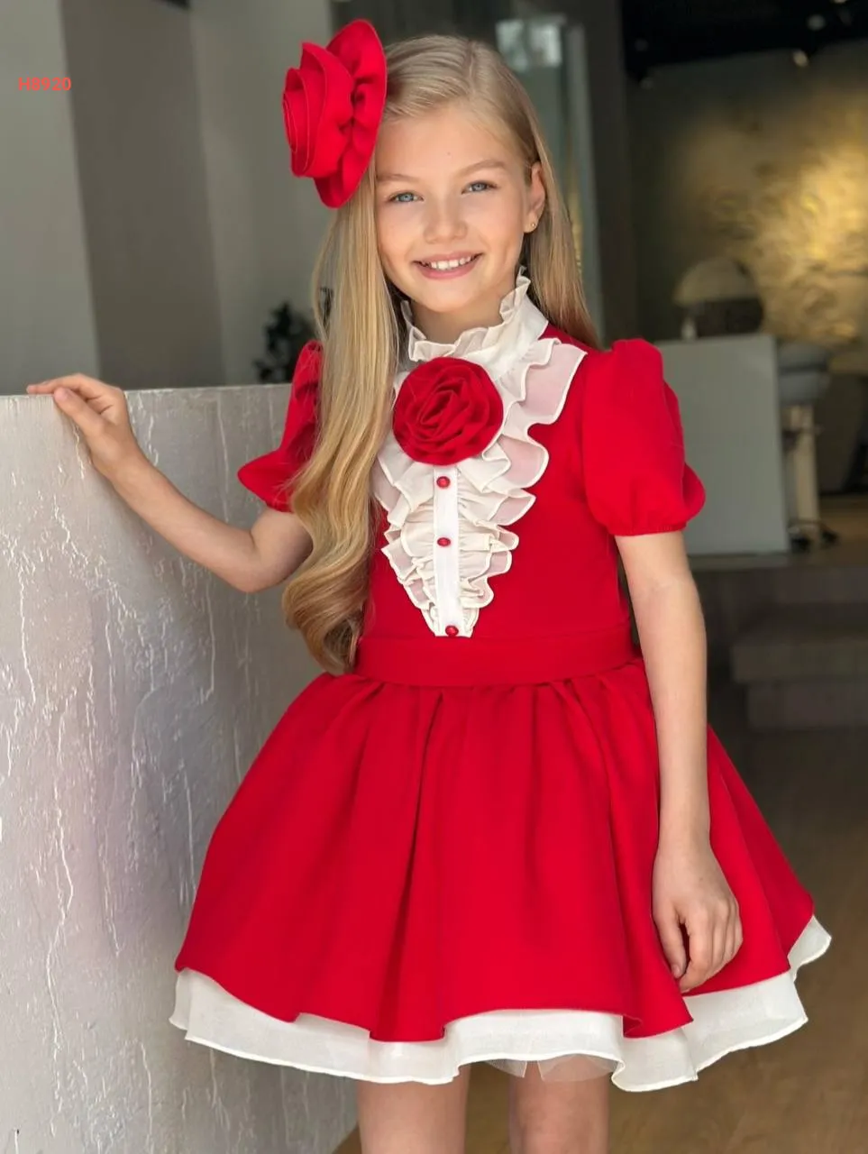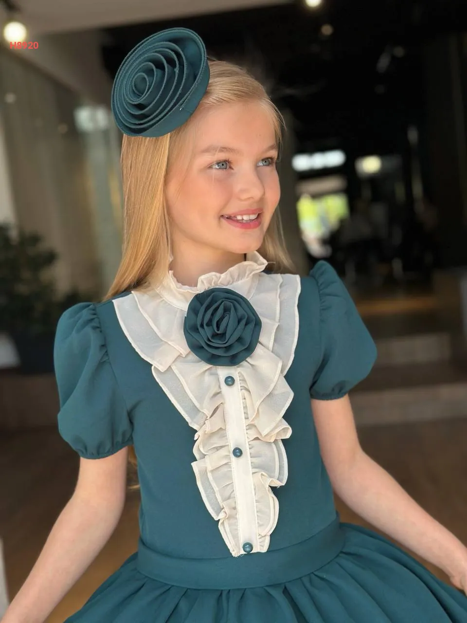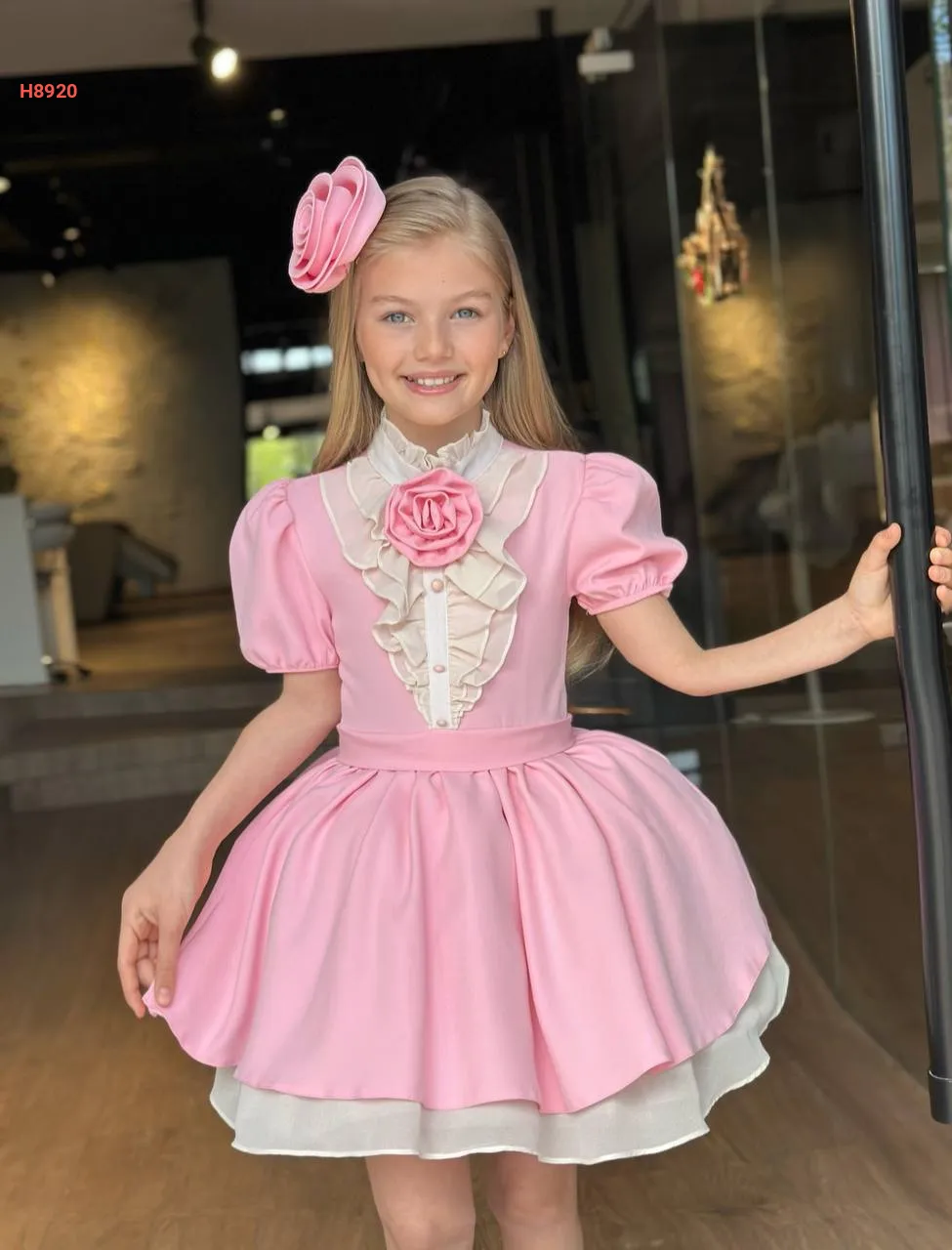 فستان بناتي لونين مزين ورد