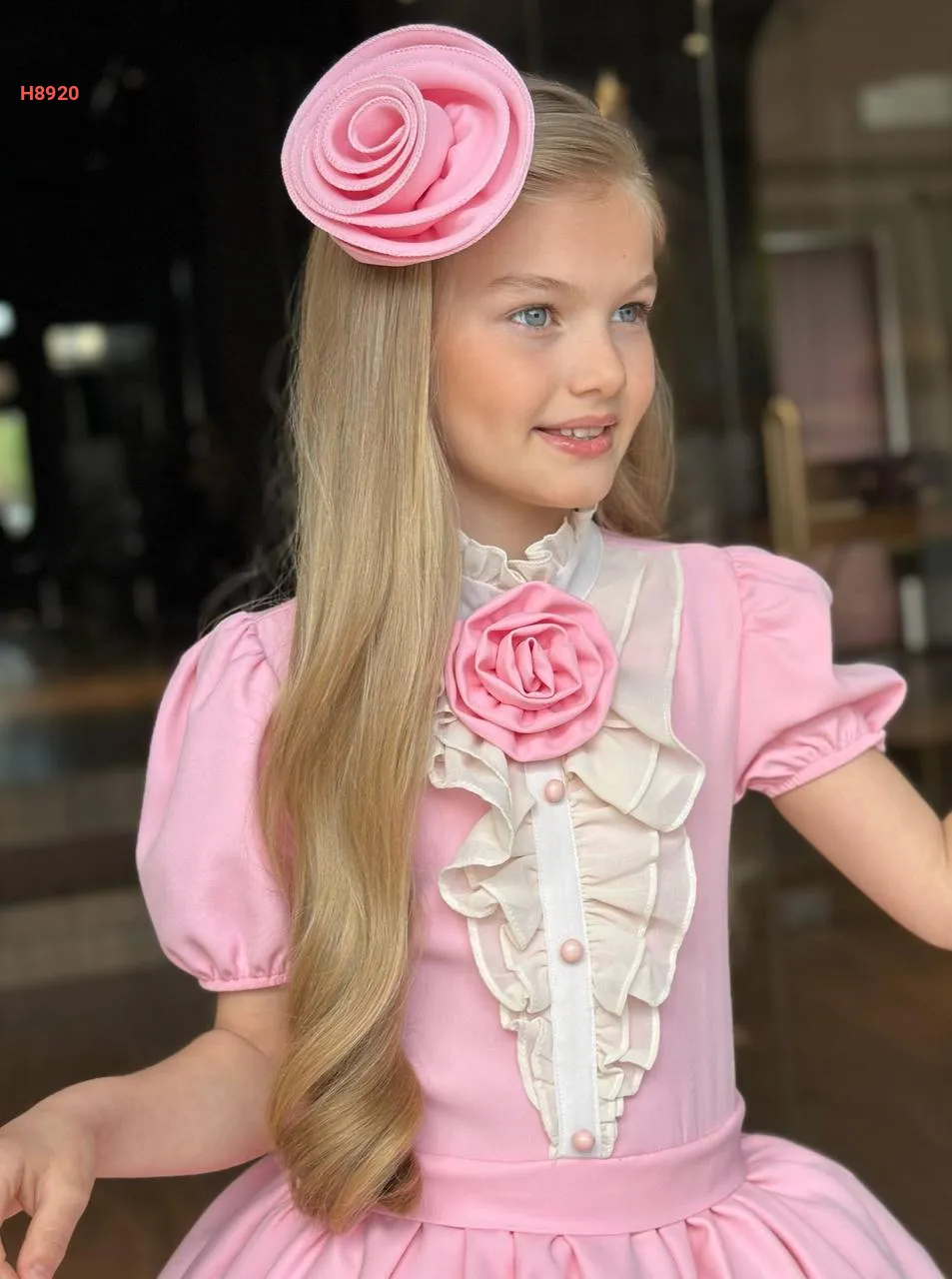 فستان بناتي لونين ببروش وردة